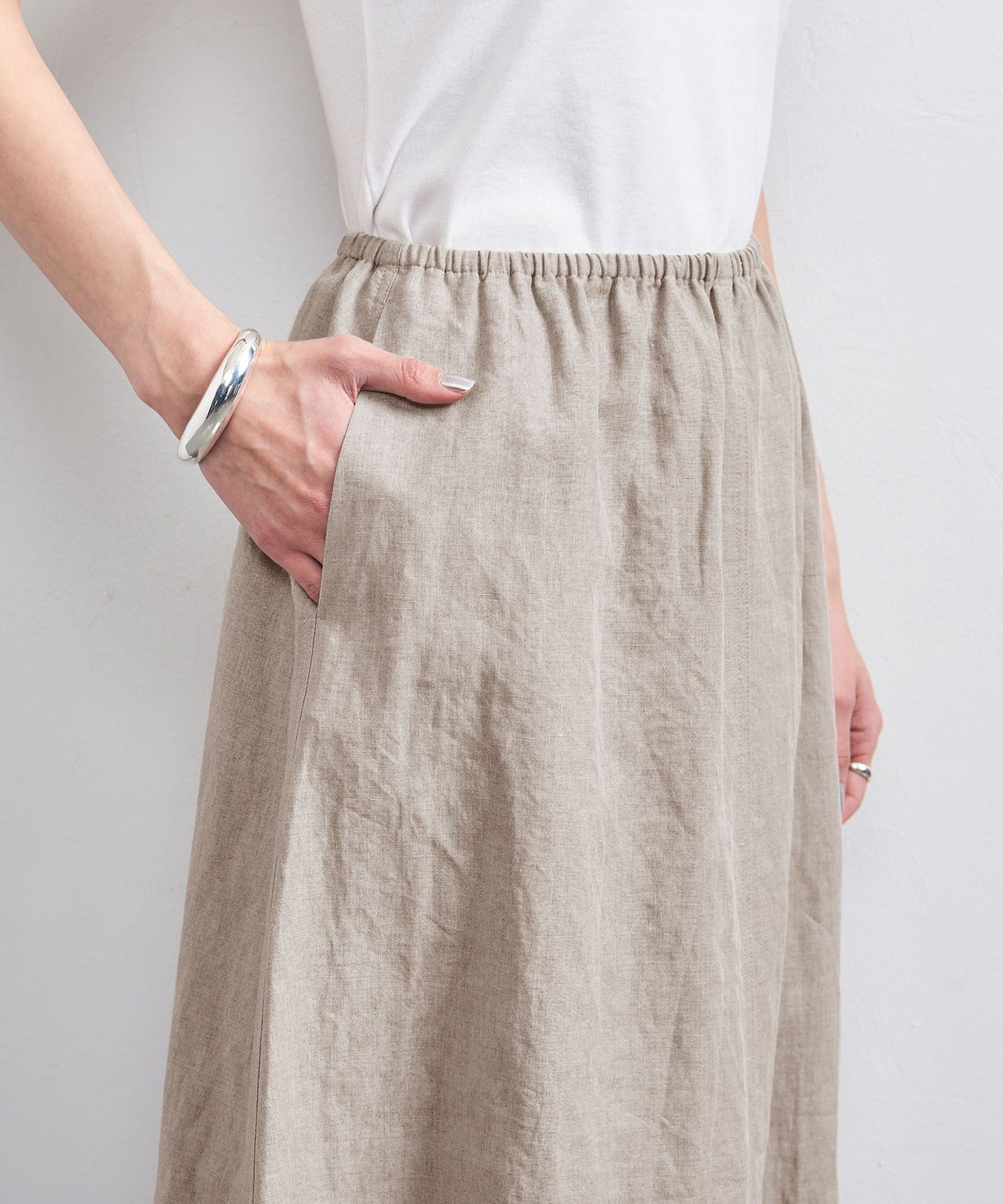 The fabric is dyed using a liquid dyeing method while being carefully kneaded, giving it the fluffy texture that is unique to linen.
