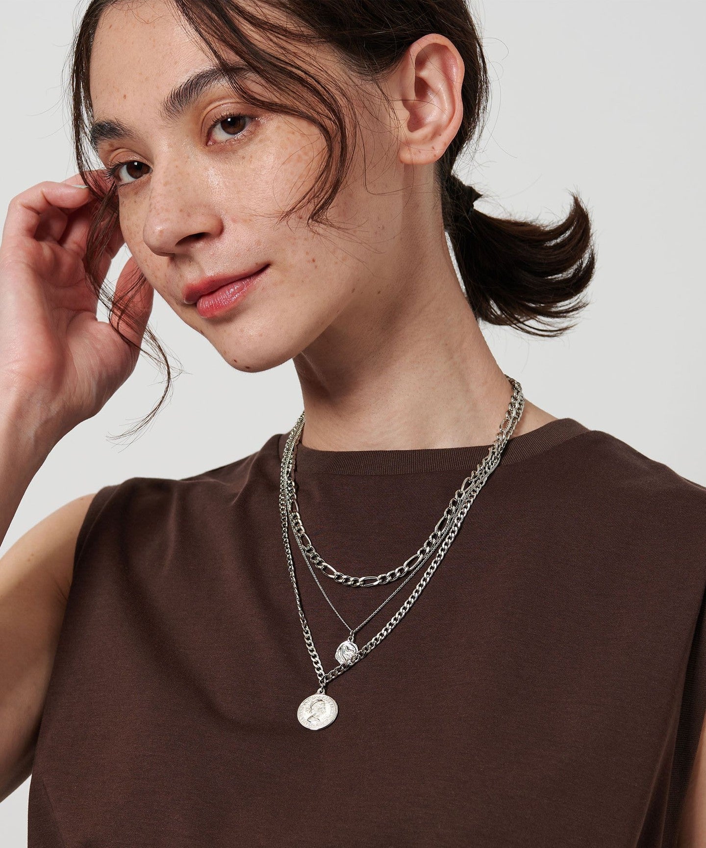 A charming three-coin necklace that can be worn freely