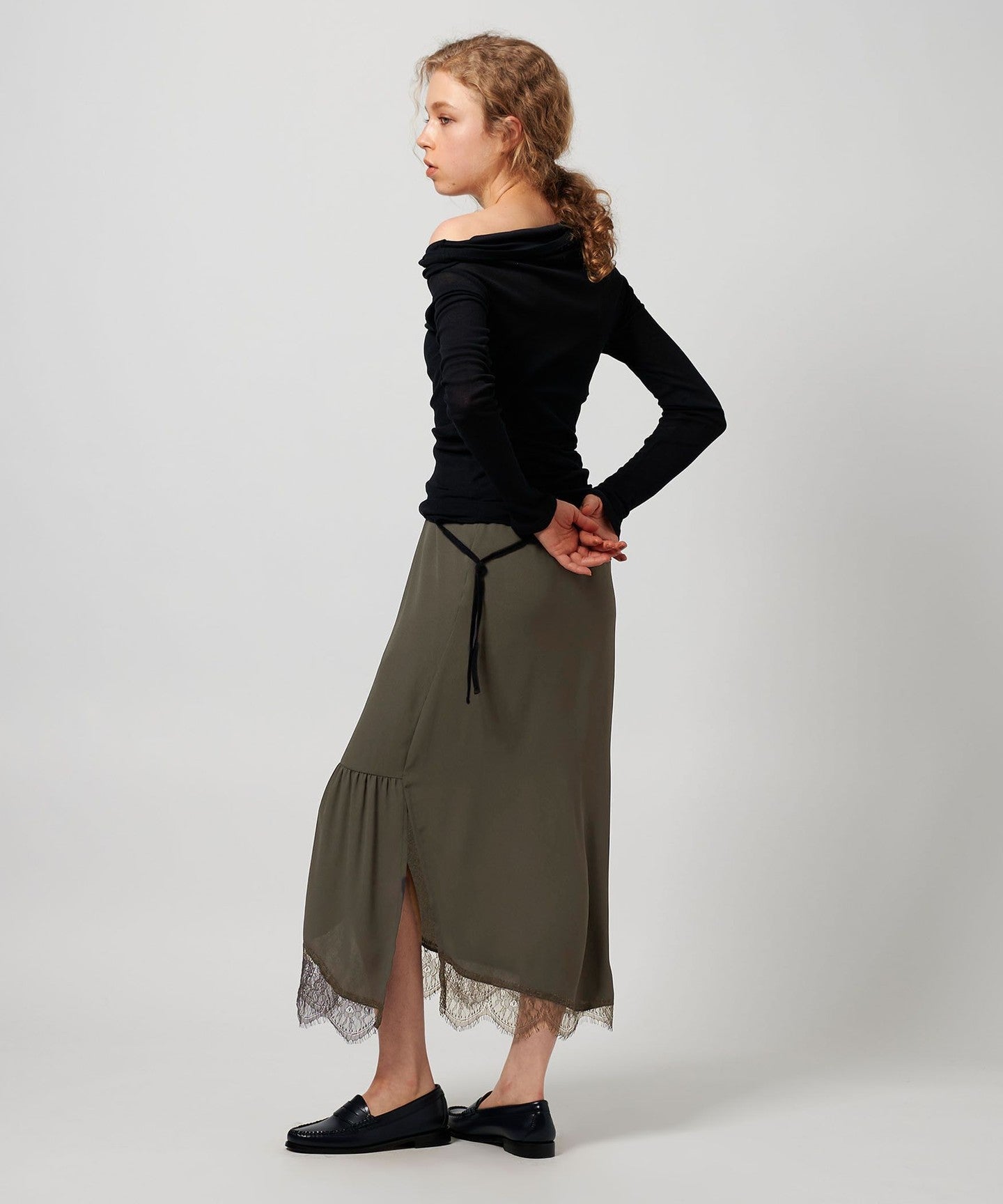 The combination of satin and lace creates a skirt with a rich and elegant look.