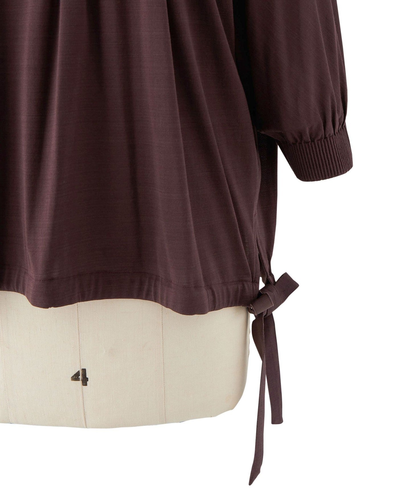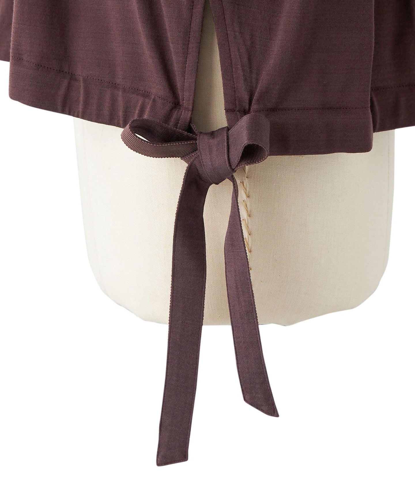 The cuffs are finished with elegant ribbed embroidery, and ribbons on the back of the neck and sides add an accent.