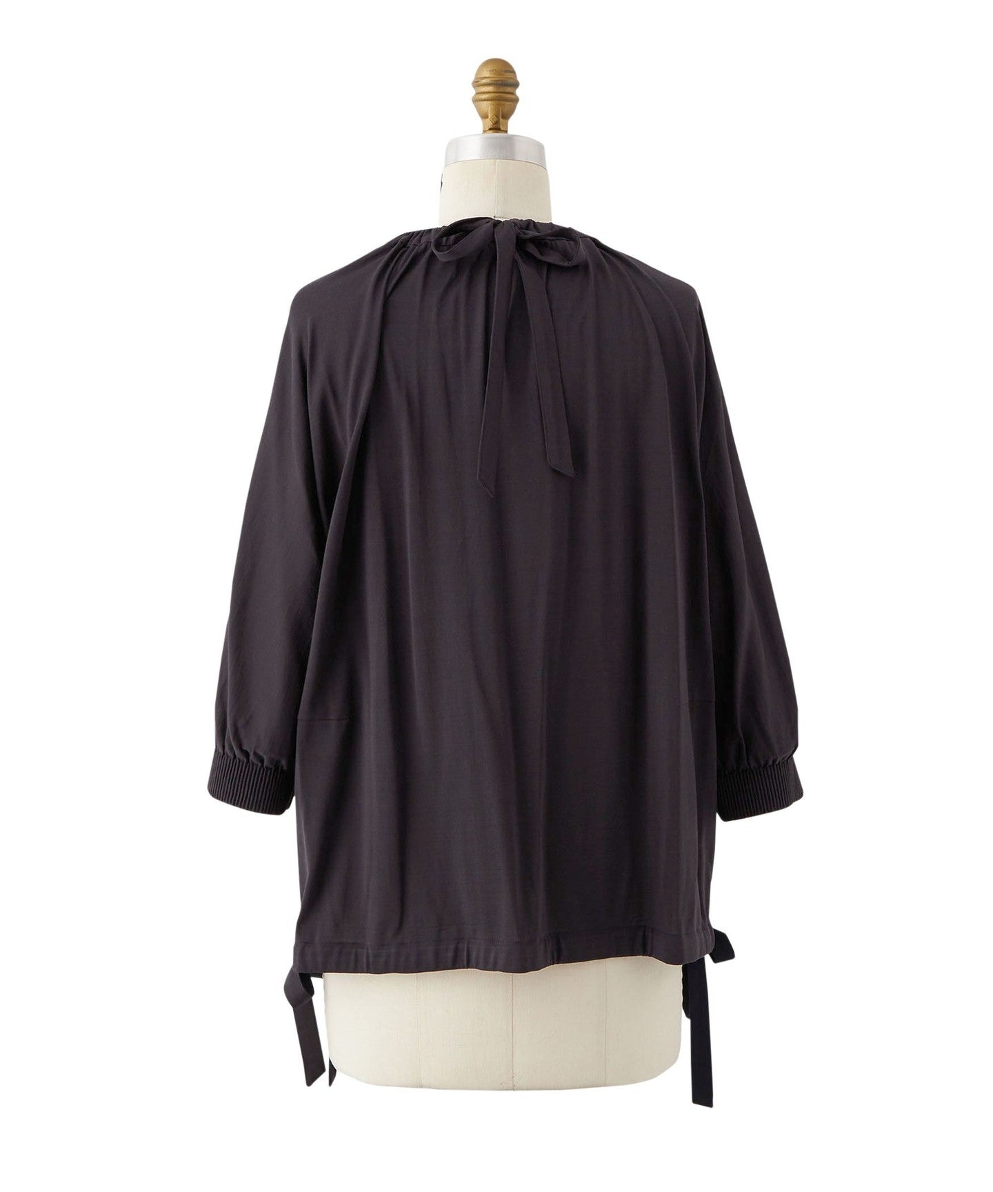 A pullover blouse with dolman sleeves that create an atmospheric look that makes the most of the drape.