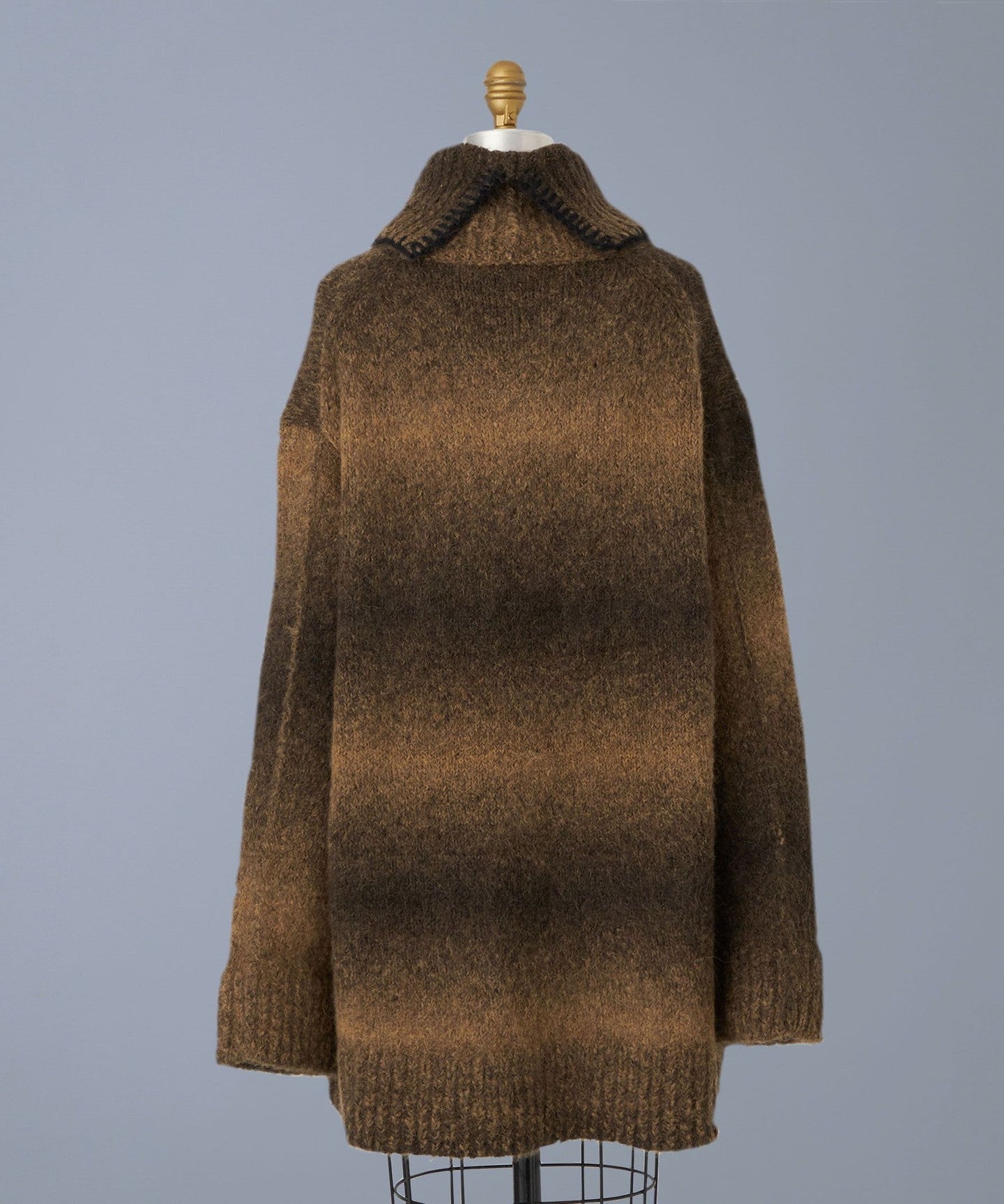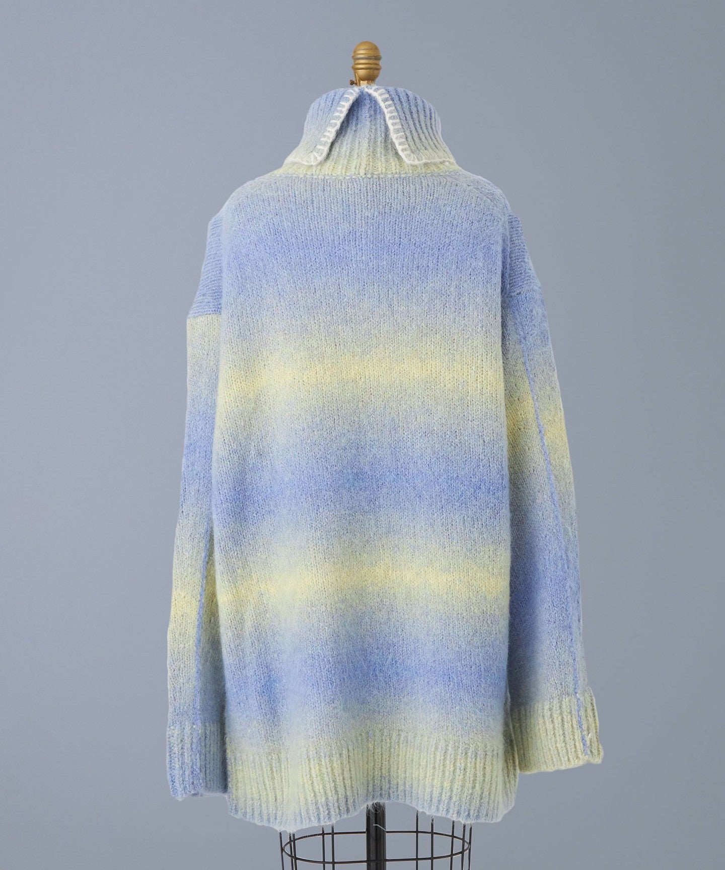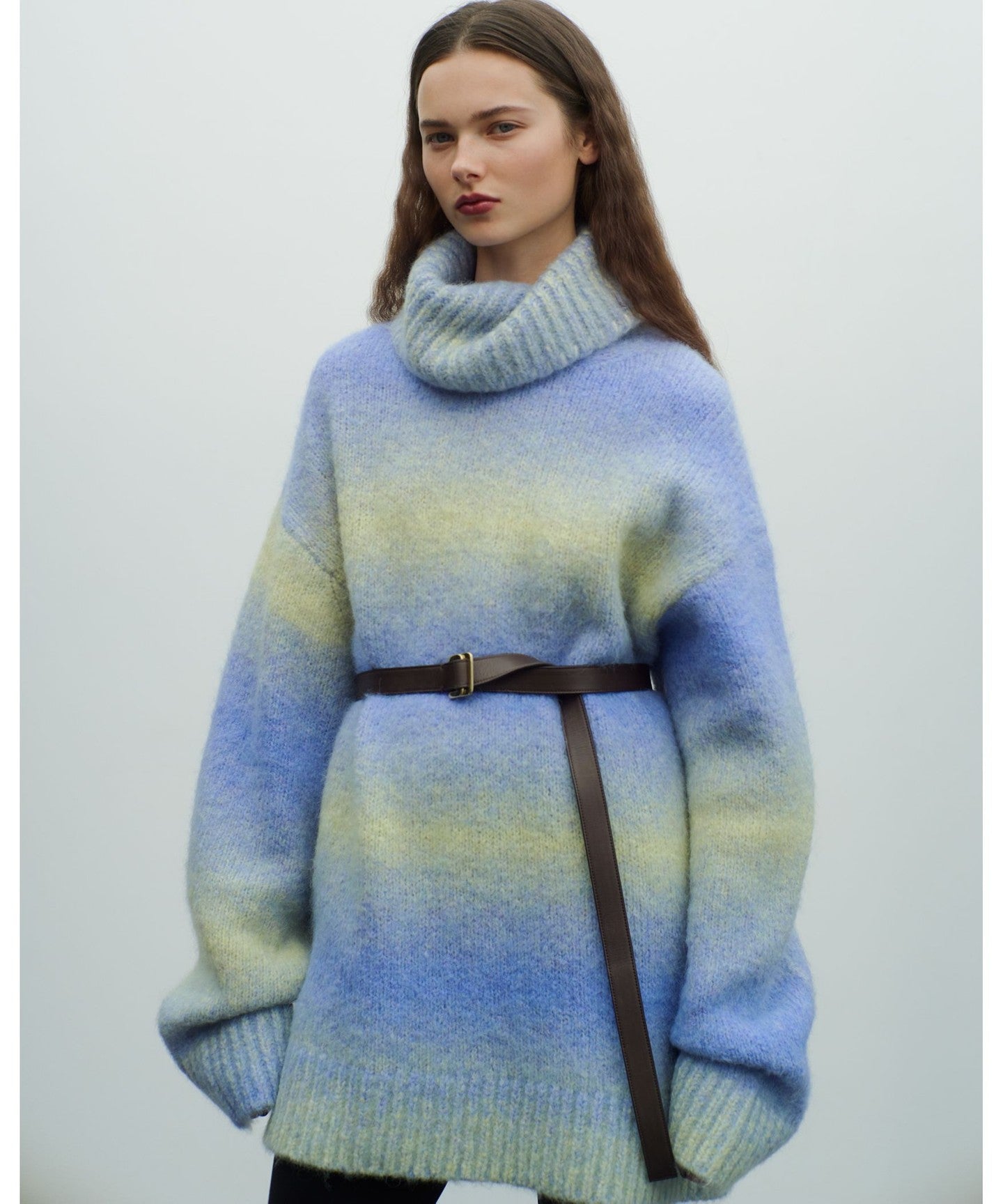 A turtleneck knit with loose sizing that adds a relaxed feel.