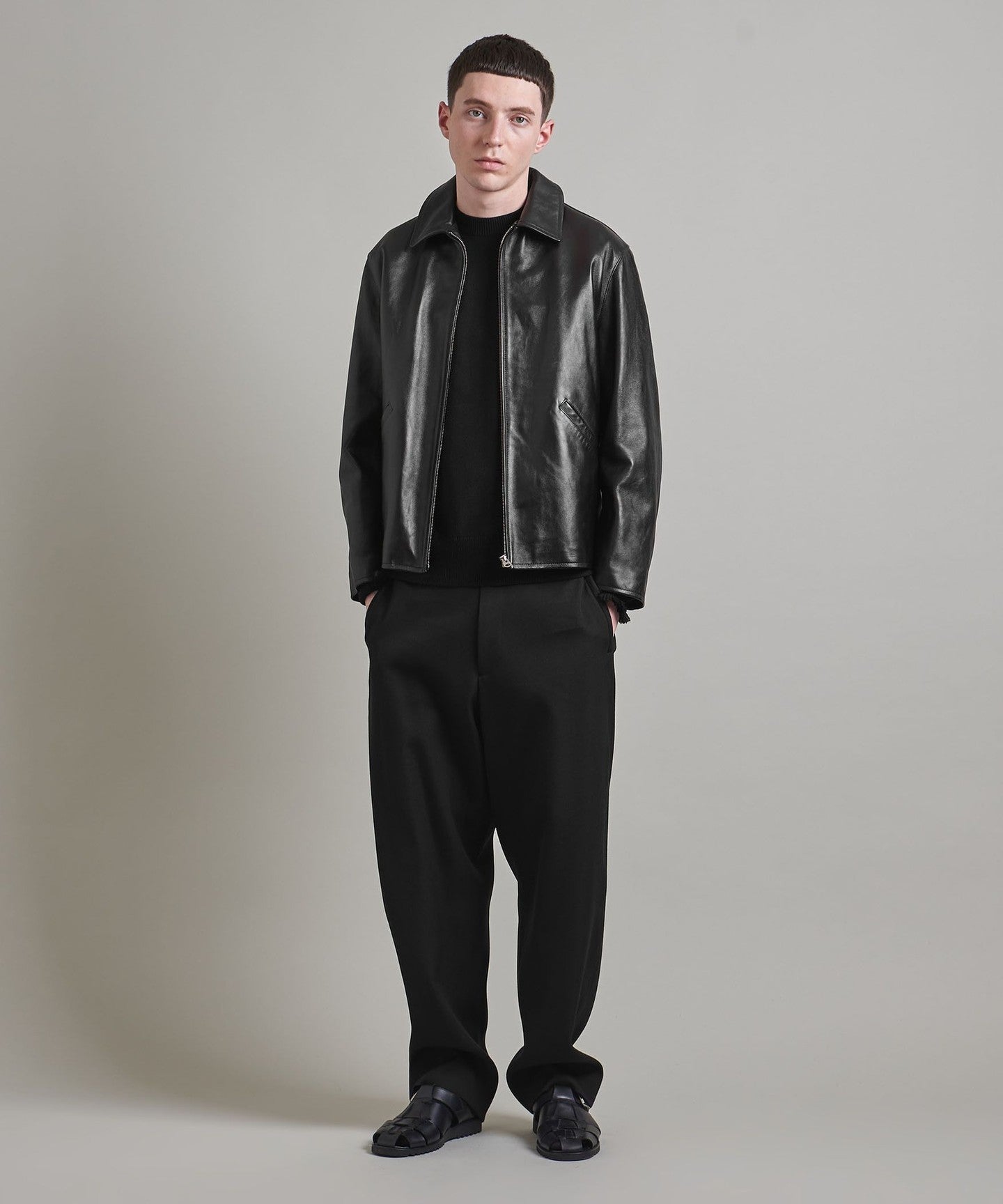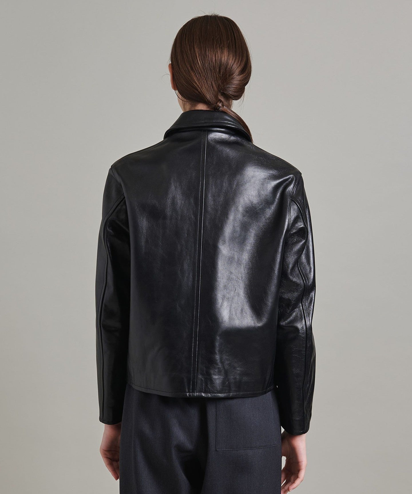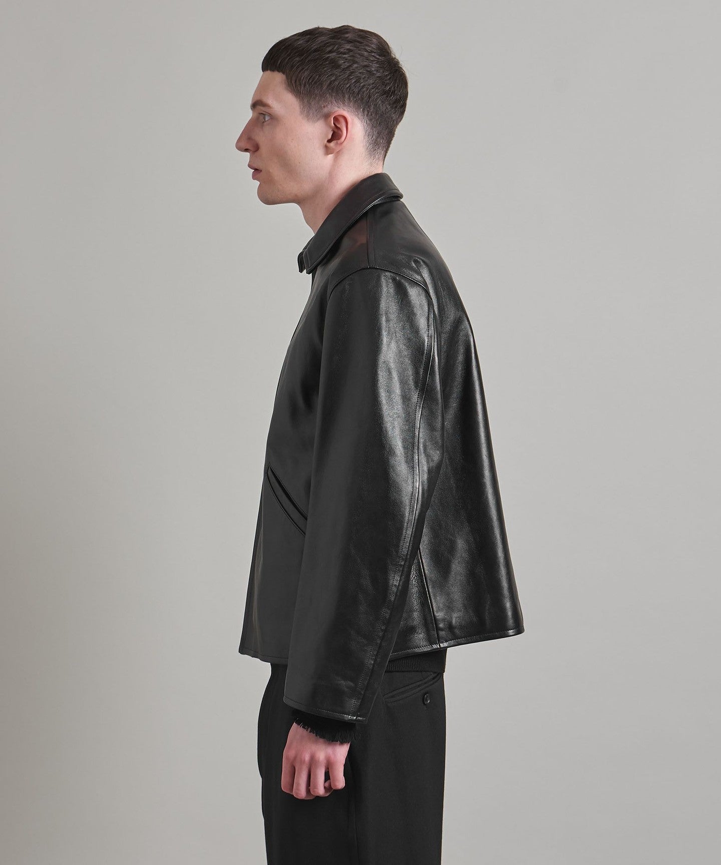 Clean details make the leatherJACKET The unique heavy feel has been mellowed out.