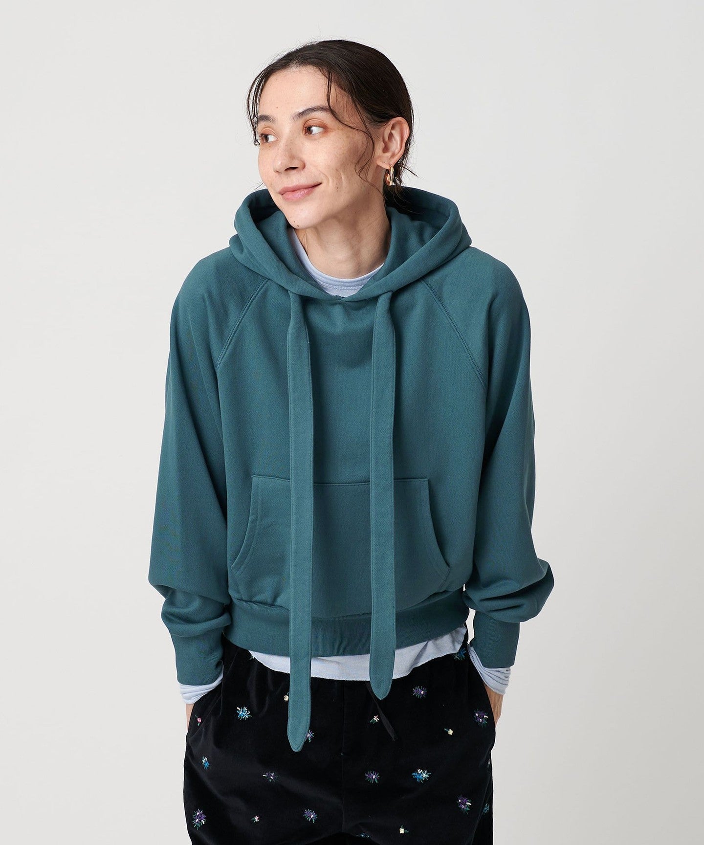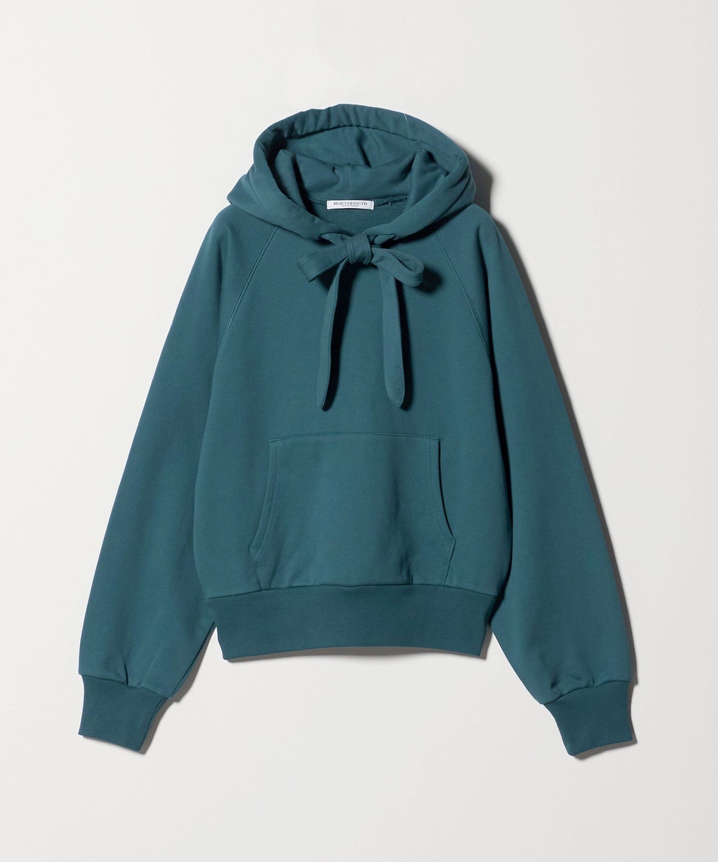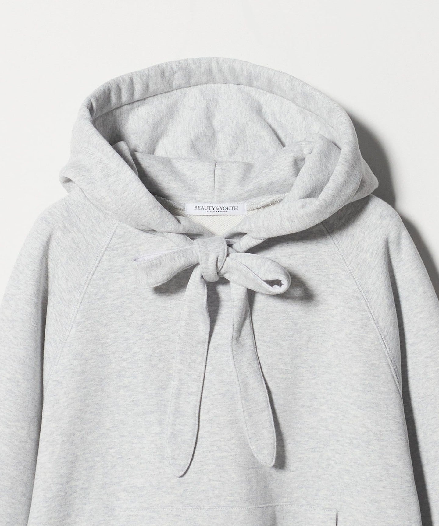 A hoodie top with a ribbon arrangement that adds an accent to your outfit