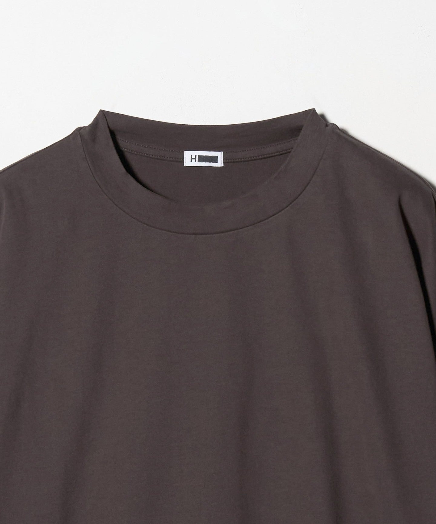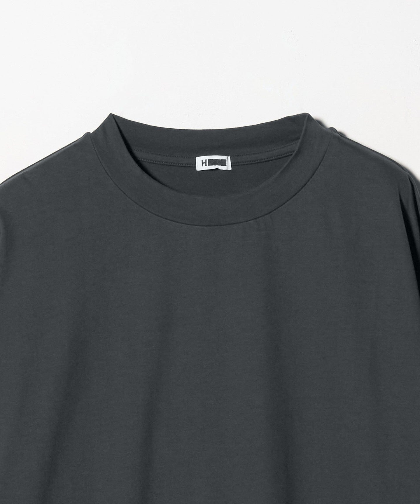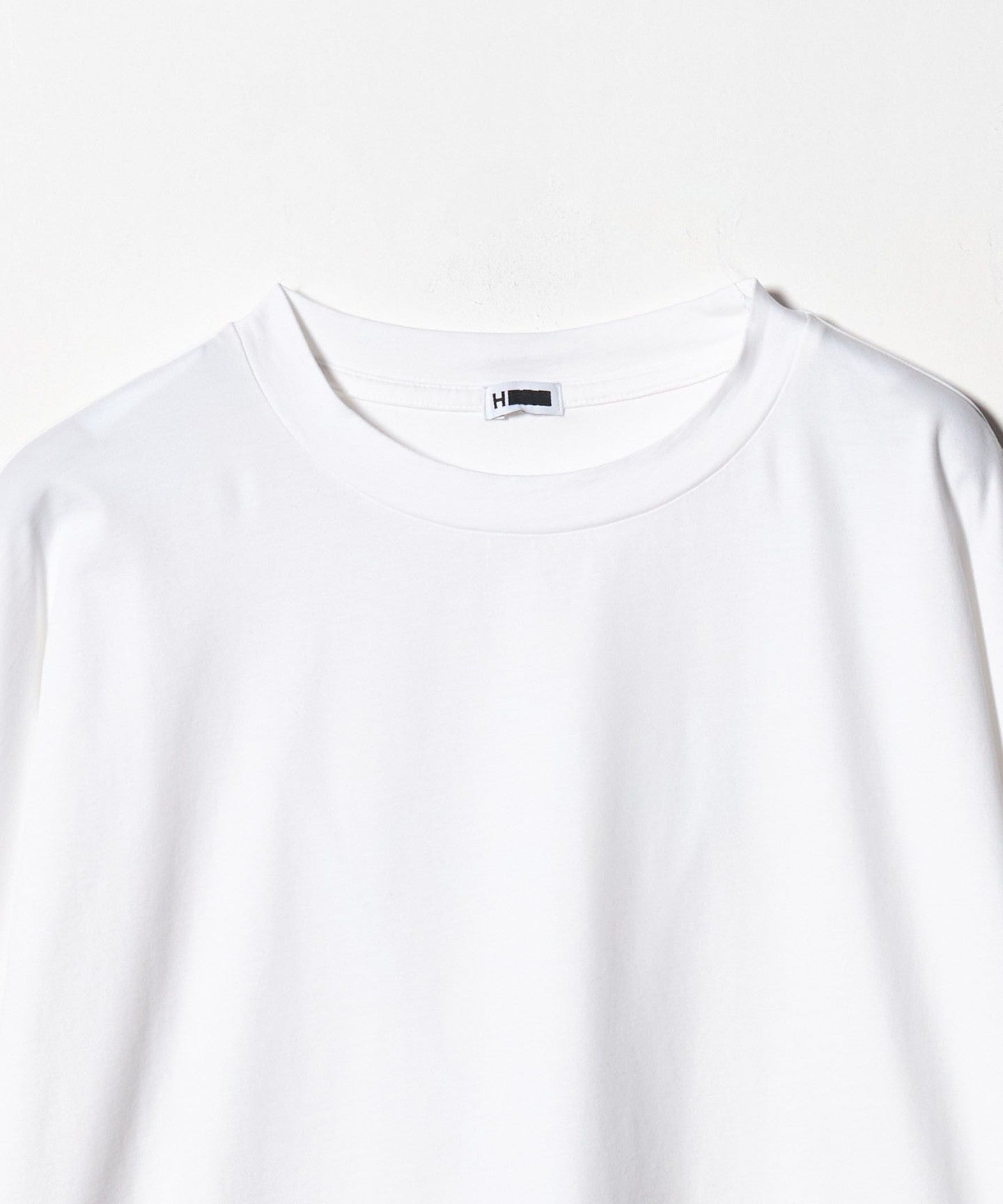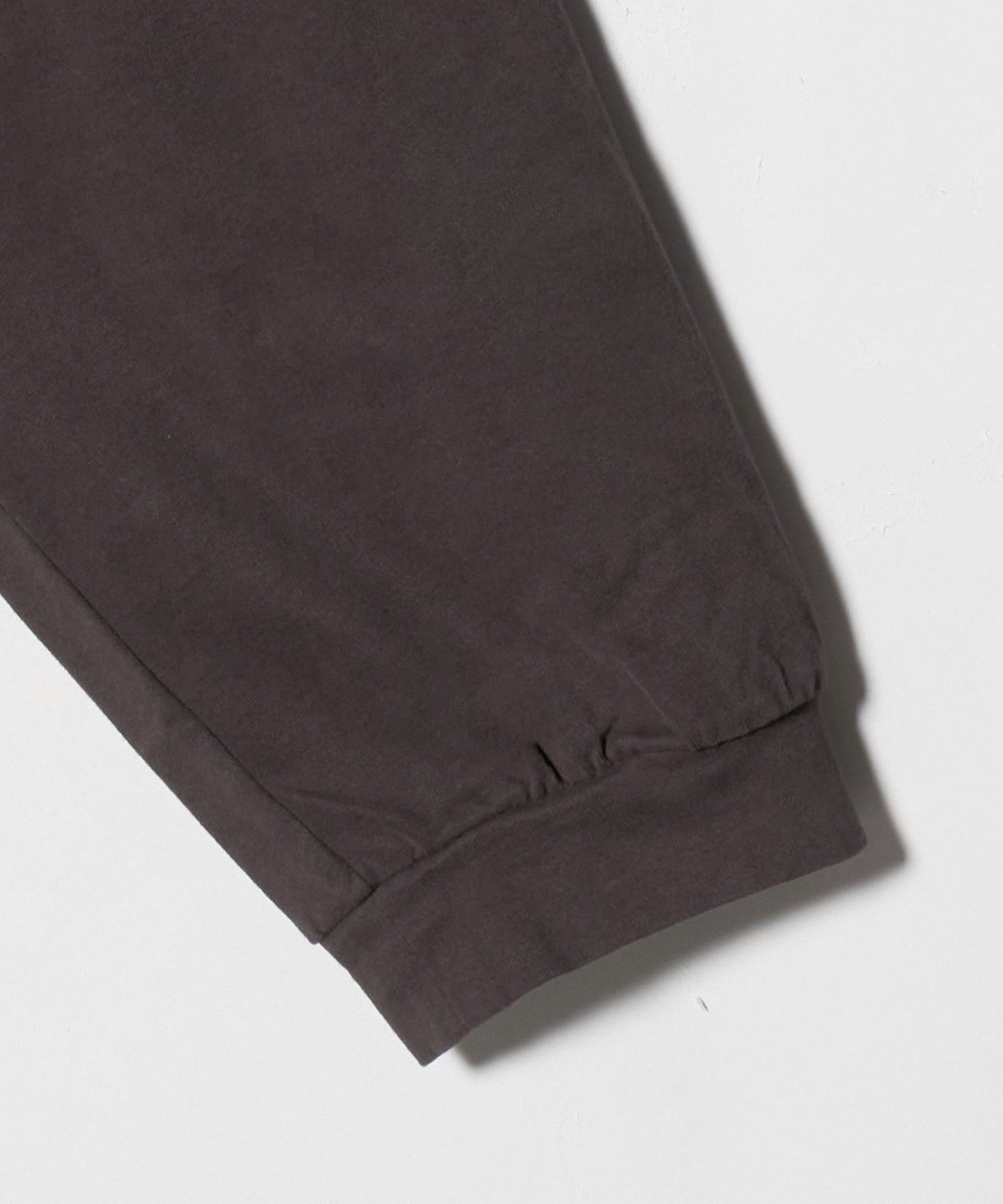 SLEEVE This long-sleeved cut-and-sew features tucked curved sleeves and a smooth, suede-like texture. Cotton Raised on thread Wool It uses a special fabric that has been treated with platinum veil processing. FABRIC The fabric is not too thin, giving it a comfortable feel. The body is wide, with long sleeves and a slightly shorter length, creating a natural silhouette with a tucked-in balance. The neck is made of the same fabric instead of a rib, giving it a clean and sophisticated look. EXTERIOR At first glance, it looks like a simple T SHIRT However, the tucks at the elbows create a unique silhouette, adding an accent that enhances the fashionable mood.