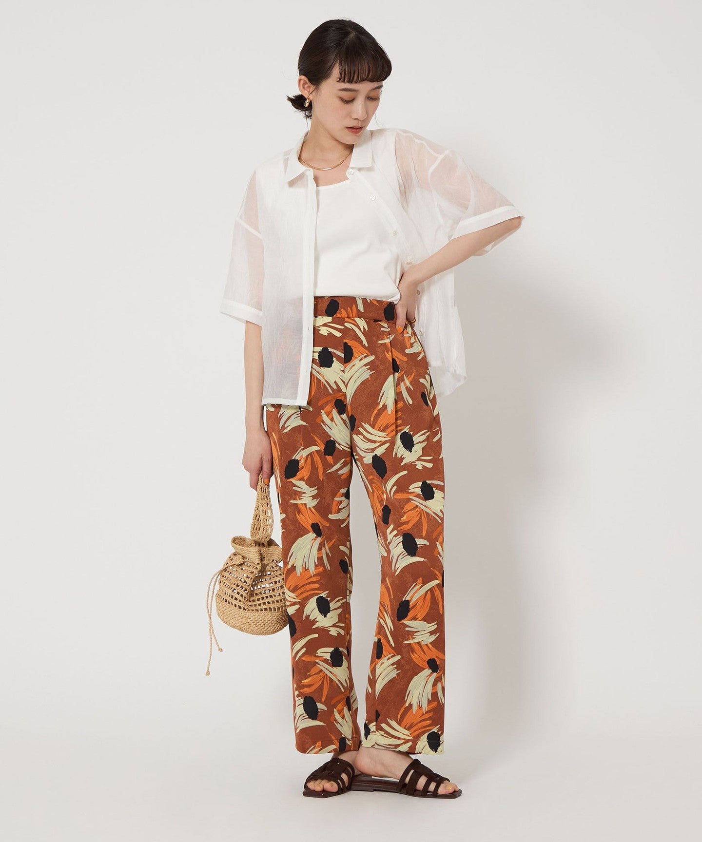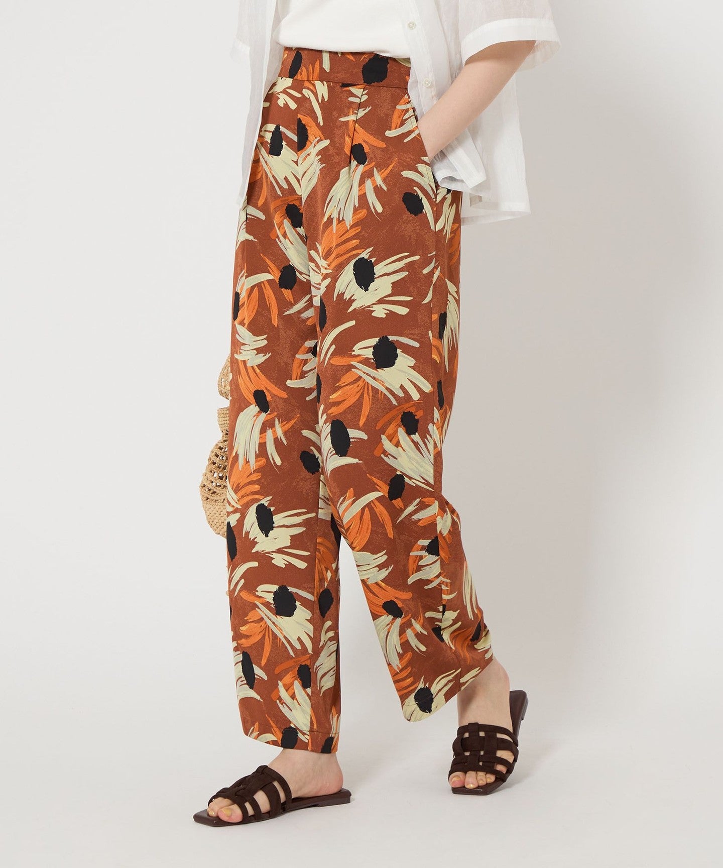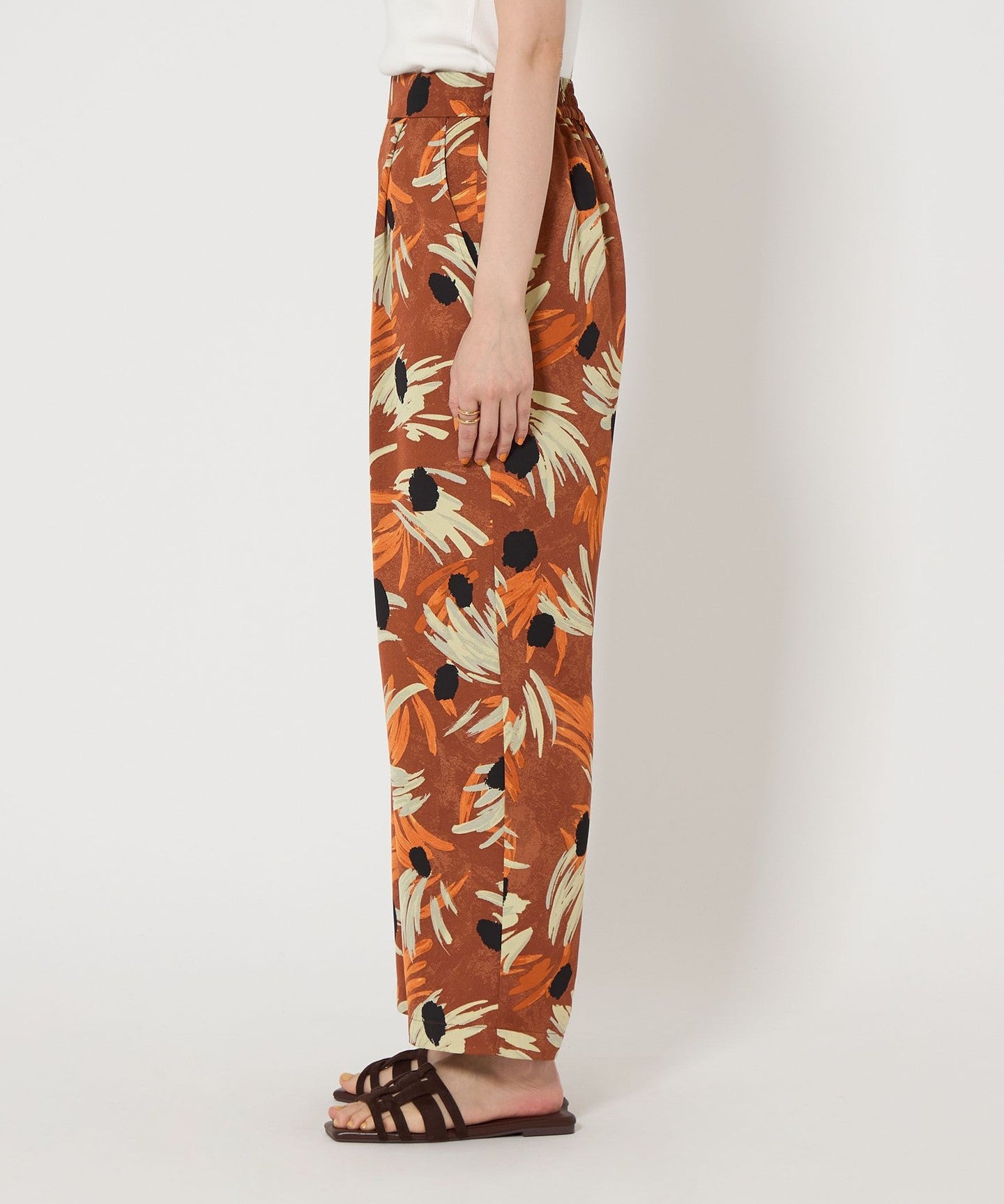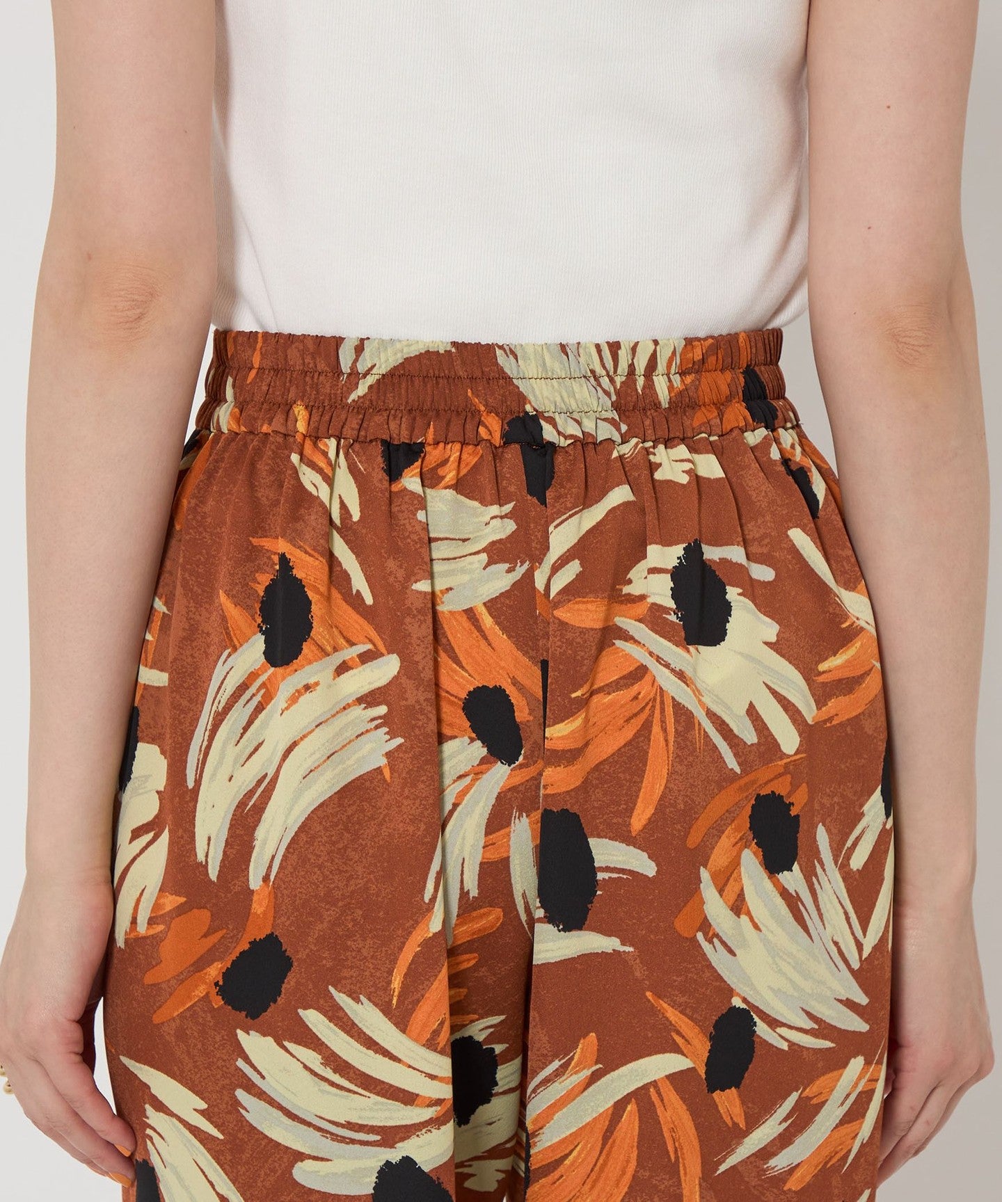 Flower print pants with an artistic touch that gives a gorgeous impression.
