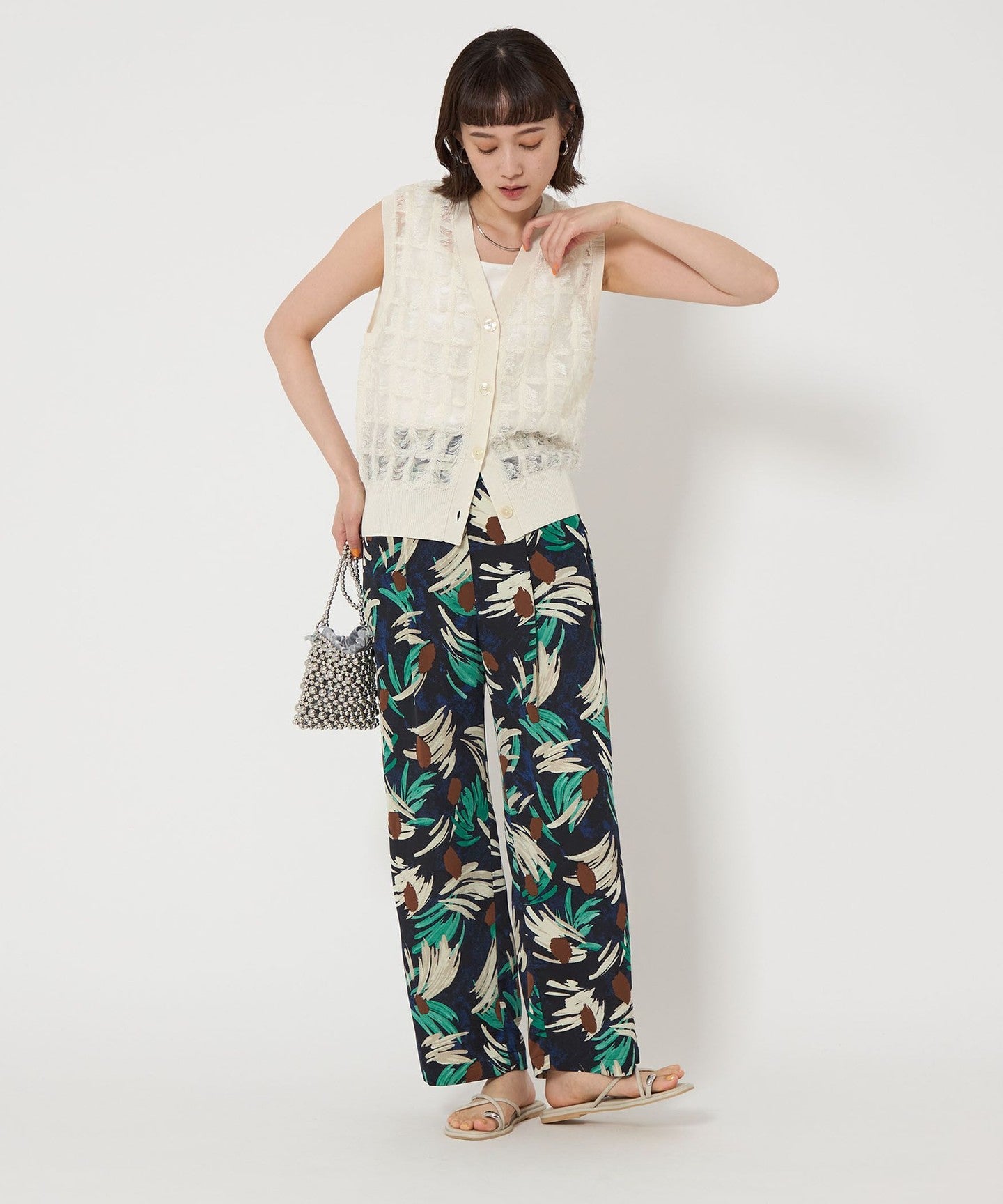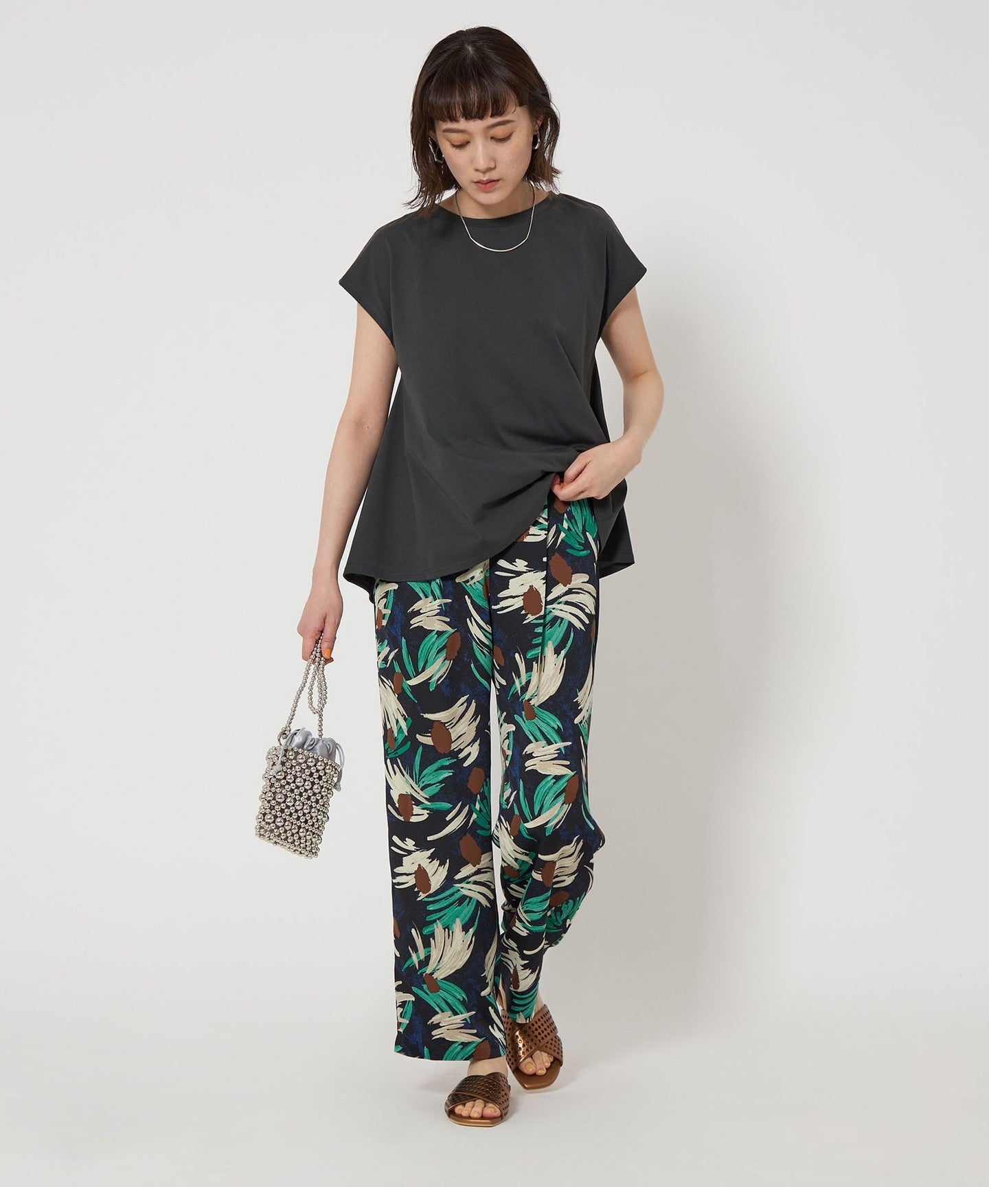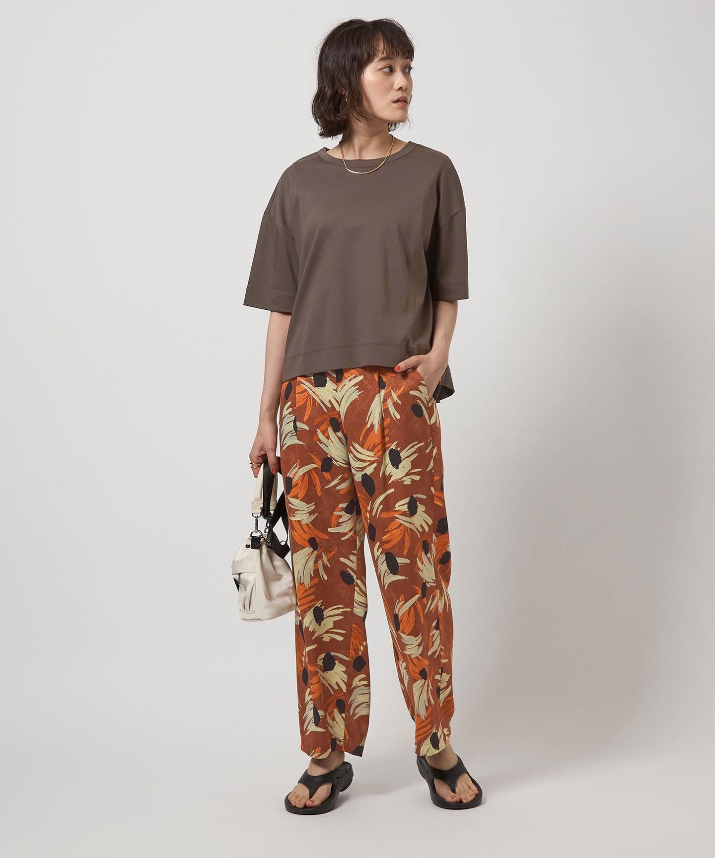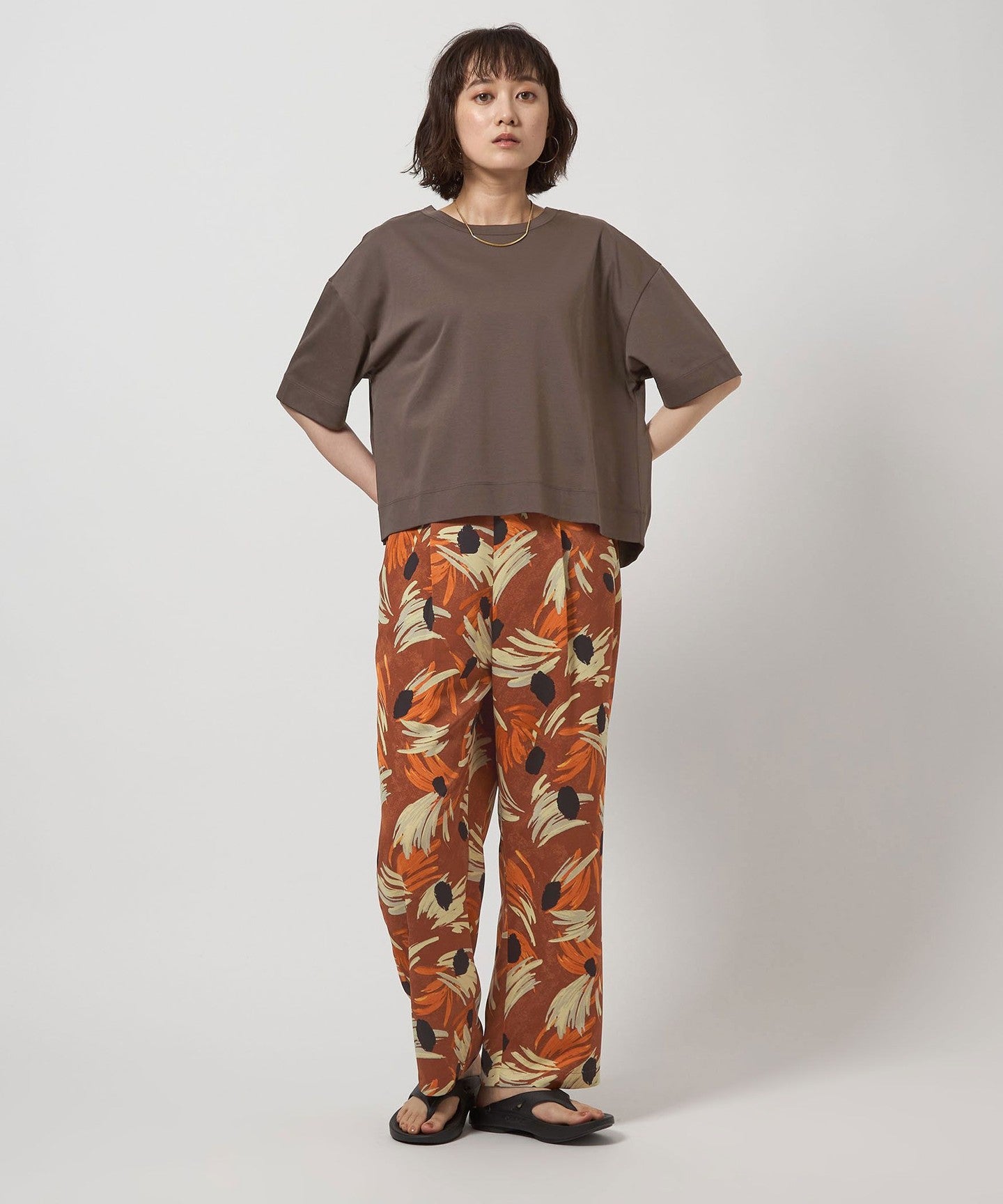 Flower print pants with an artistic touch that gives a gorgeous impression.