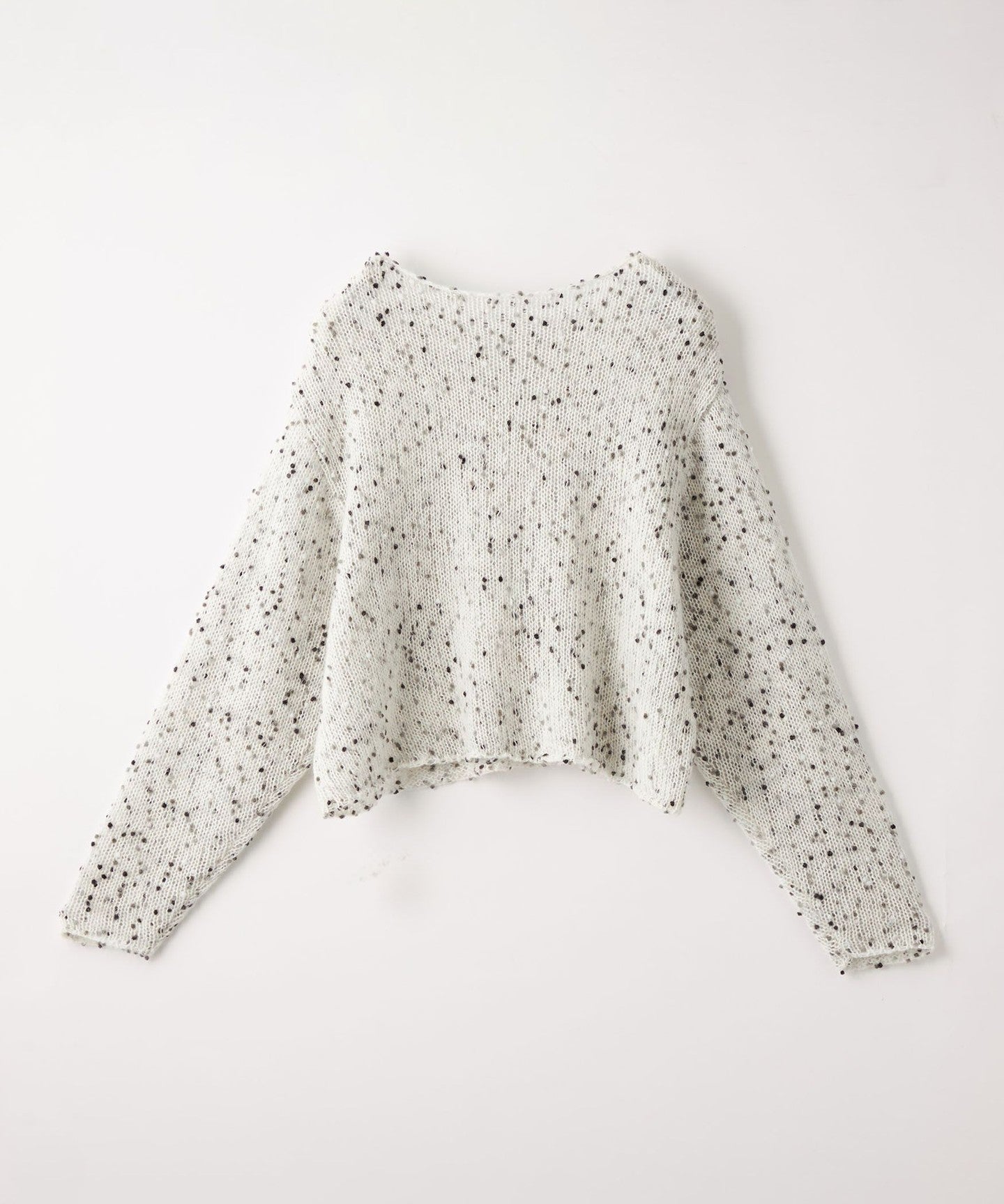 The relaxed fit, loosely knitted texture, and open neckline that shows off the décolletage give the design a feminine feel.