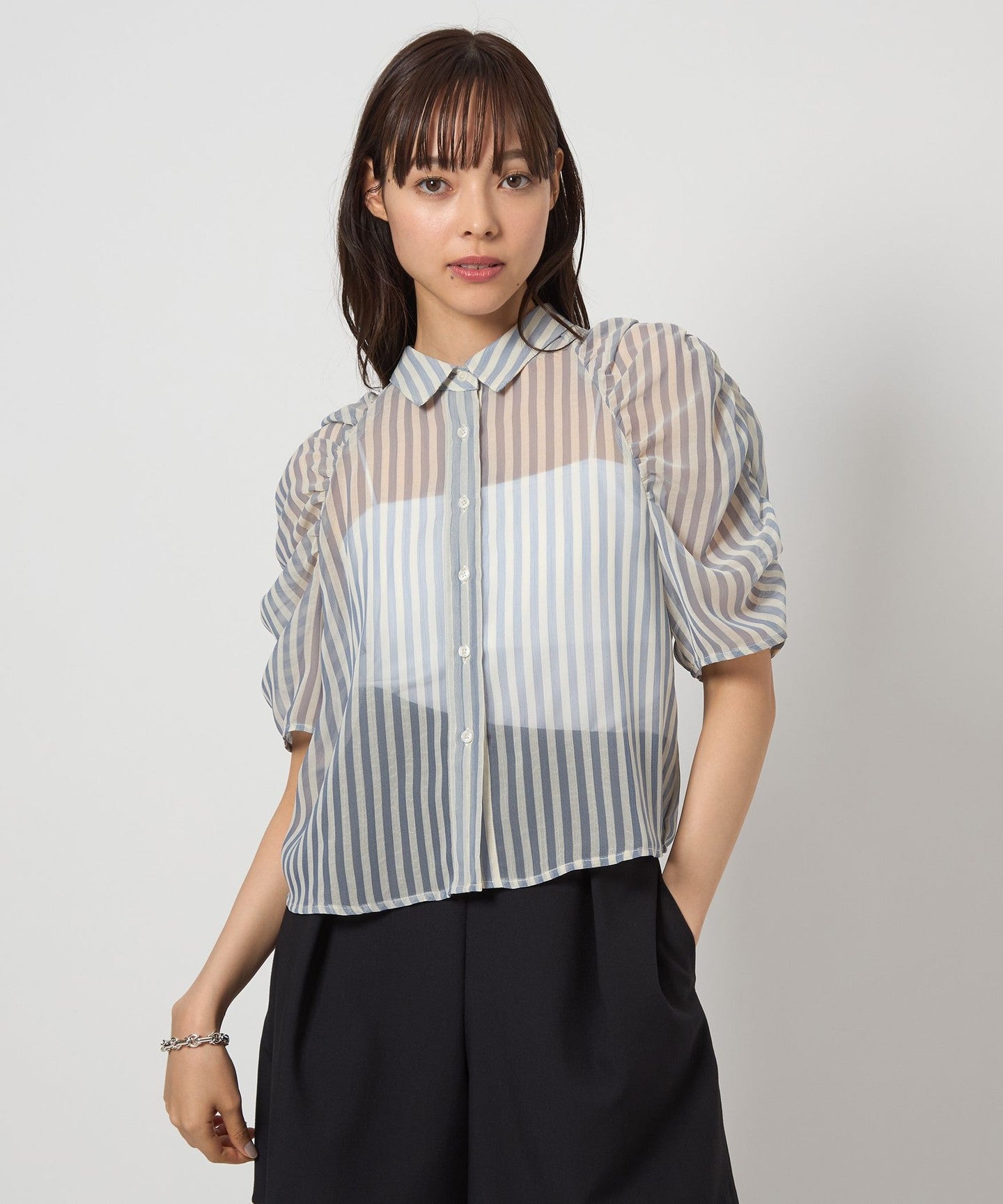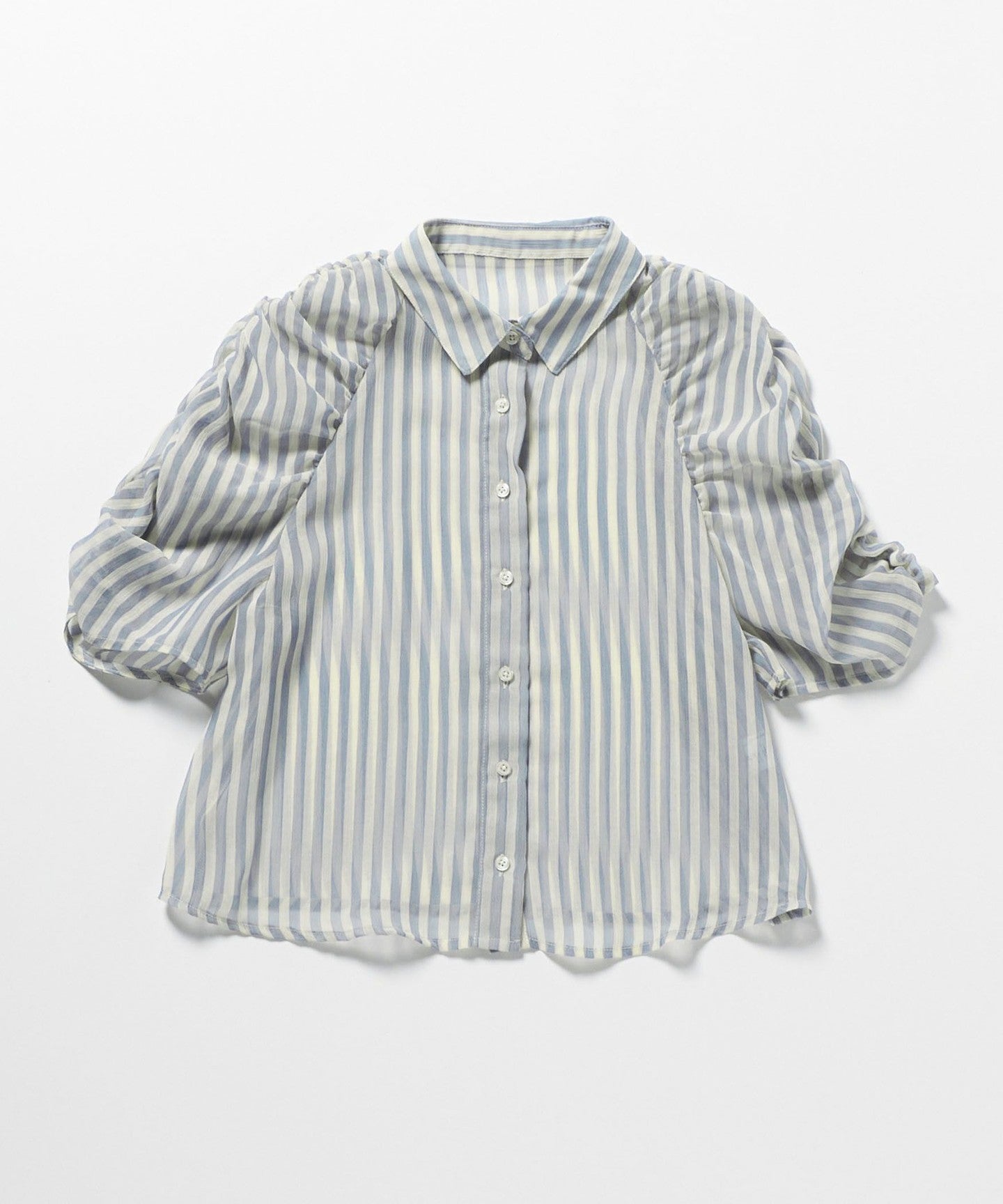 EM Sheer Stripe Sode Gathered Blouse