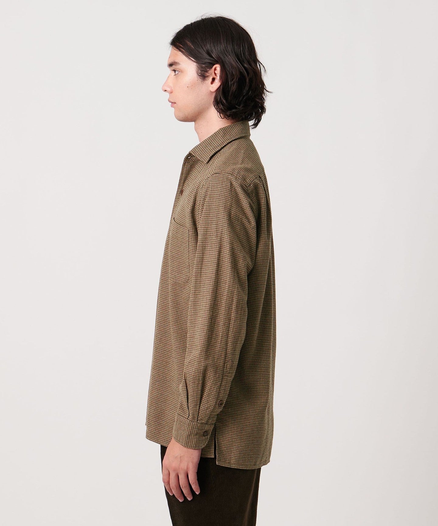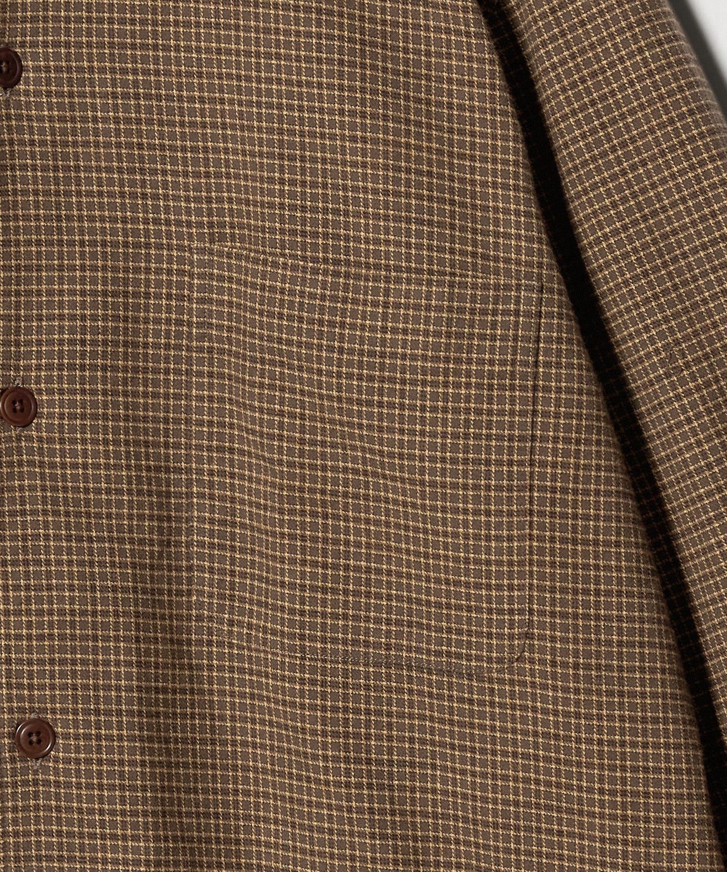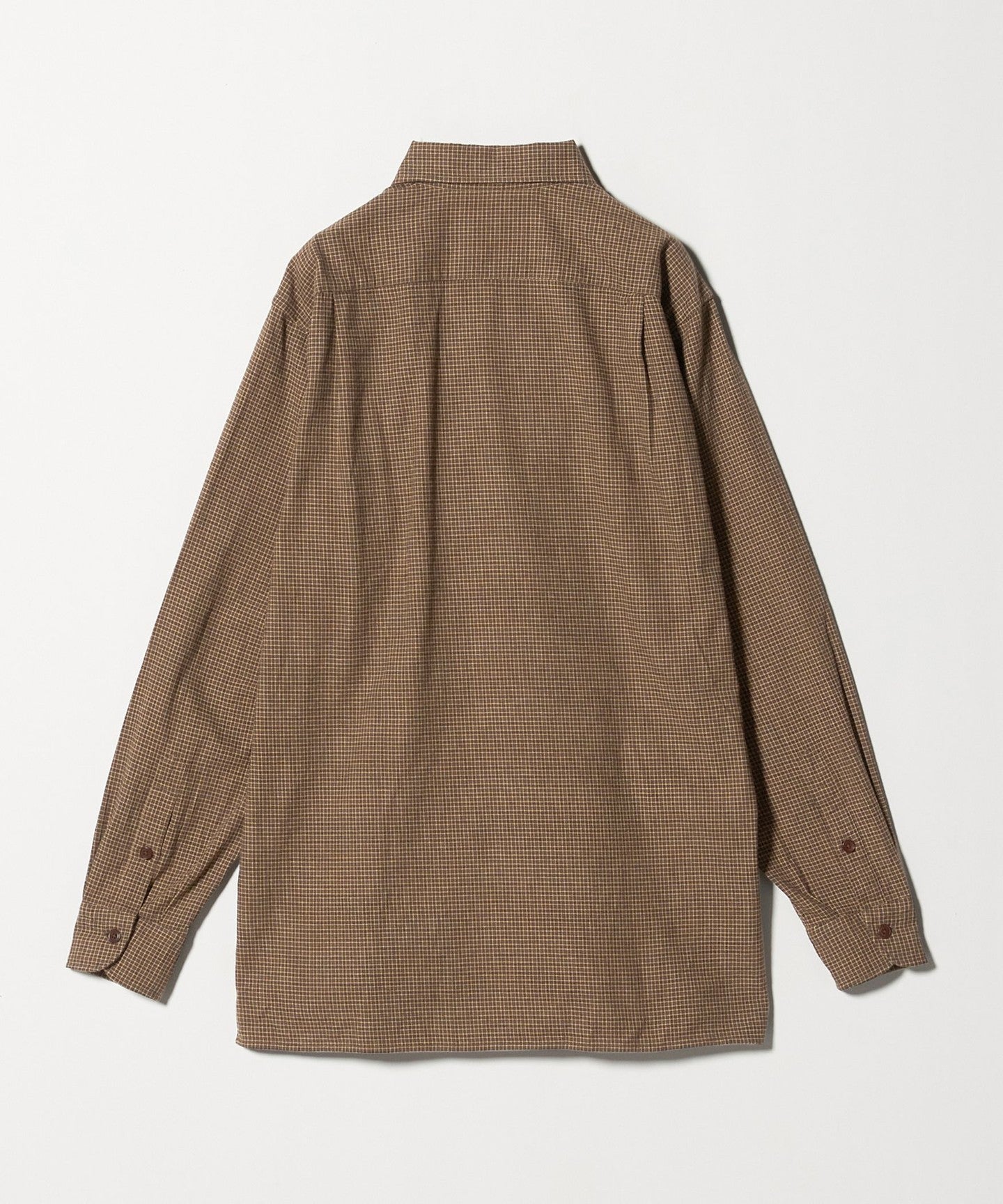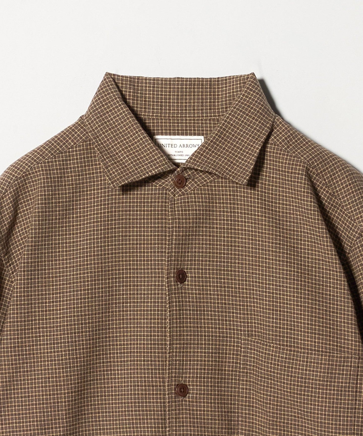 A check shirt featuring a soft one-piece collar and a square hem with a slightly deep slit.