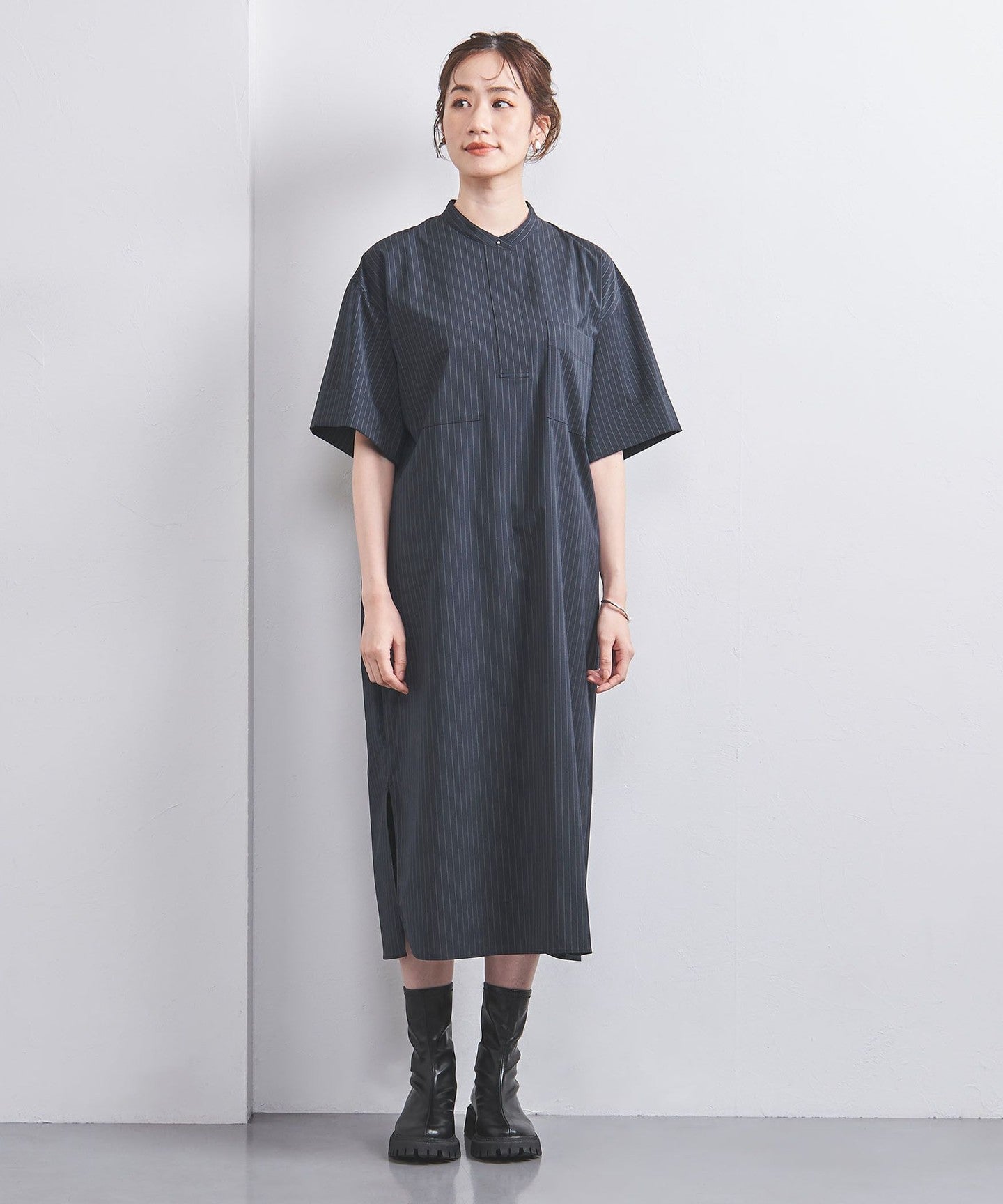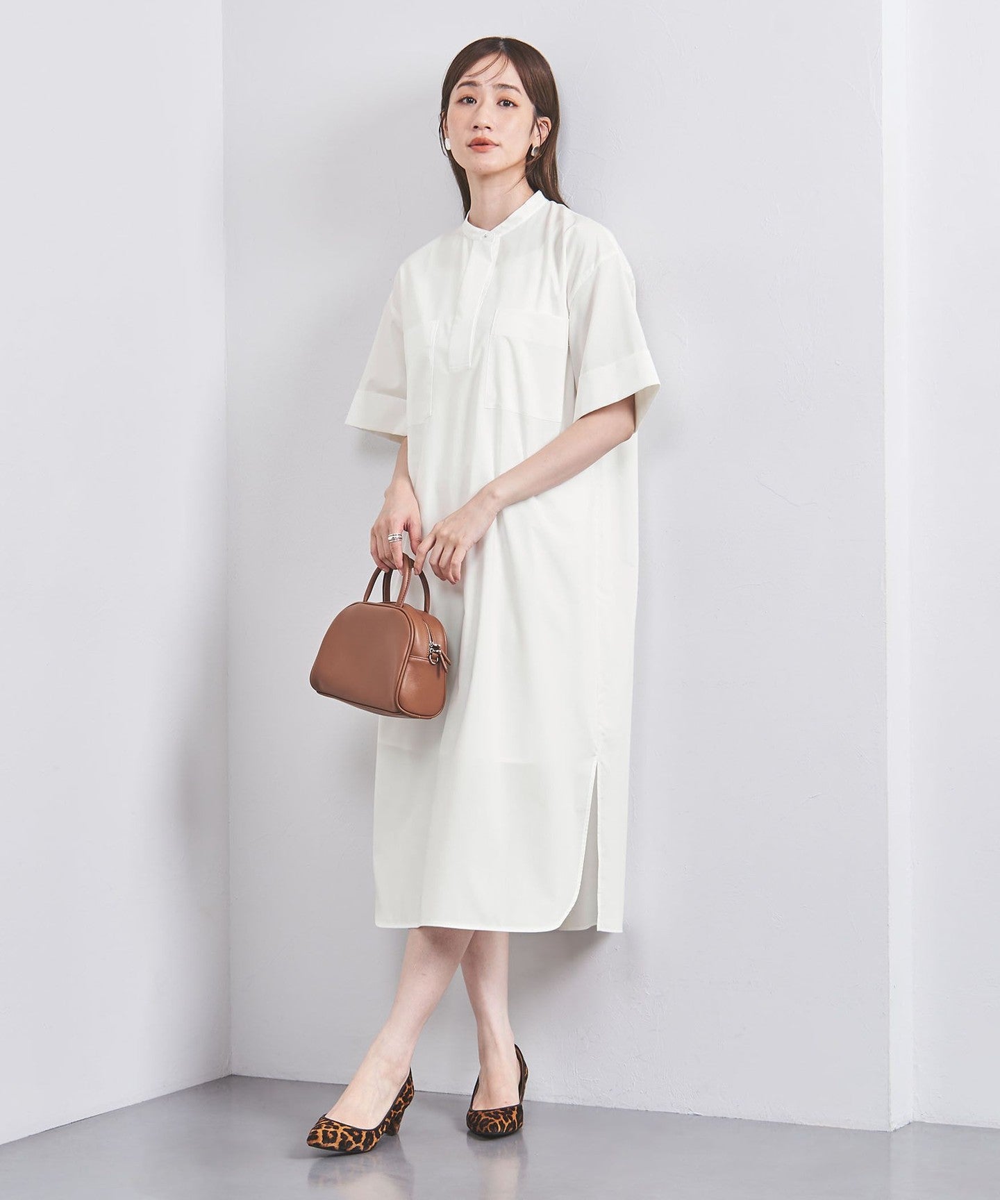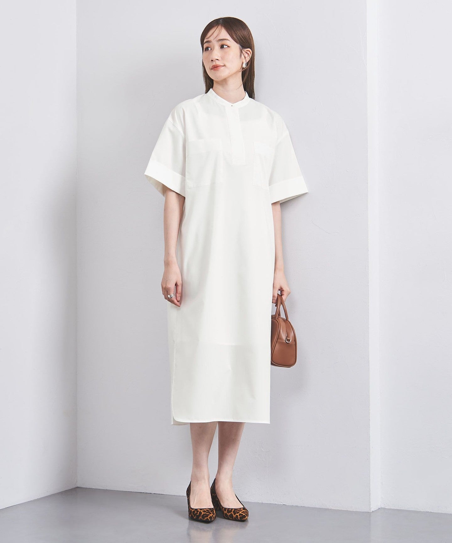 A shirt dress with large patch pockets and 5/4 sleeves for a sharp look.