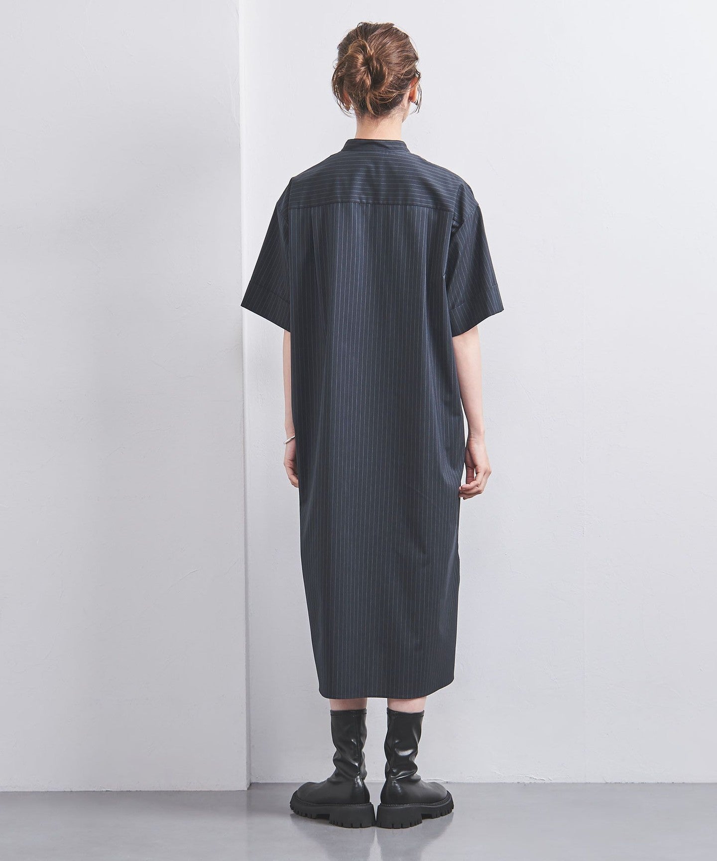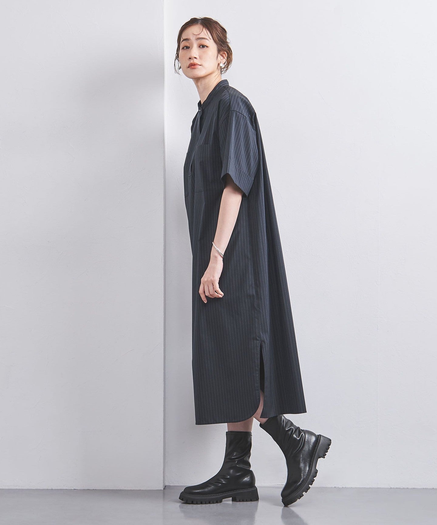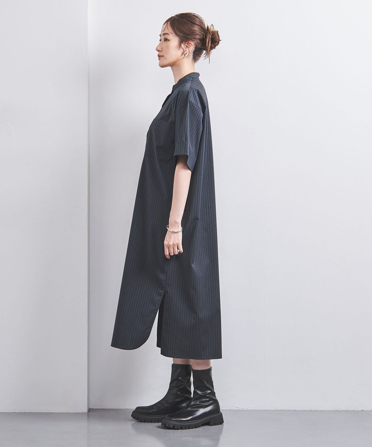 A shirt dress with large patch pockets and 5/4 sleeves for a sharp look.