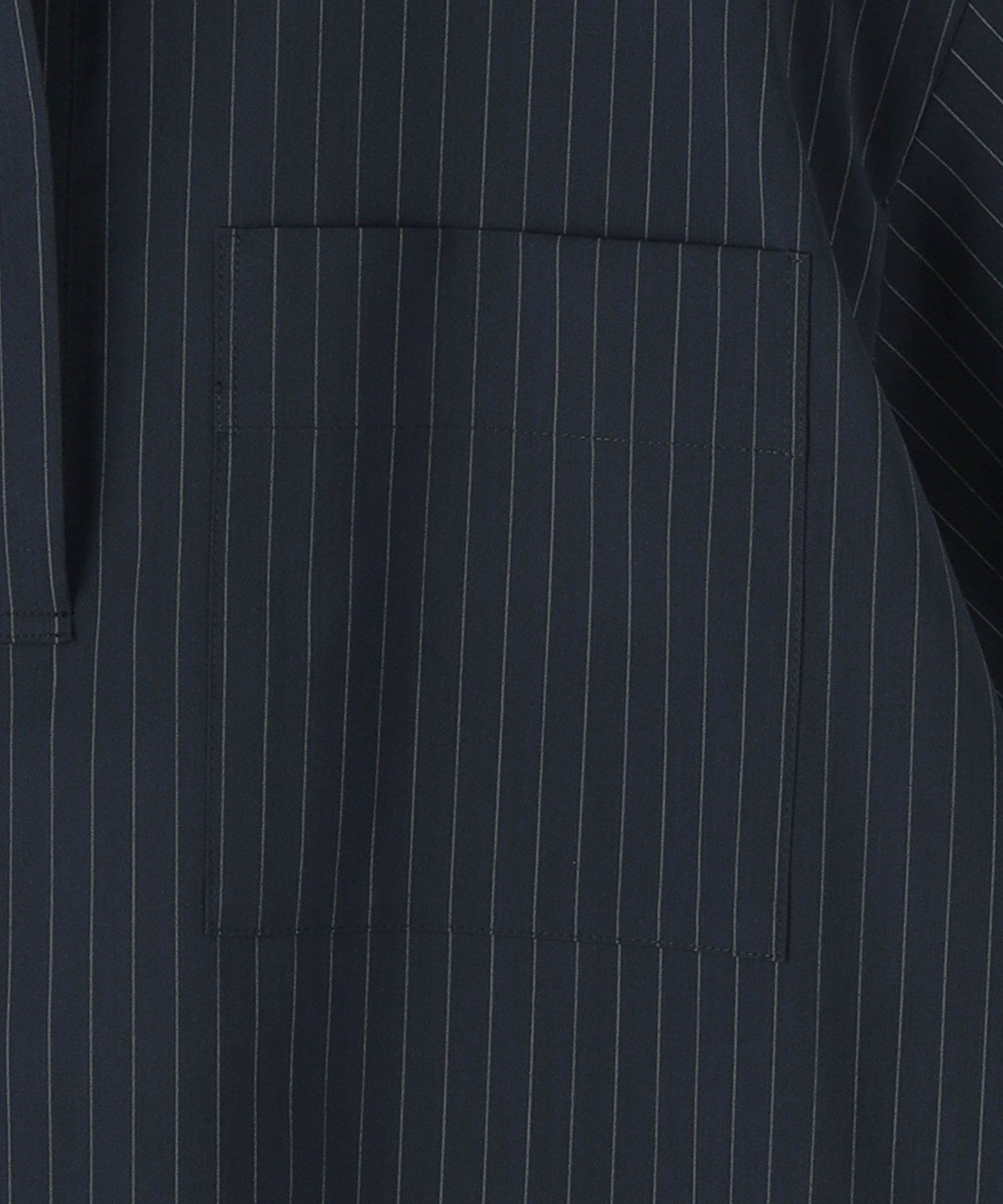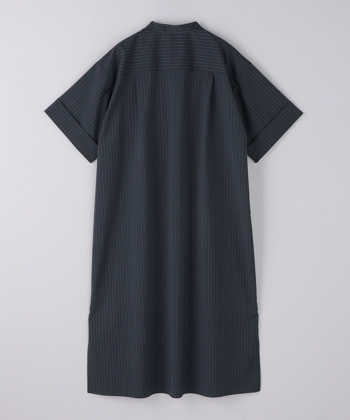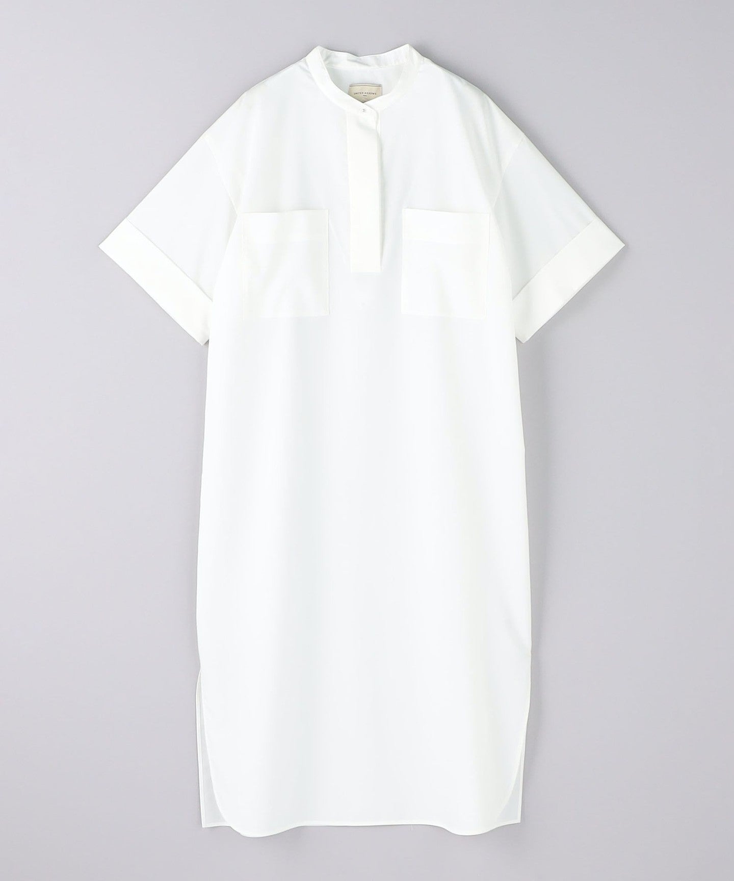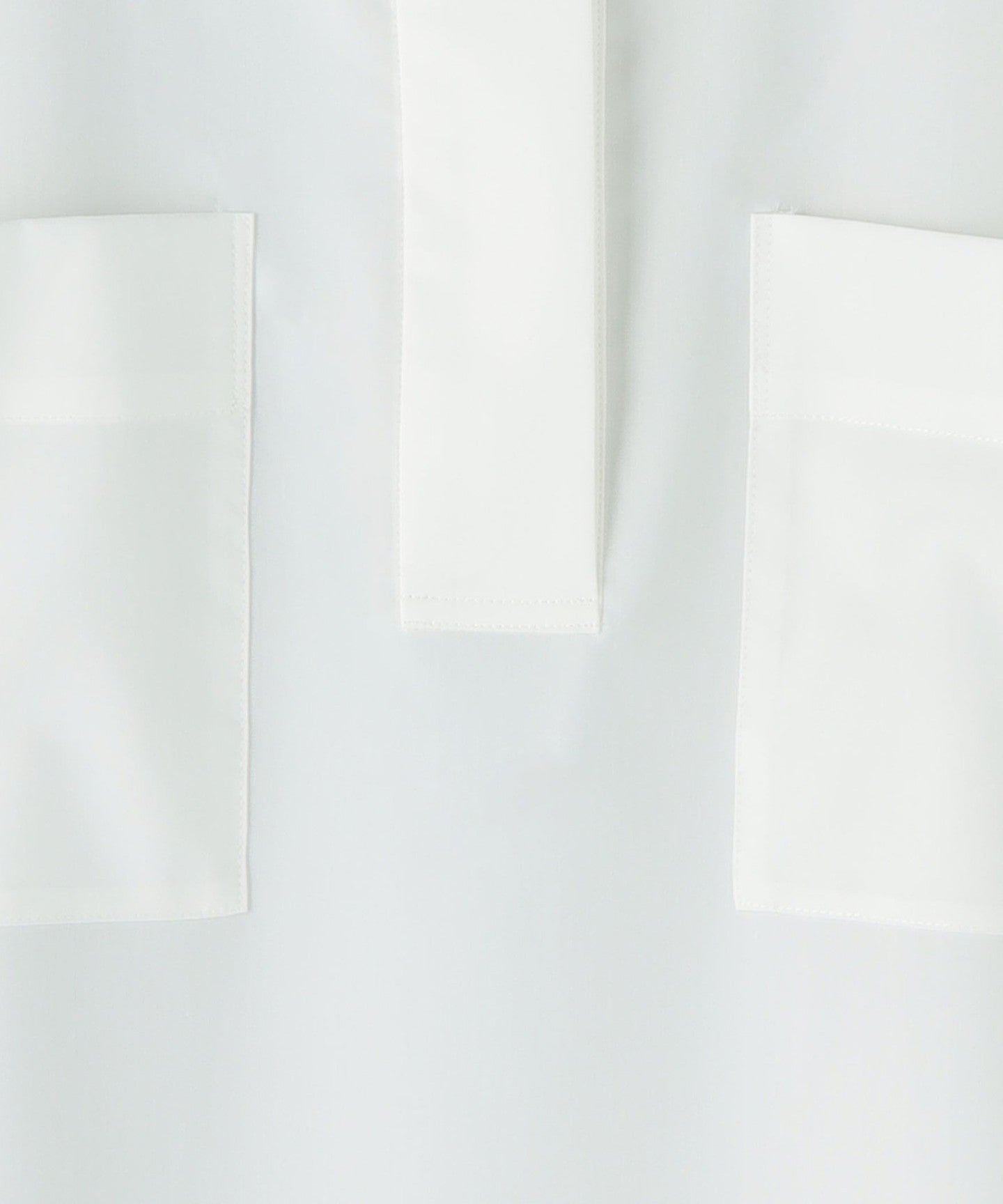 This piece is simple yet detailed, with a wide placket, band collar, and side slits.