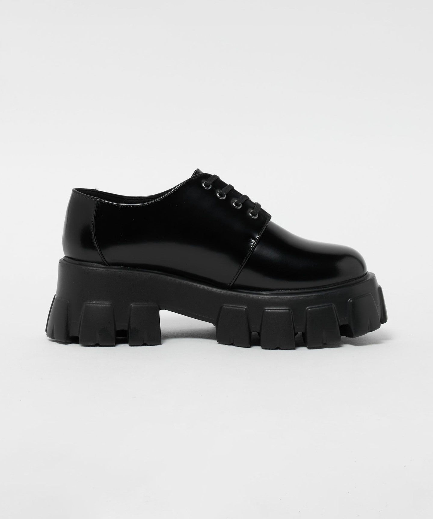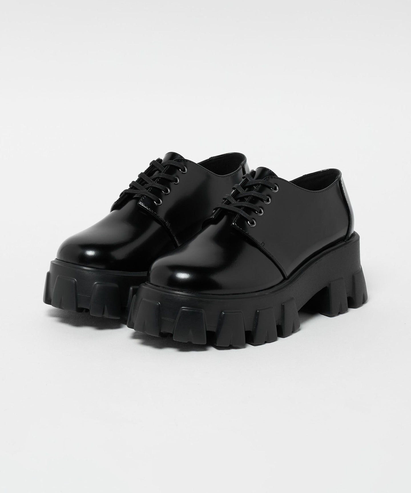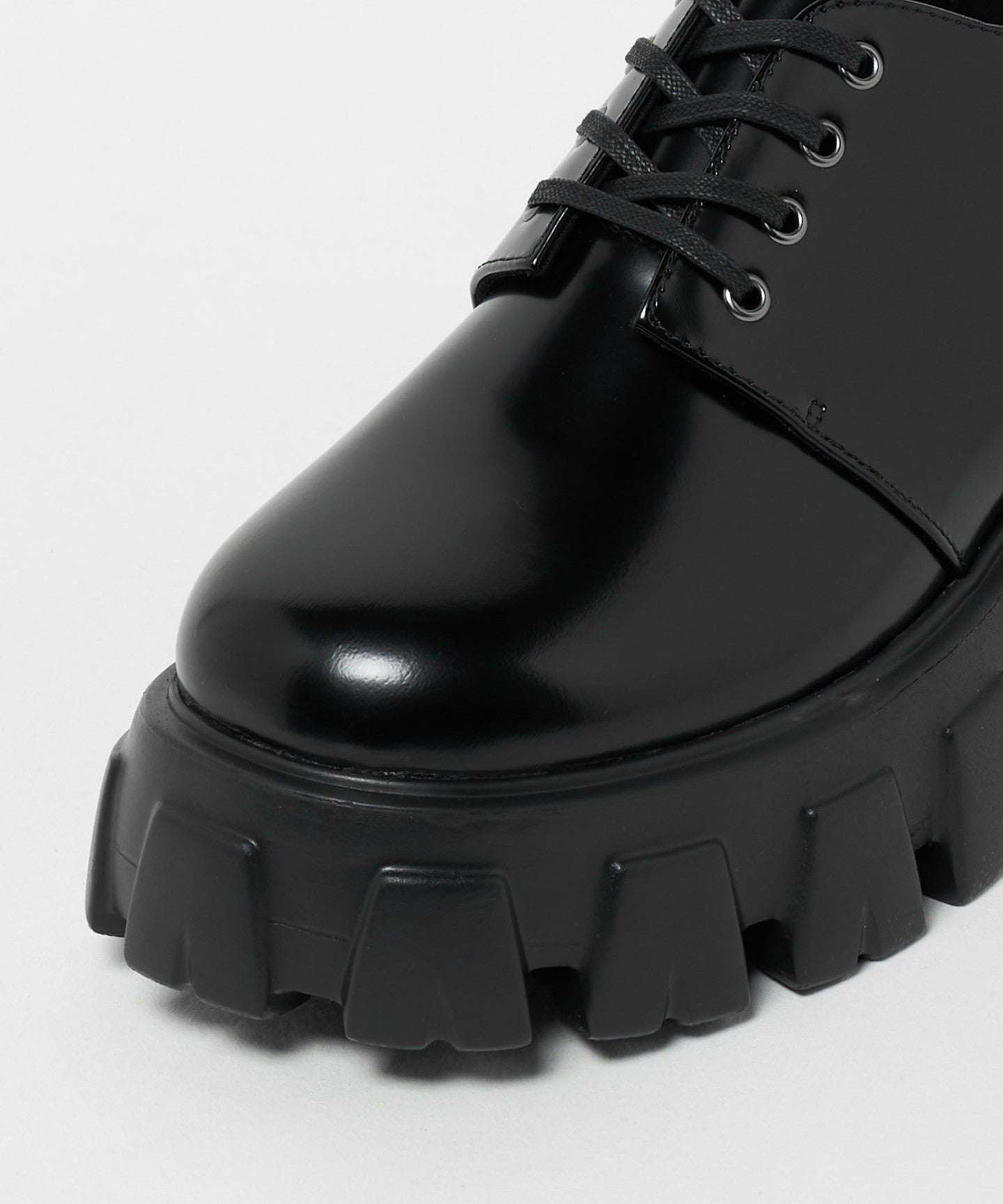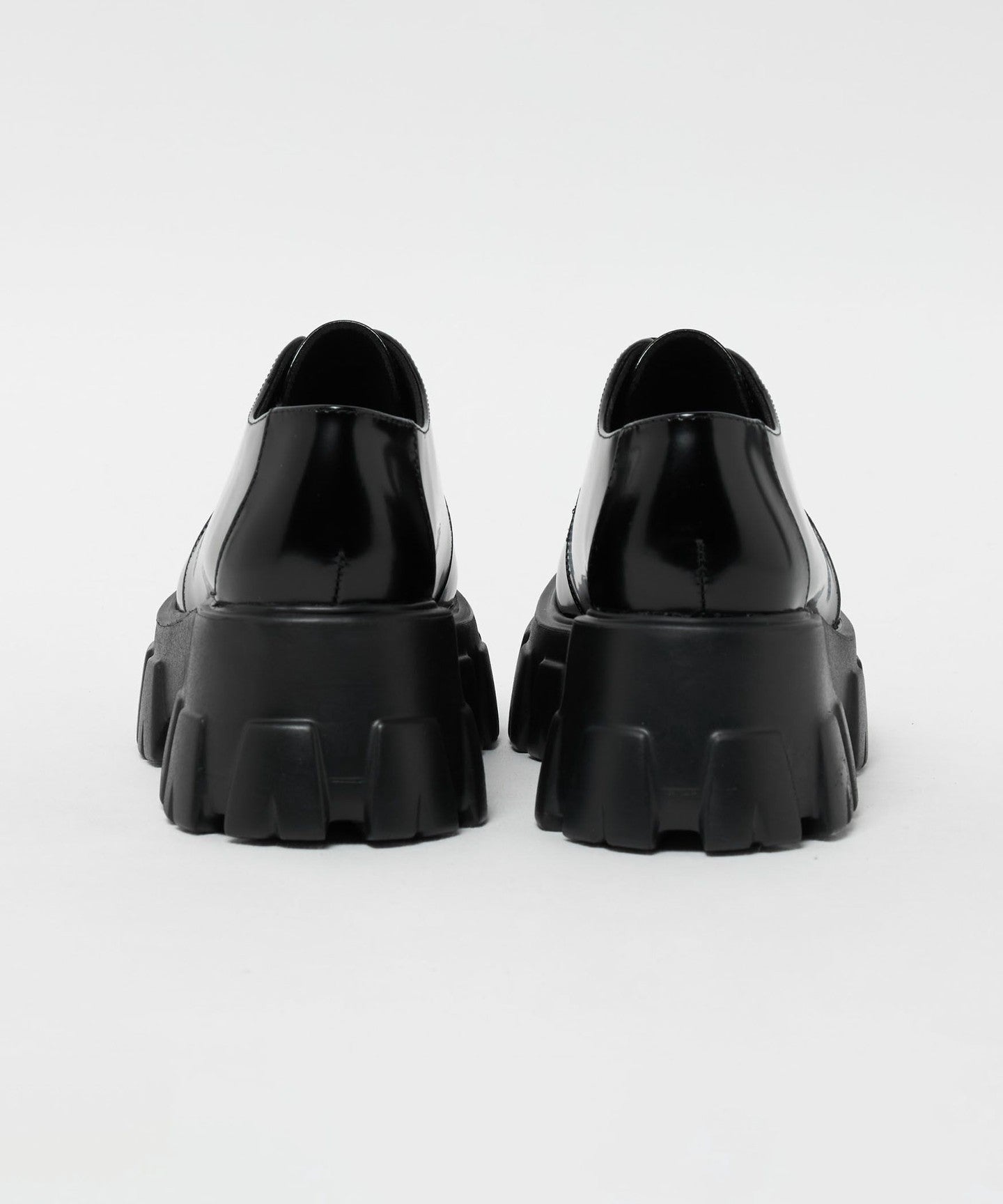 The men's lace-up design has a modern touch, finished with glossy natural leather and a thick sole.