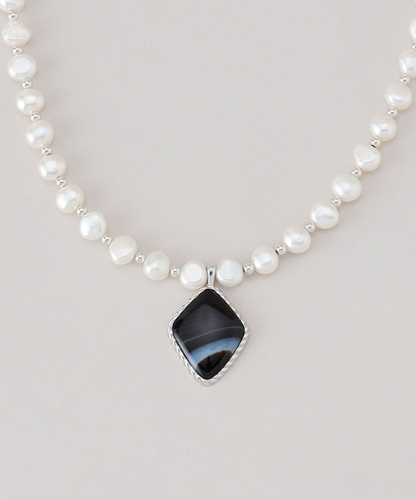 ・BLACK: SLV925/Freshwater pearl/Black striped agate