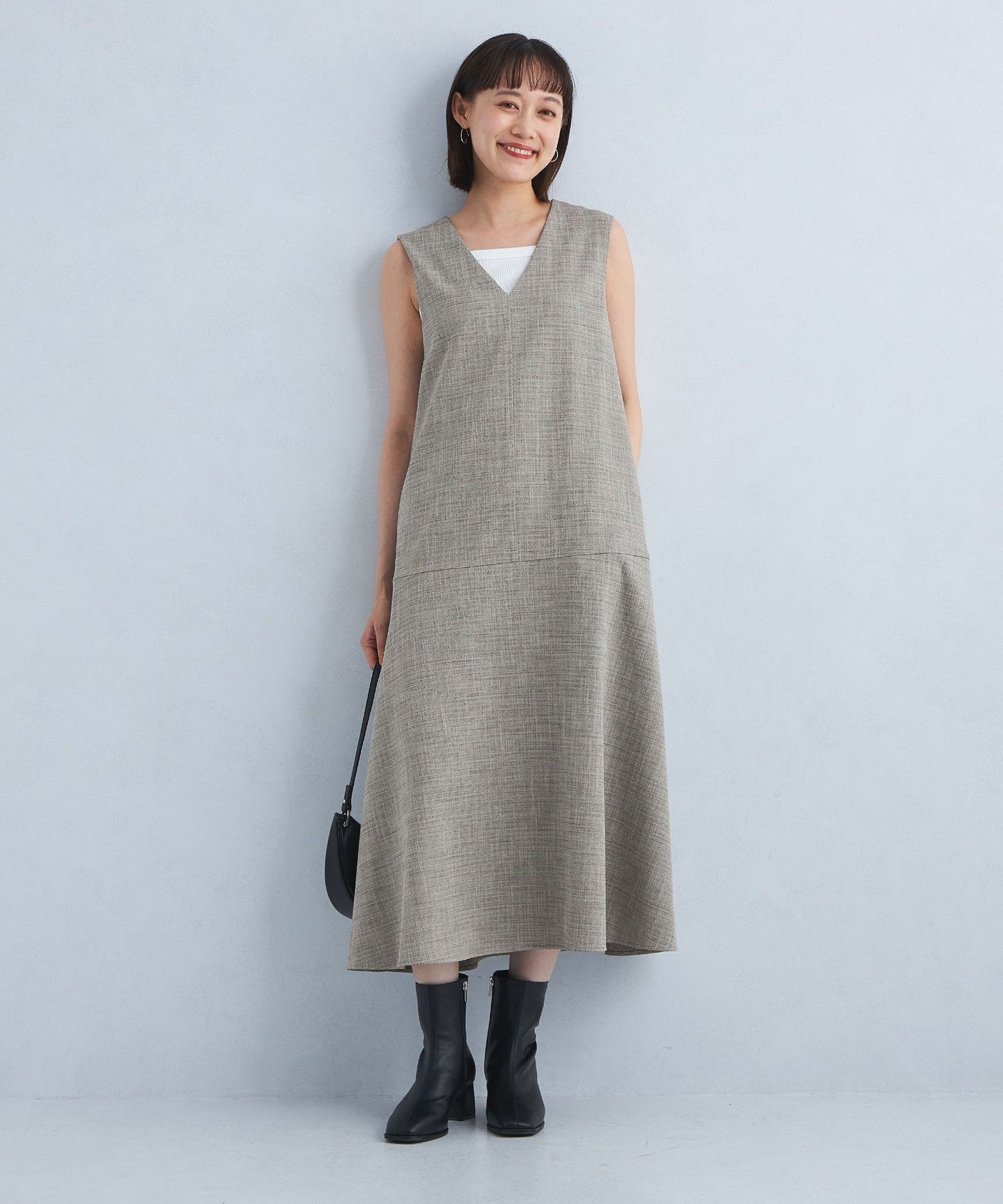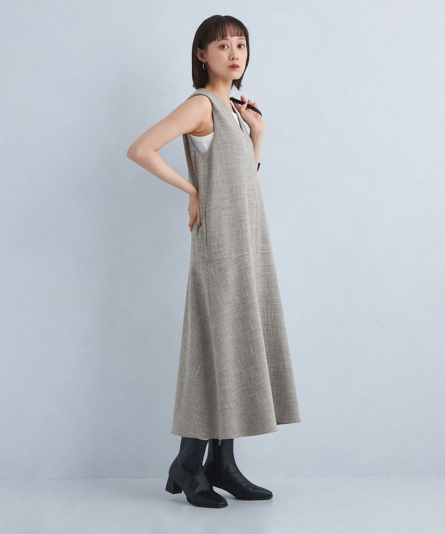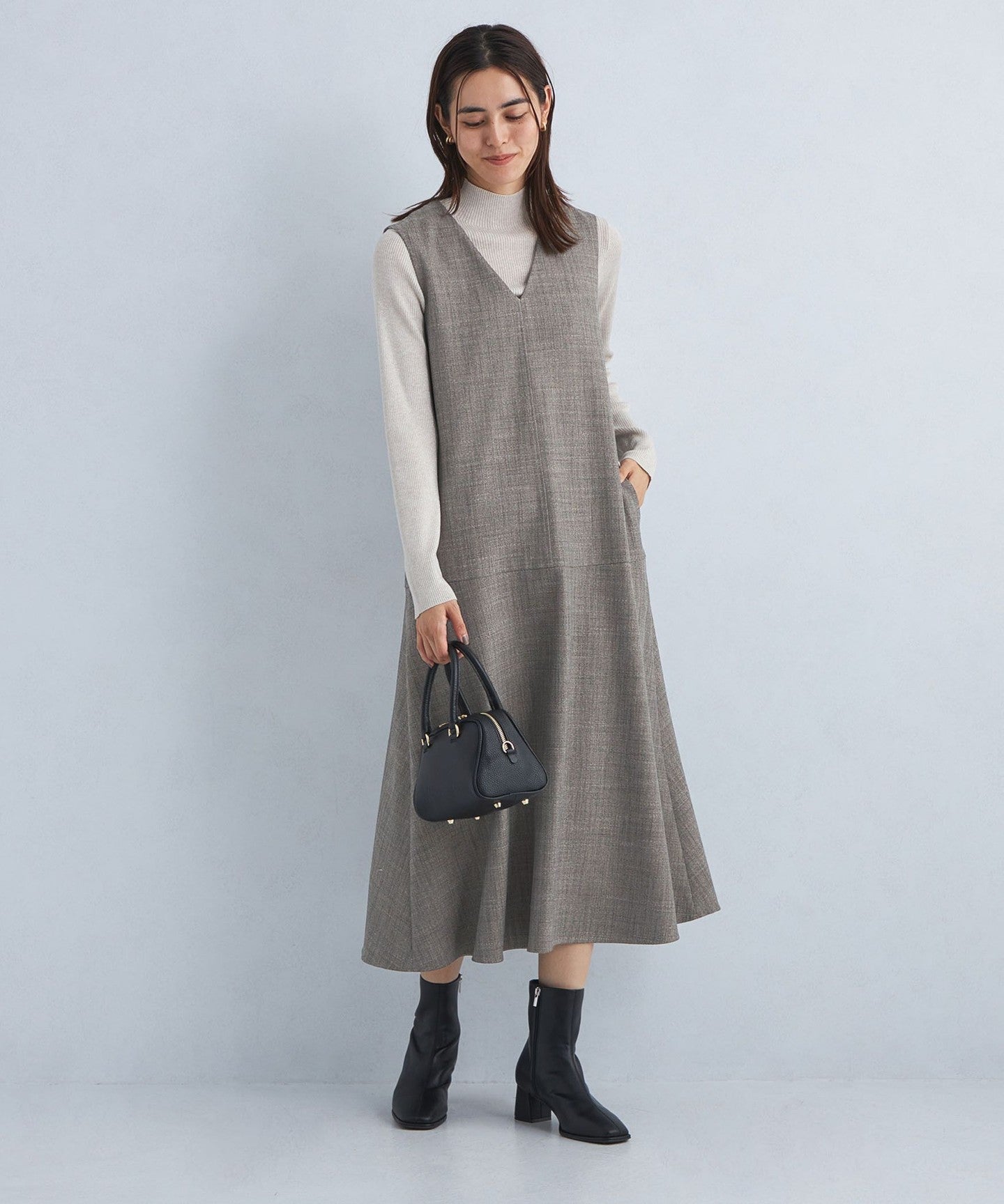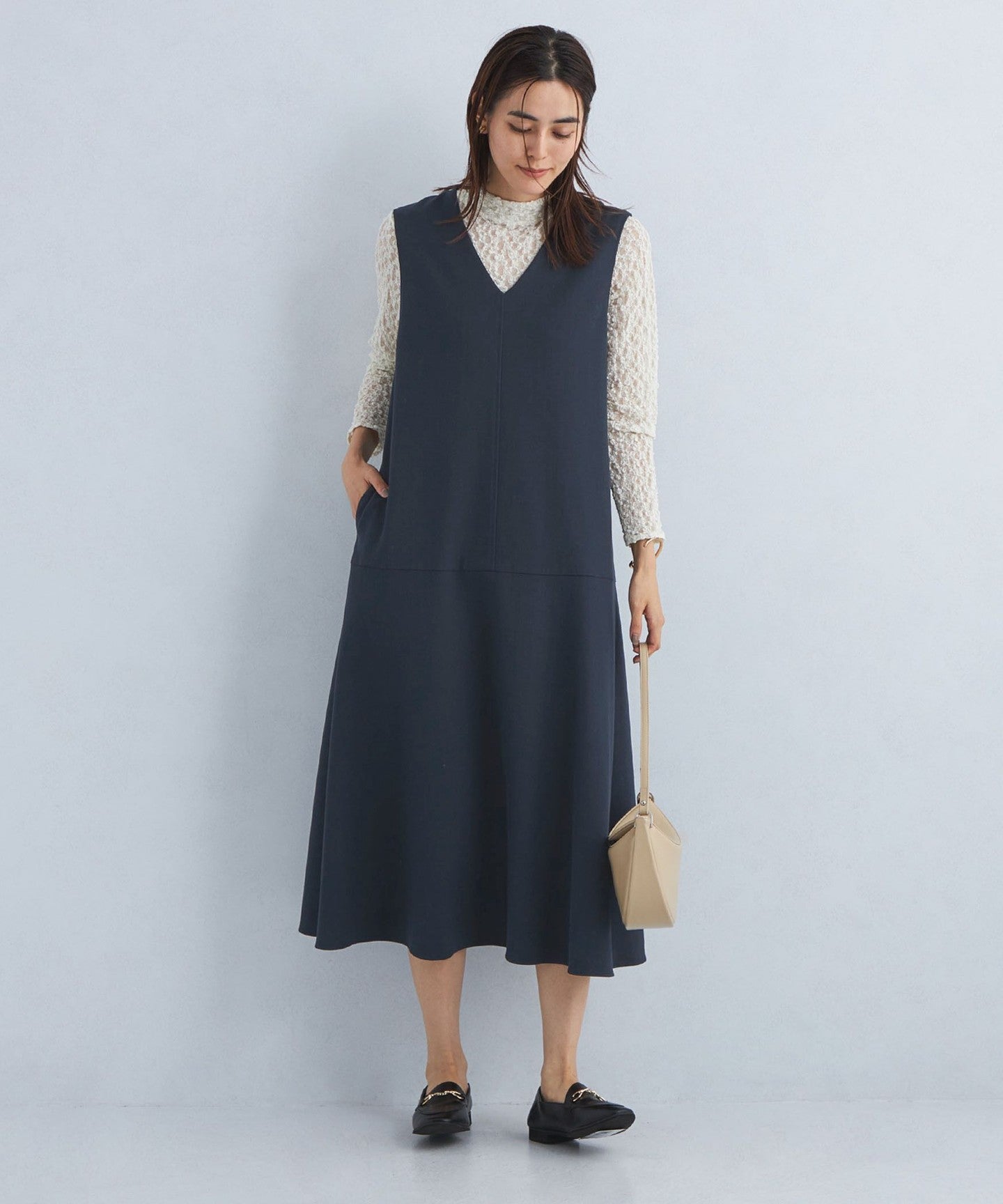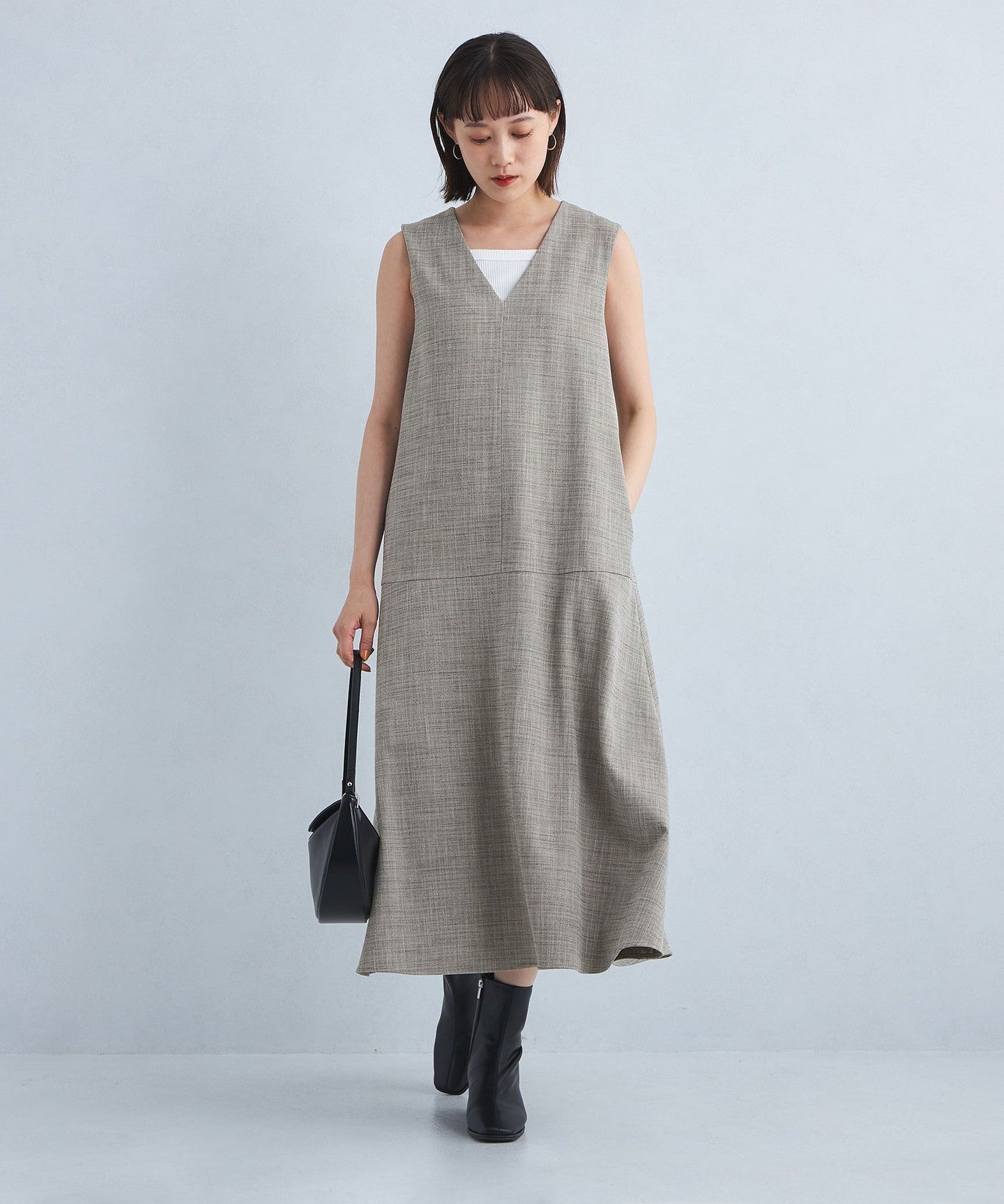 [Size SHORT available] V-neck narrow jumper skirt - wrinkle-