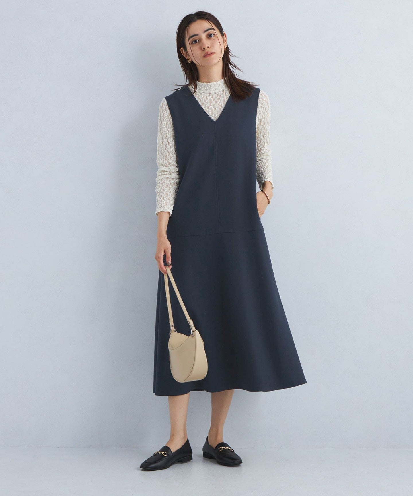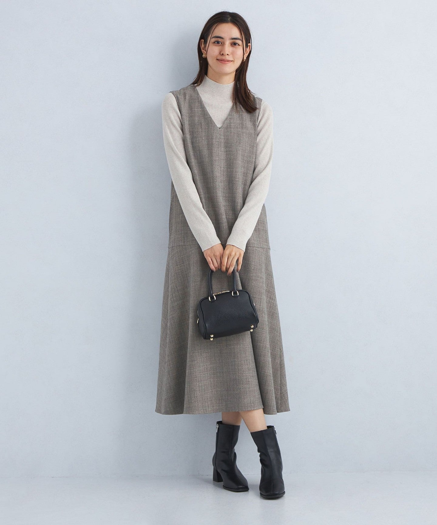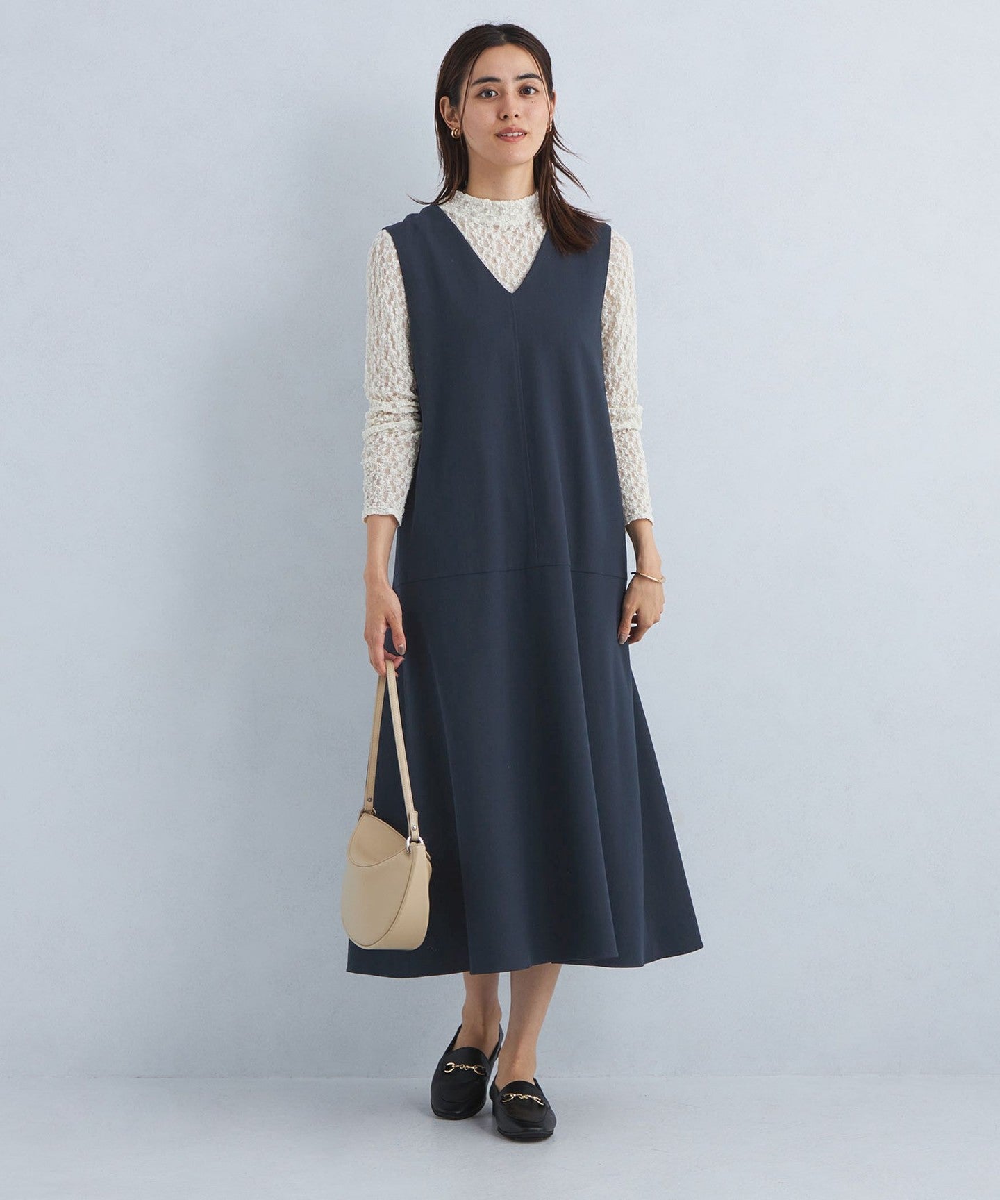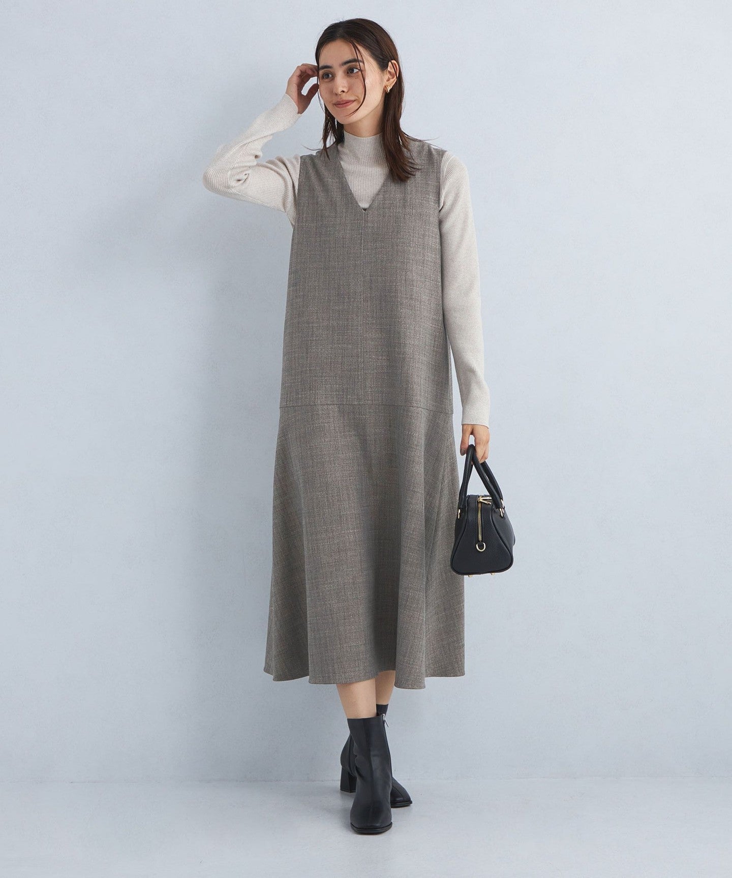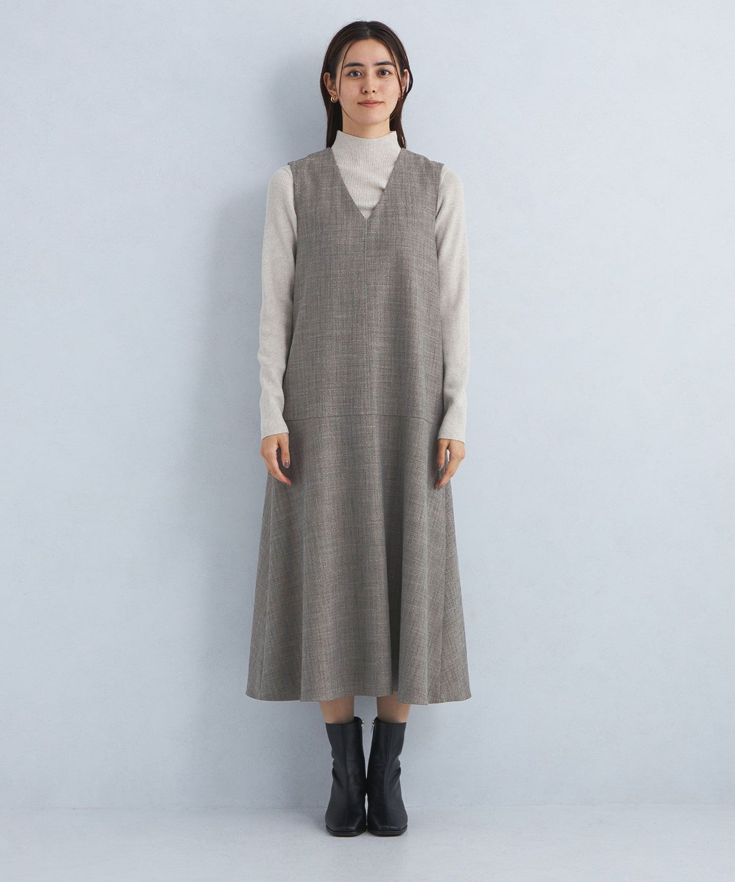 [Size SHORT available] V-neck narrow jumper skirt - wrinkle-