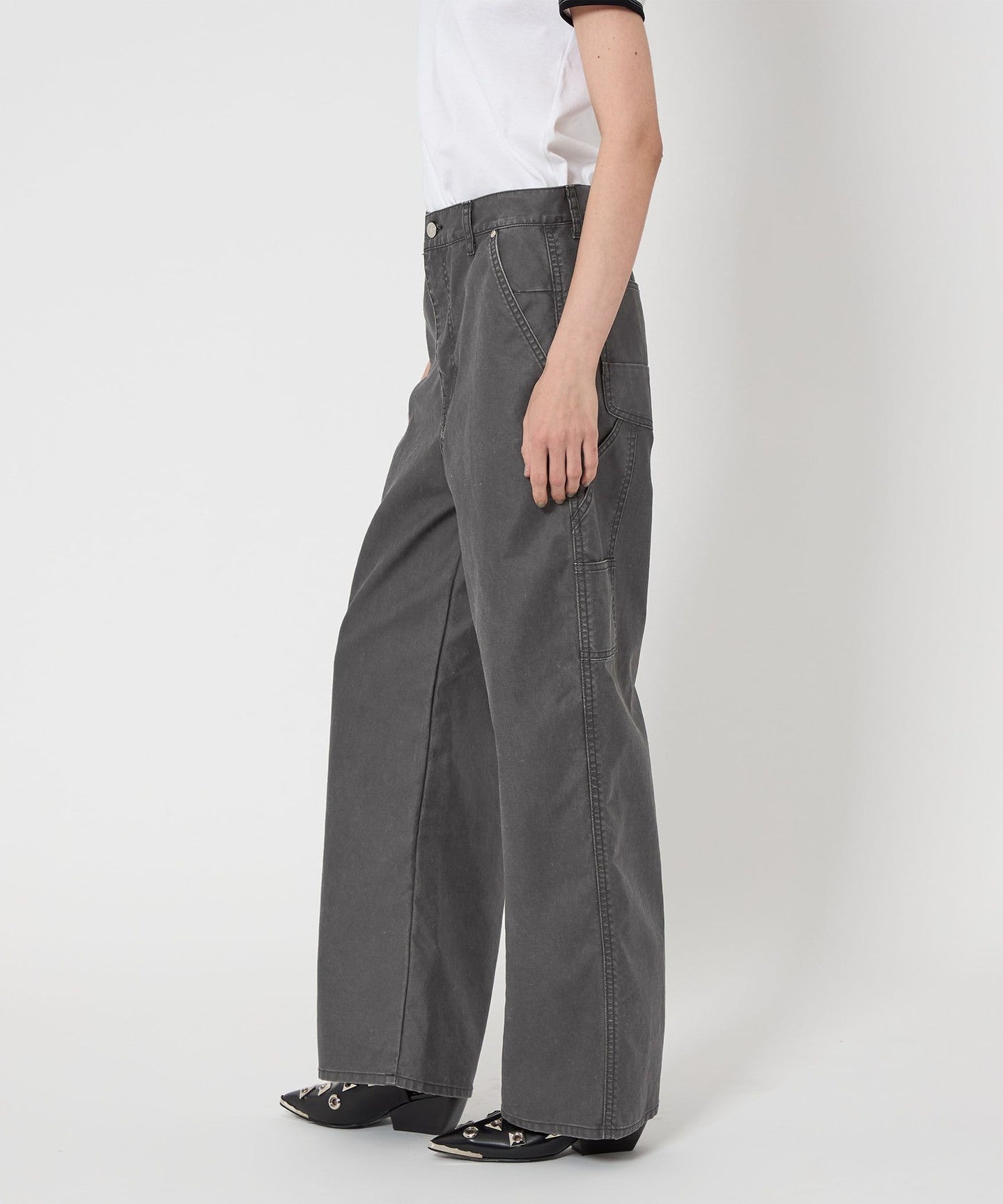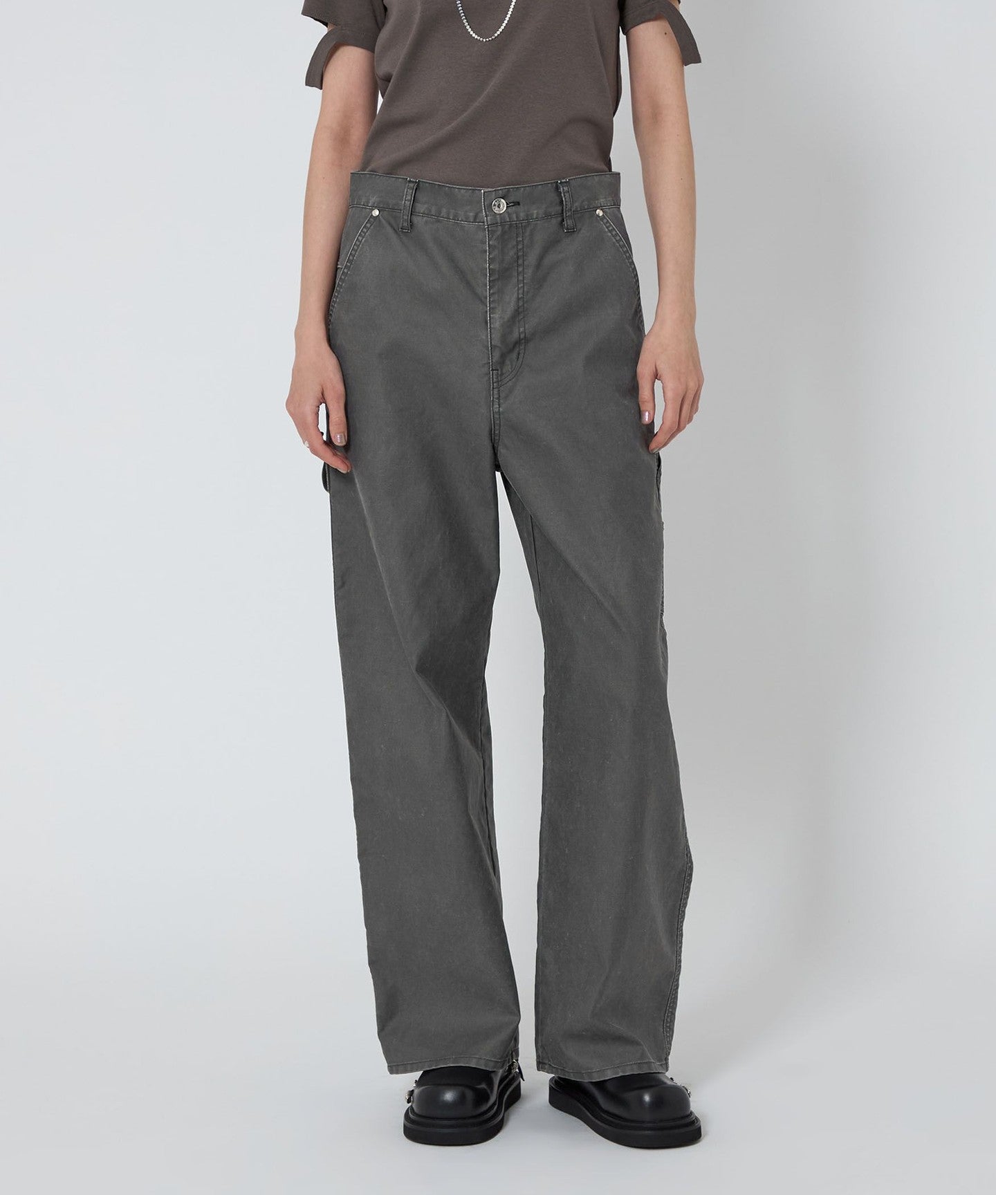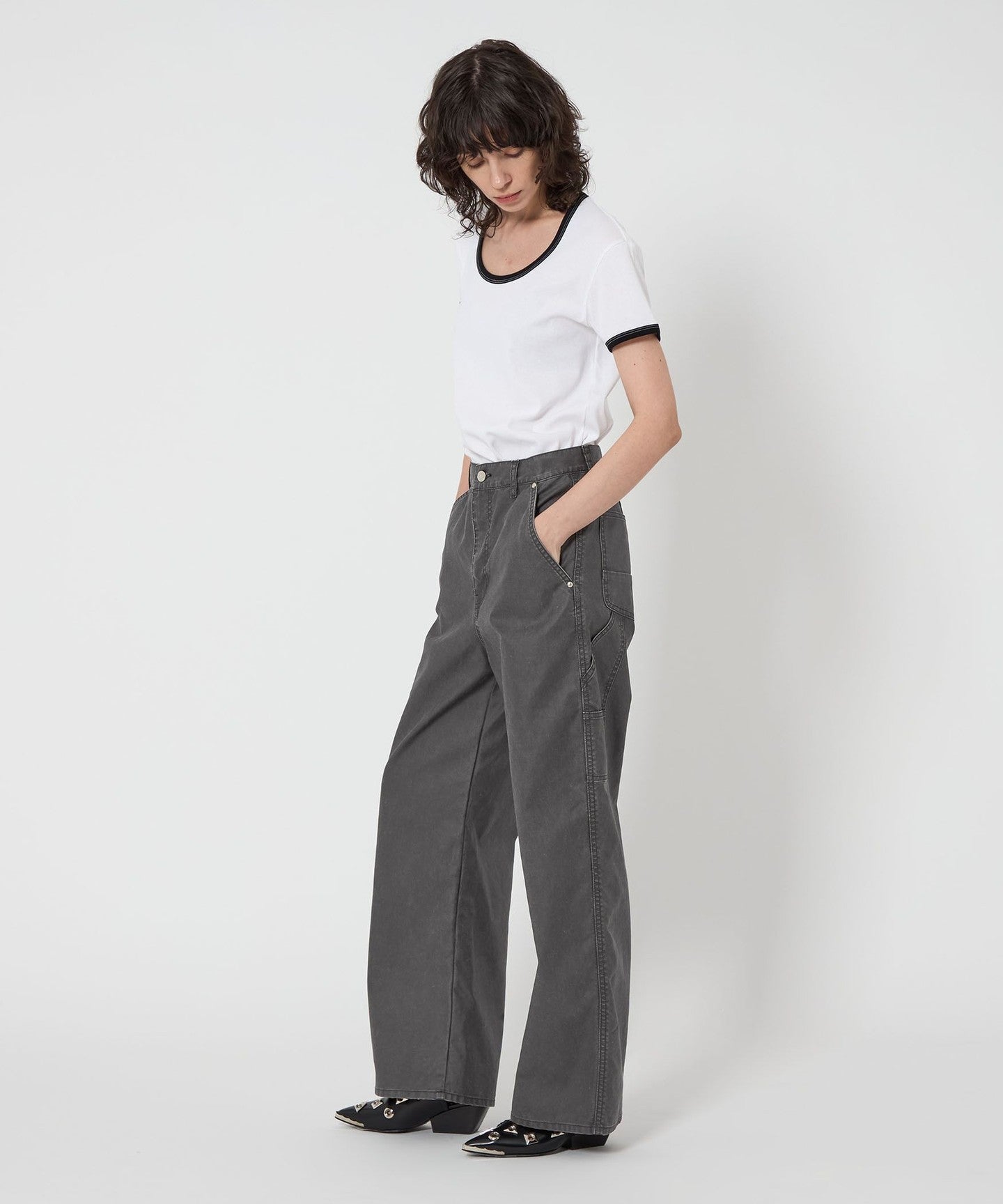 Painter-style wide pants with a coated finish that gives them a vintage look.