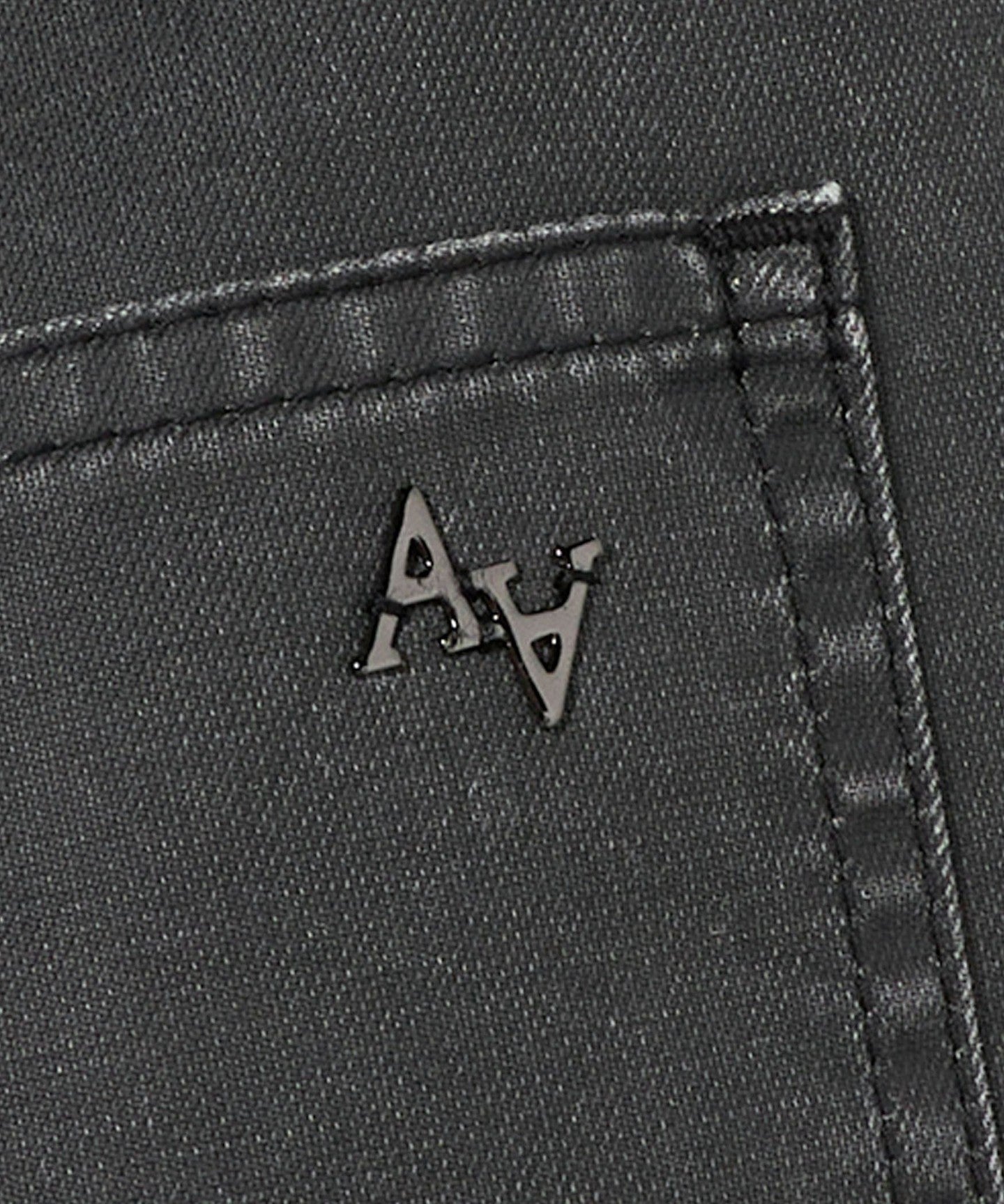 The coated cotton twill fabric is stone washed to give the product a vintage look.