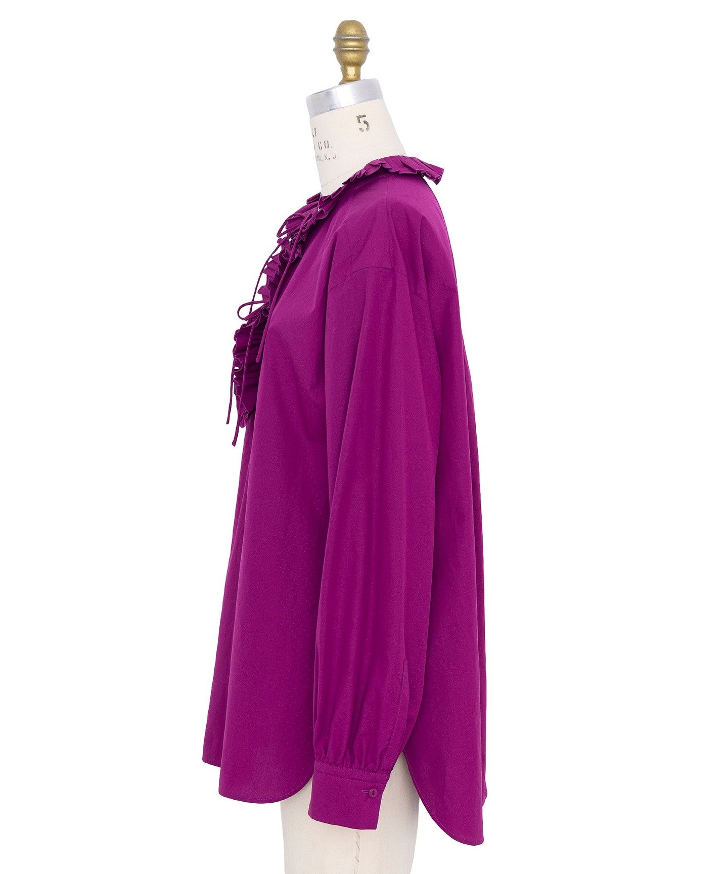 A blouse with striking randomly arranged decorative tuck pleats.