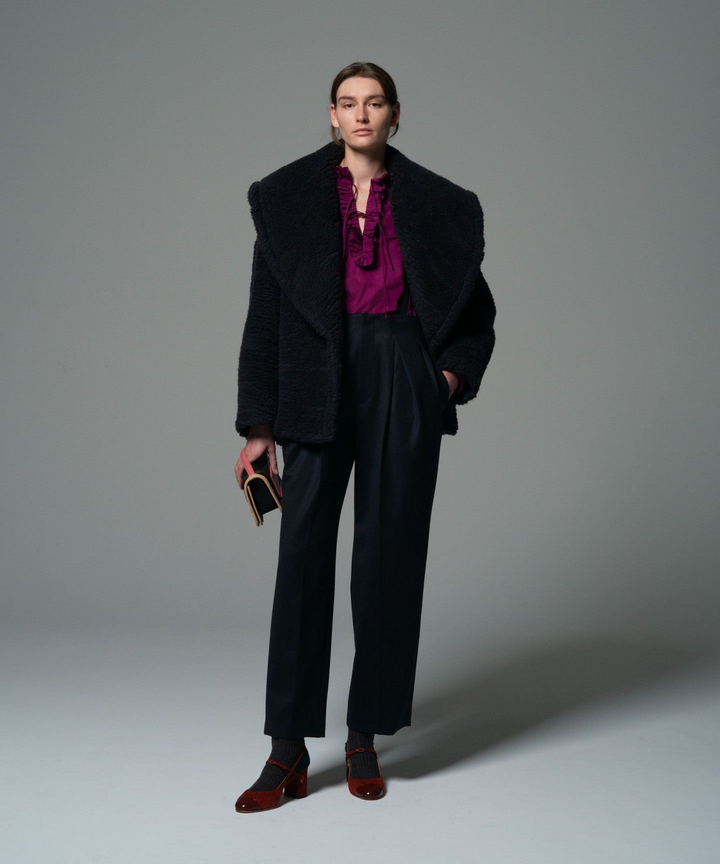 The back has a slightly flared silhouette with tucks at the neck, making it look great when styled on its own.