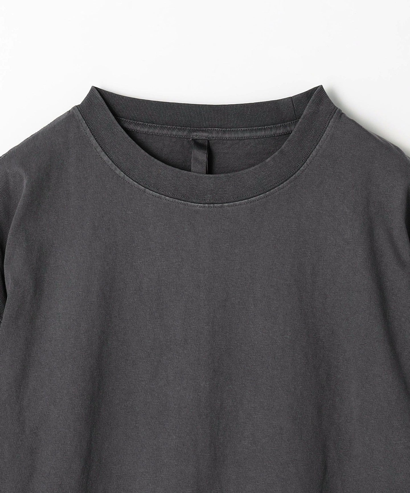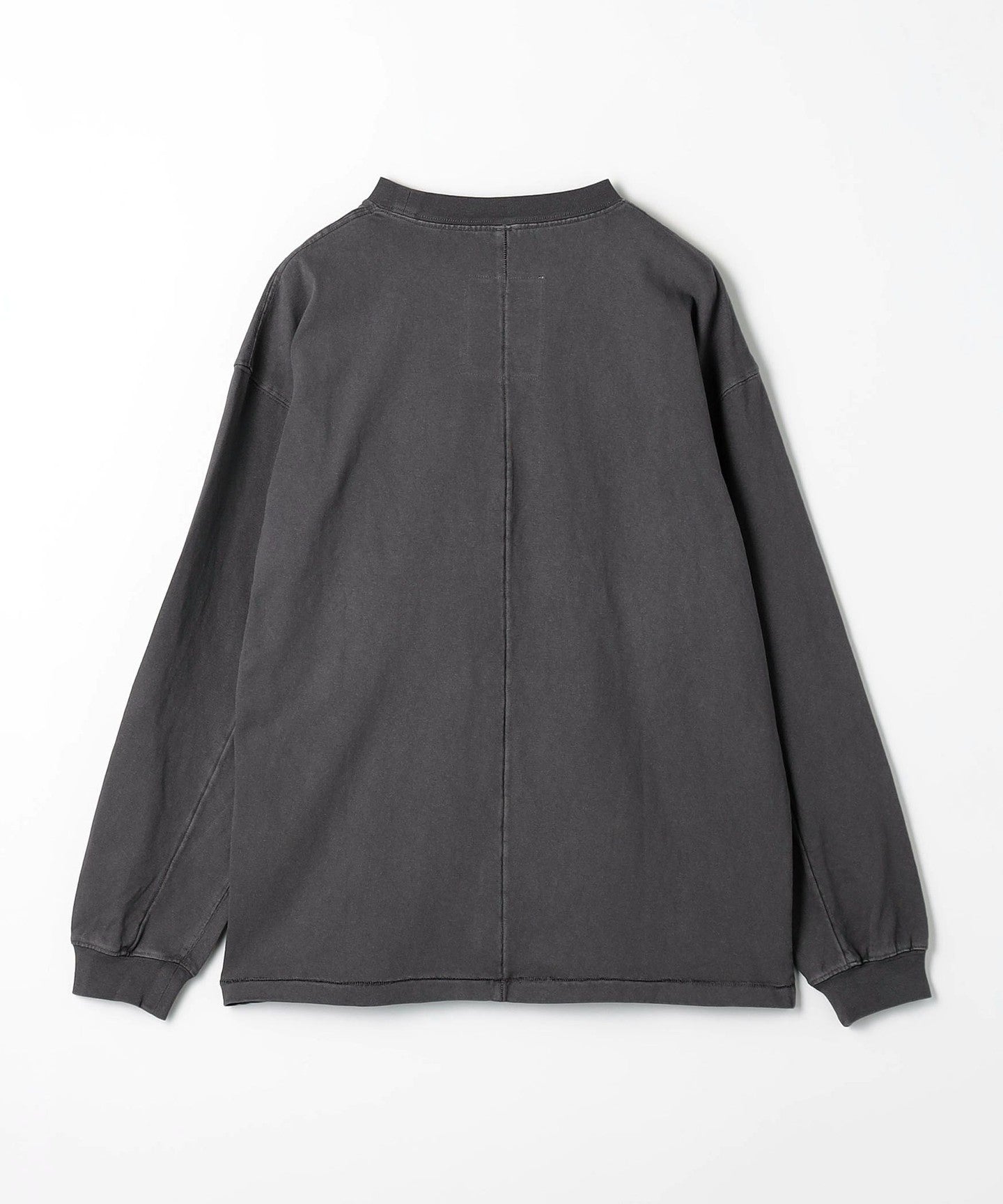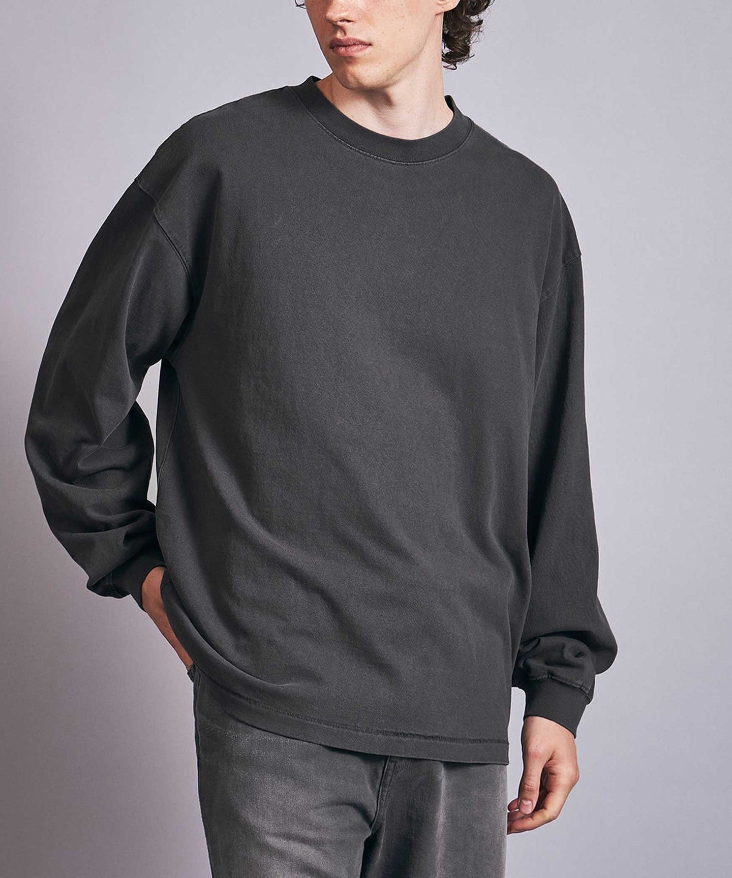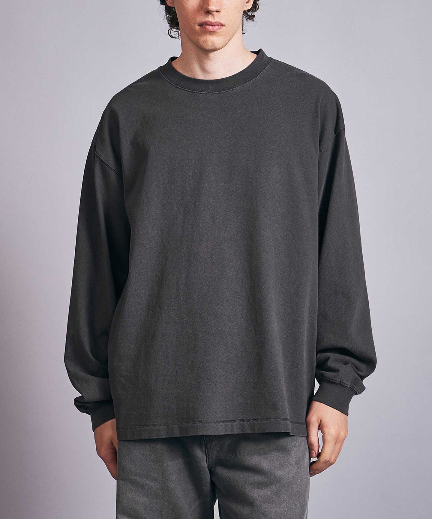 An oversized long-sleeved T-shirt made with open-end yarn that has a rough feel against the skin.