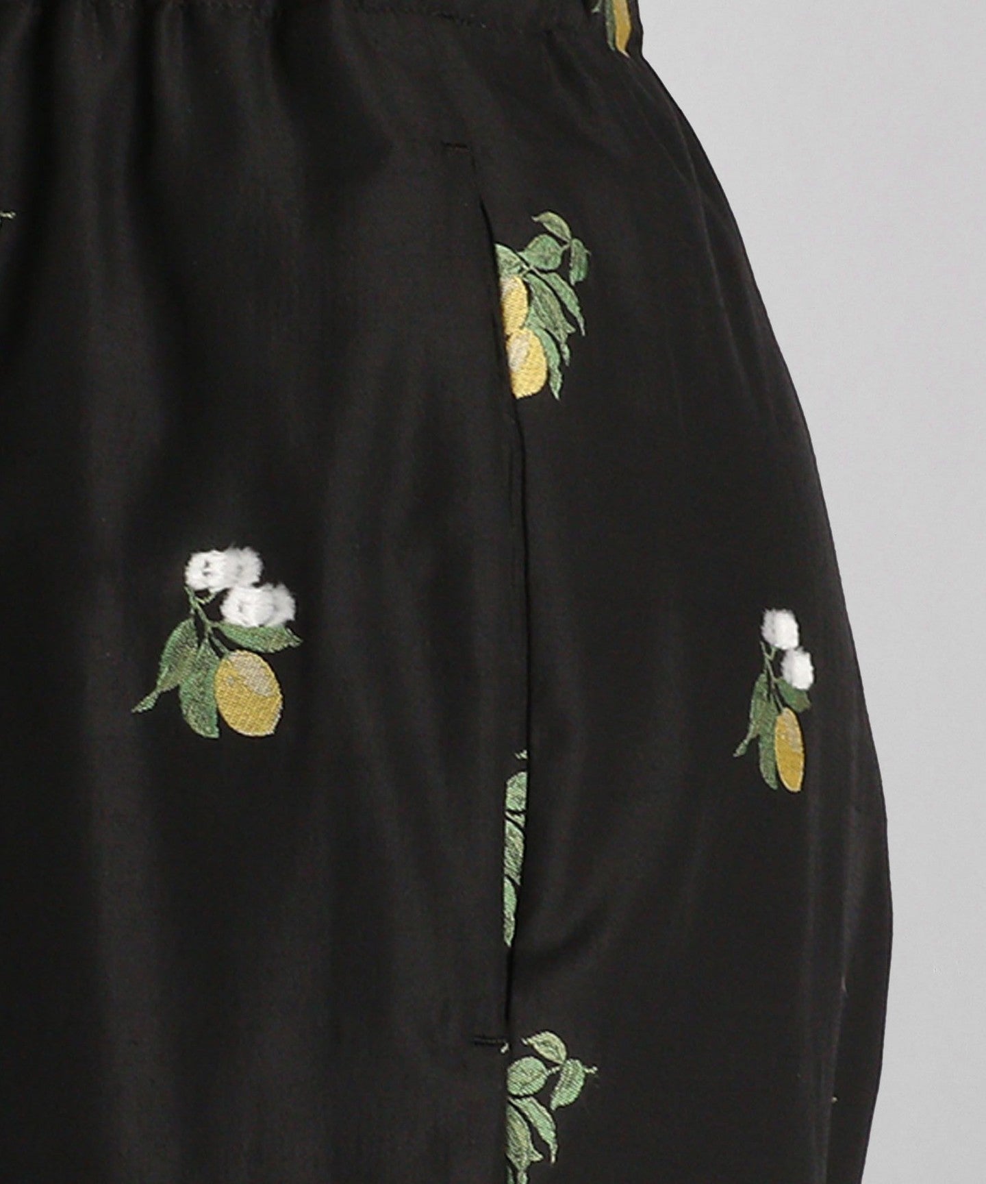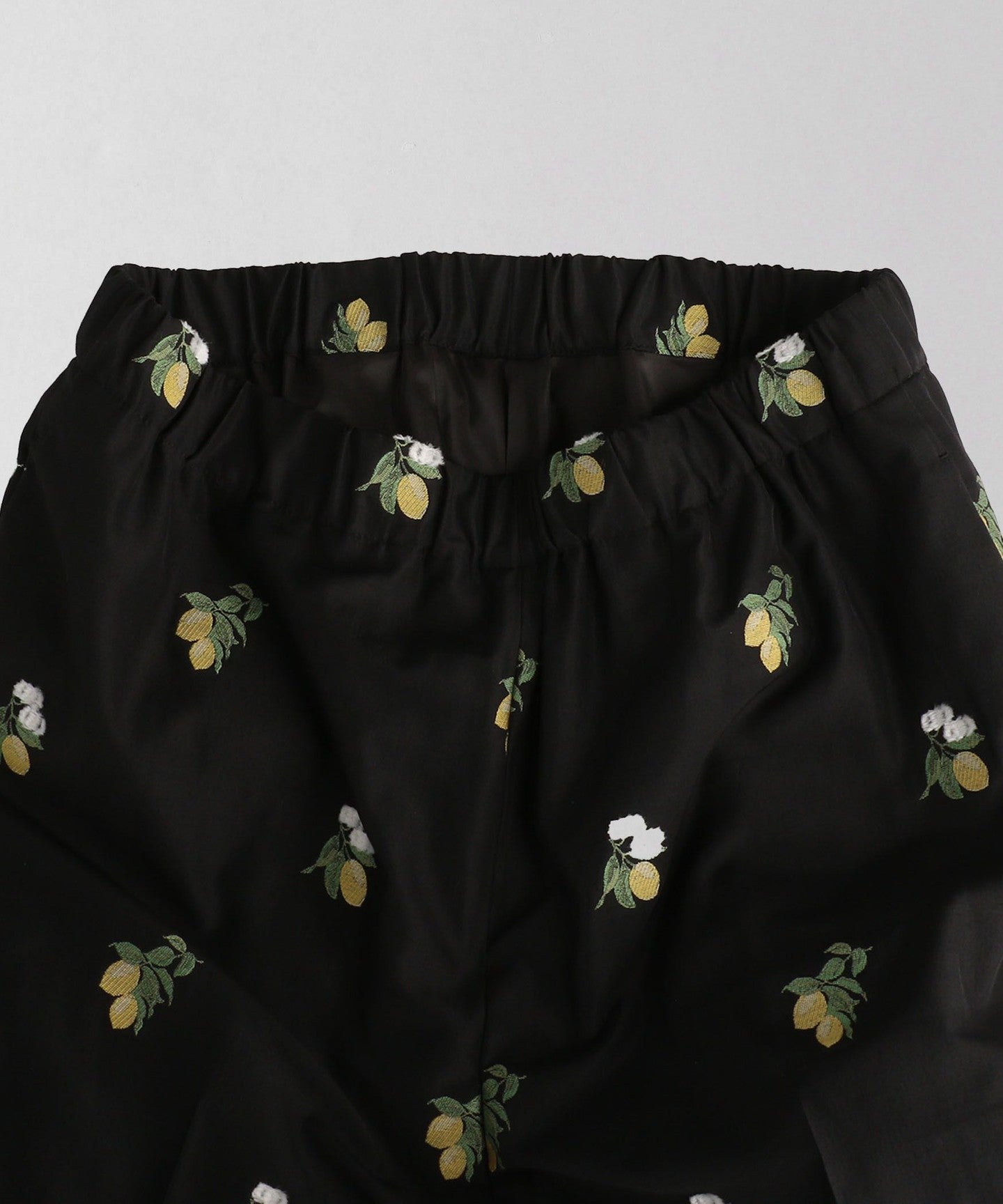 Lemon embroidery adds a touch of feminine cuteness to these pants.