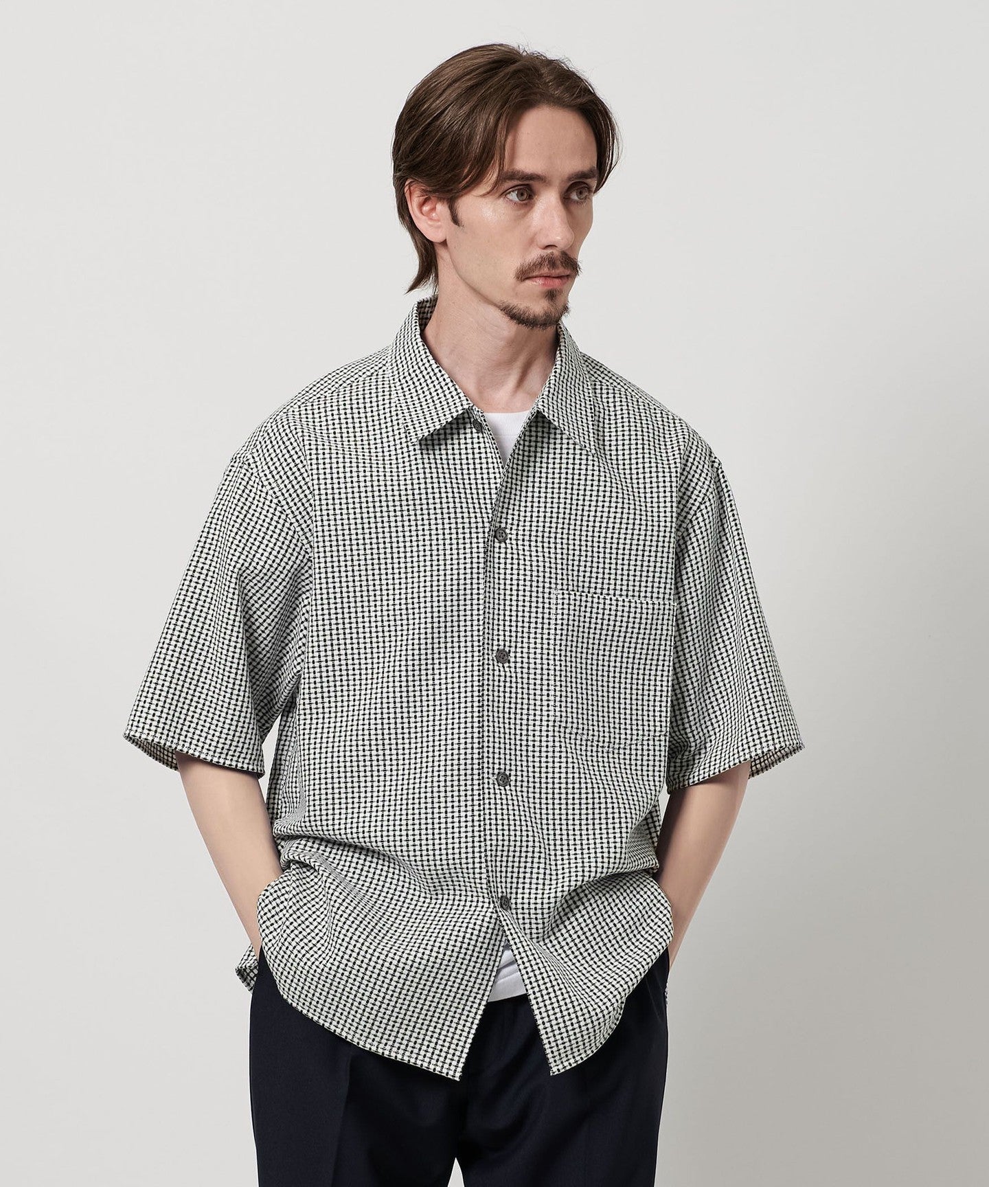 A regular collar short-sleeved shirt with a loose box silhouette.