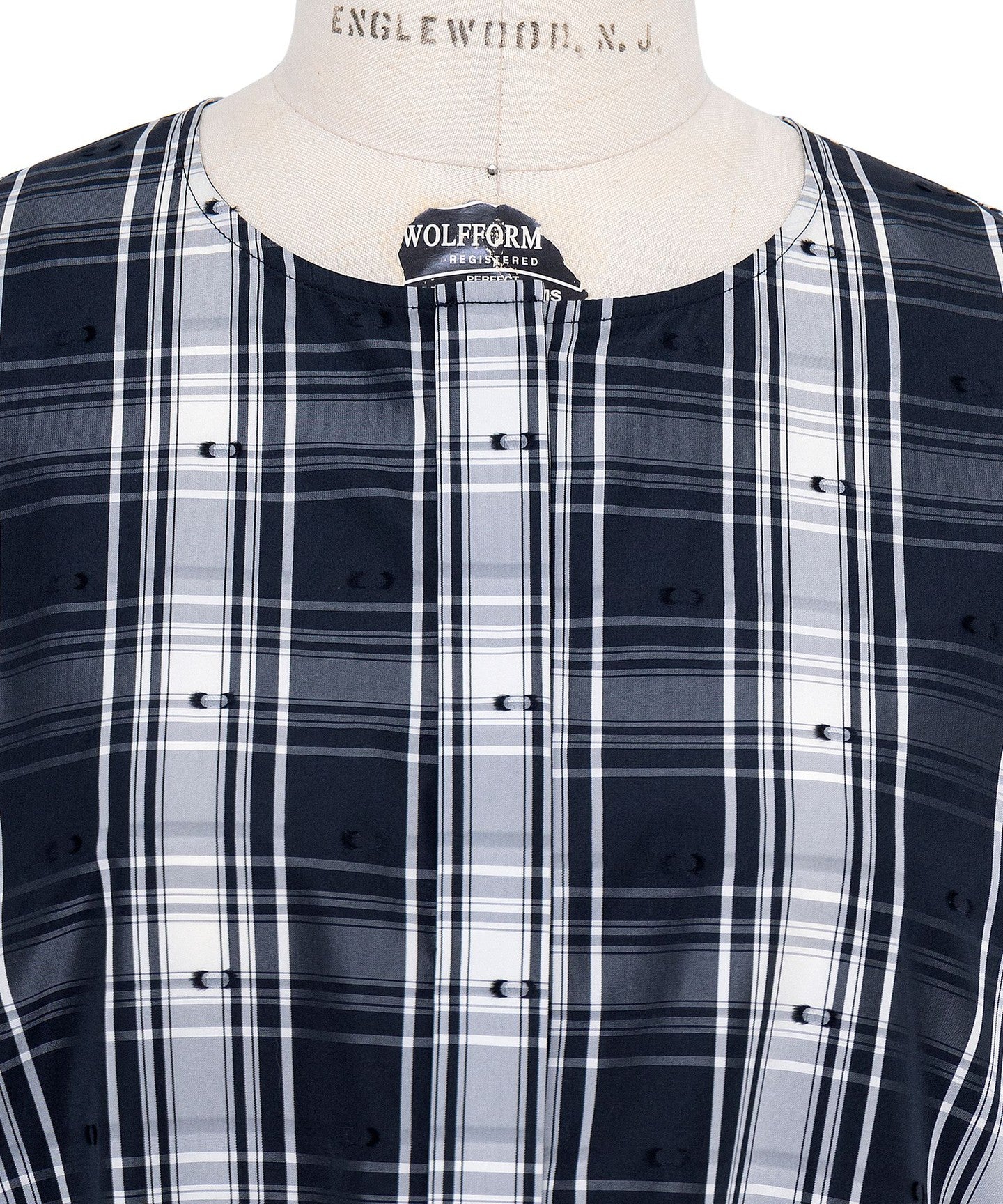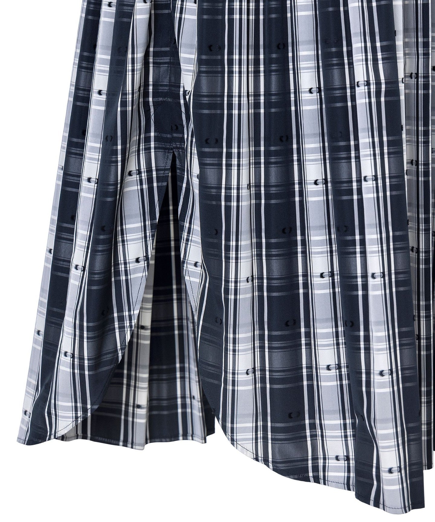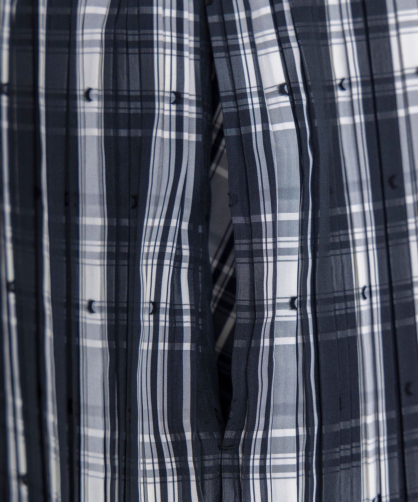 The skirt part of the bottom has random mixed pleats, giving it just the right amount of volume and a dynamic check pattern.