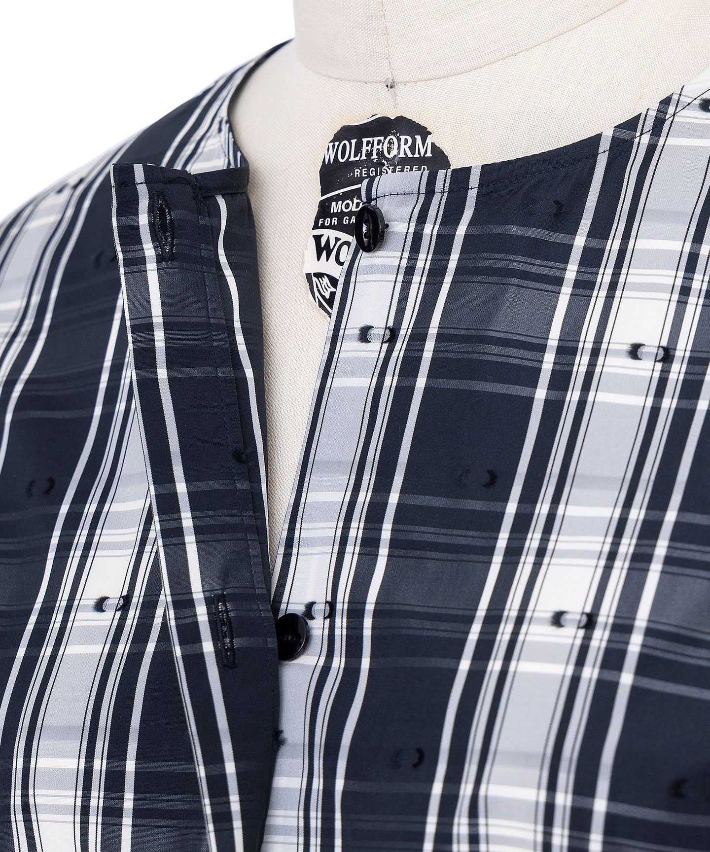 Made from taffeta material that is a mix of monochrome check pattern and cut dobby.