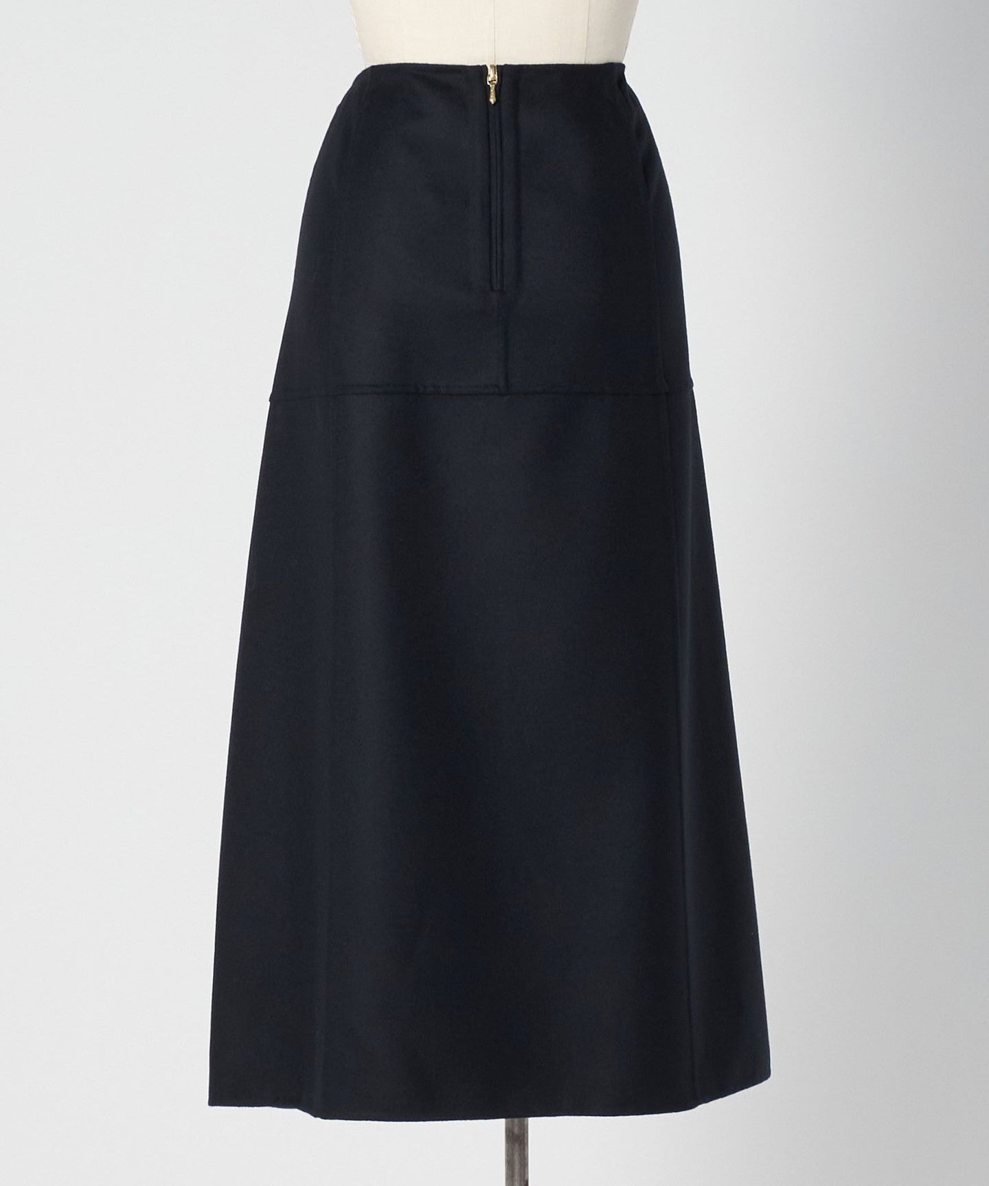 切替えデザインが立体感を生み出しながらも、ややAラインのシルエットですっきりとした印象に仕上げたスカート。