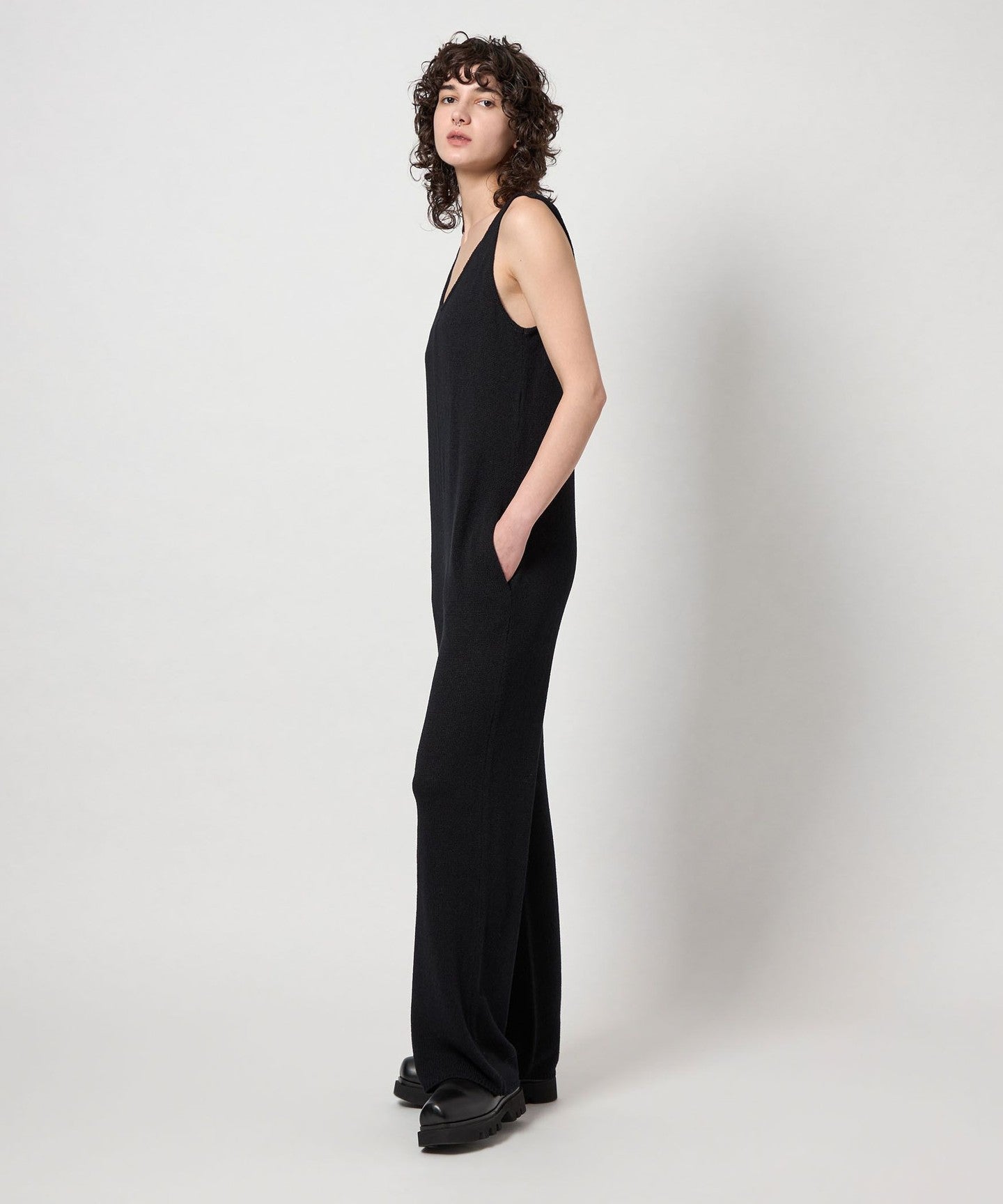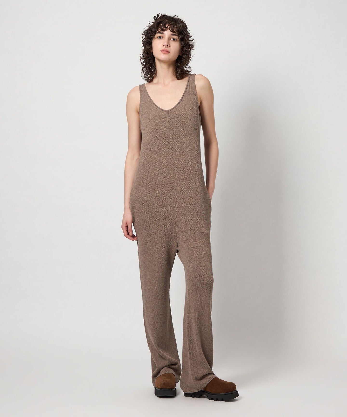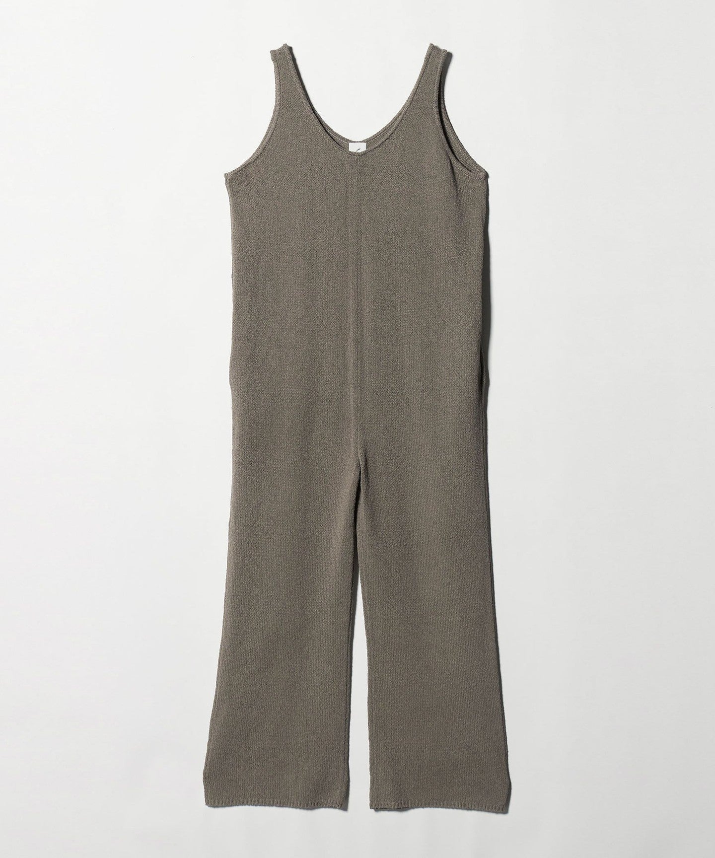 This knit all-in-one is made from cotton-nylon blend boucle yarn that has been processed with lily yarn, giving it a smooth touch and texture.