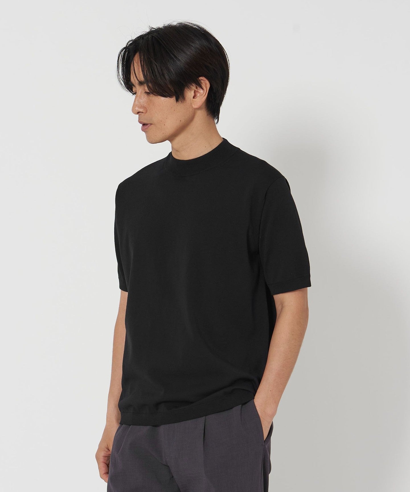 This is a simple and basic knit with a mock neck collar that is not affected by trends.