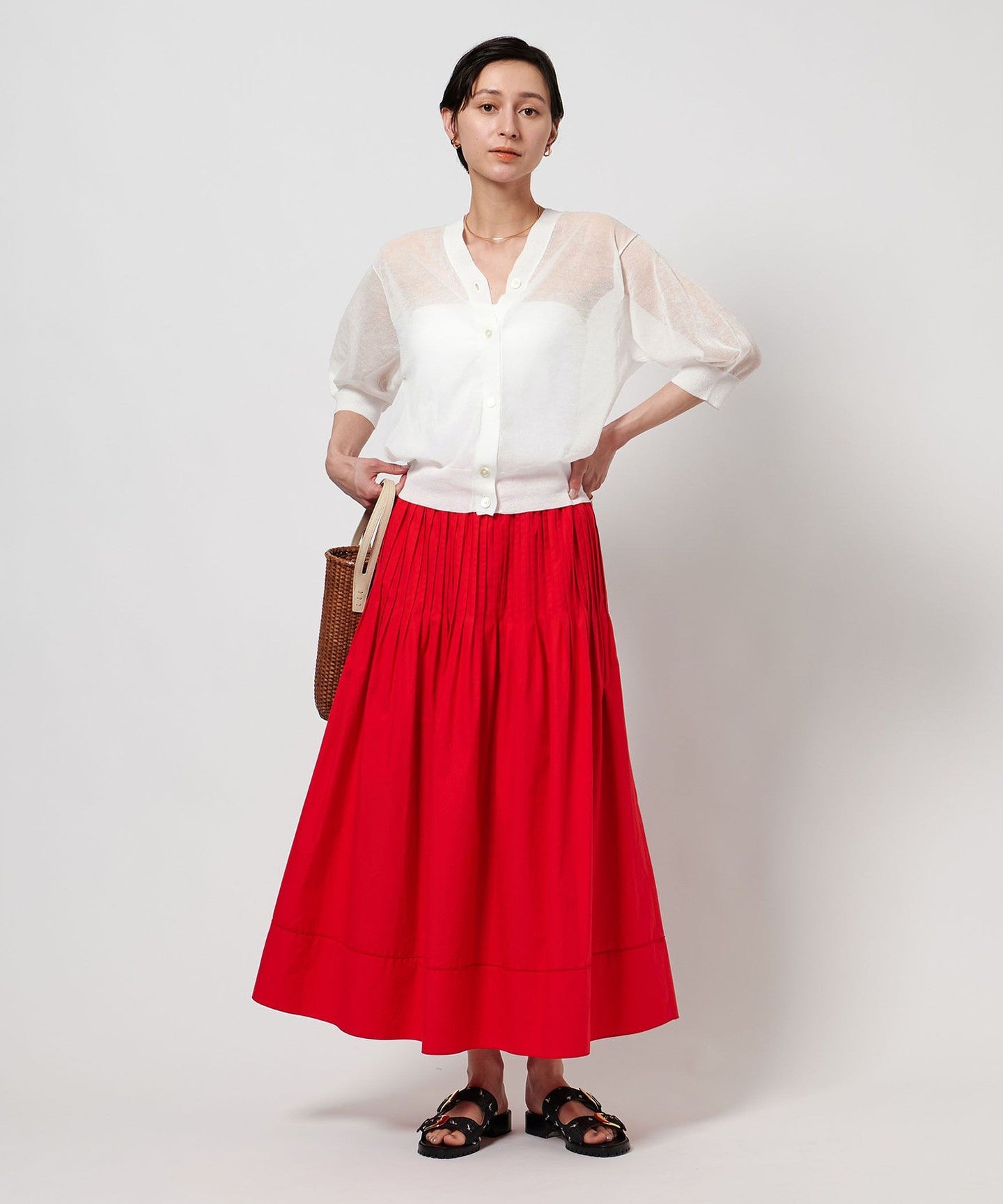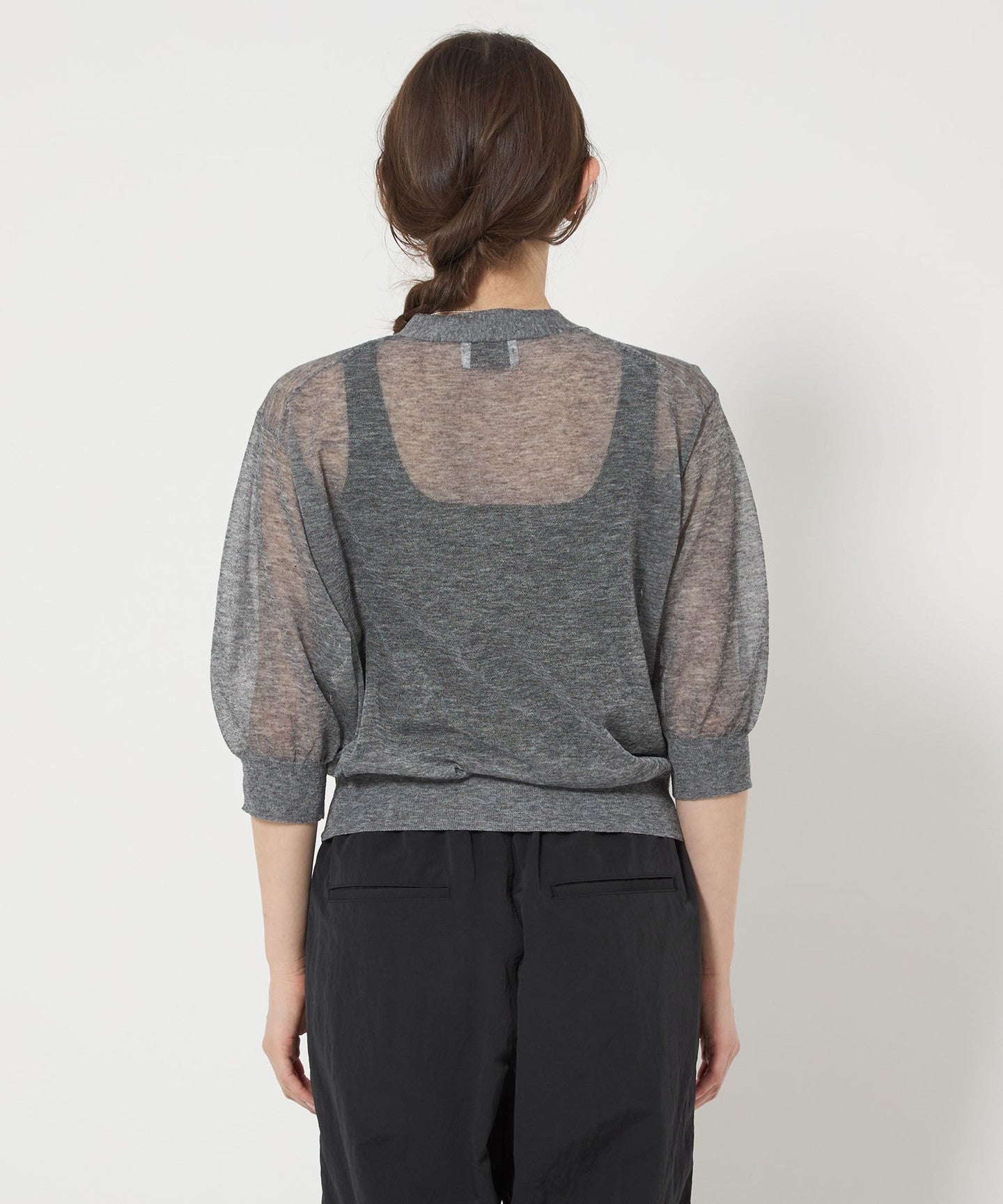 Made from thin linen-blend yarn, it has a sheer, refreshing touch.