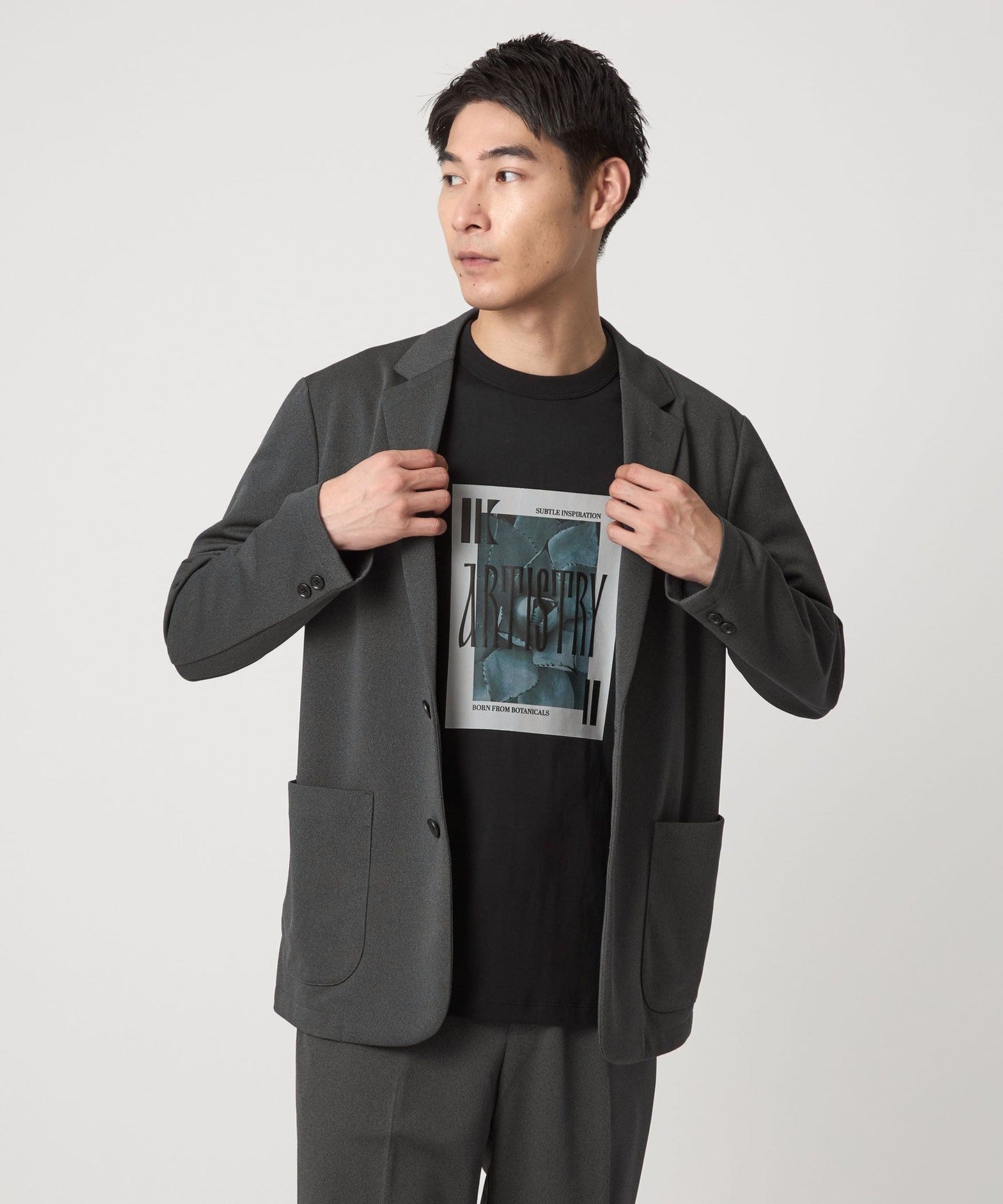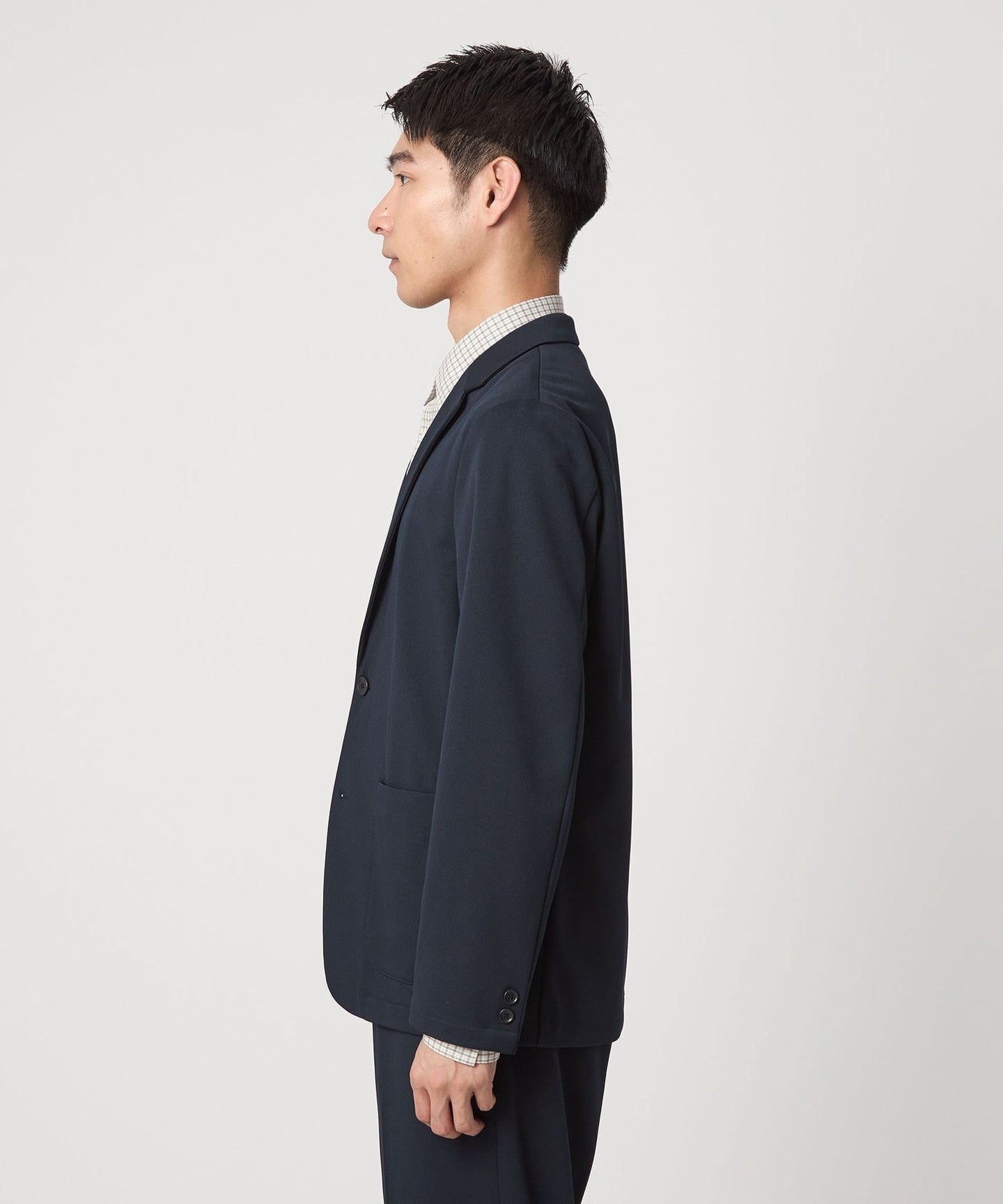 Although it has a casual feel with its loose silhouette and patch pockets, the shoulders are not dropped, giving it a not-too-rough impression, making it suitable for both work and play.