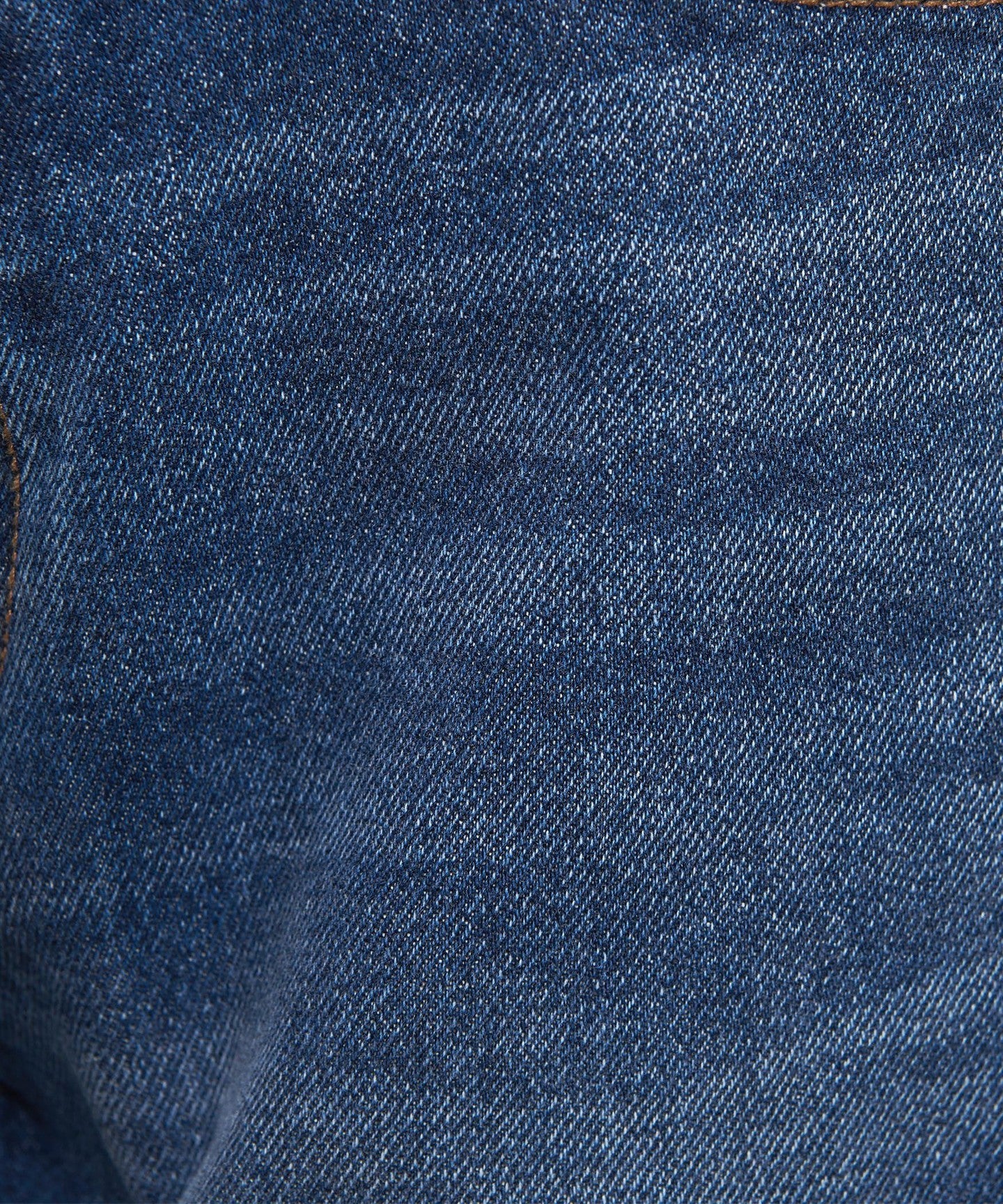 Cotton 100% denim FABRIC The fabric is made with faded leather to create a three-dimensional effect when worn, further accentuating the silhouette.