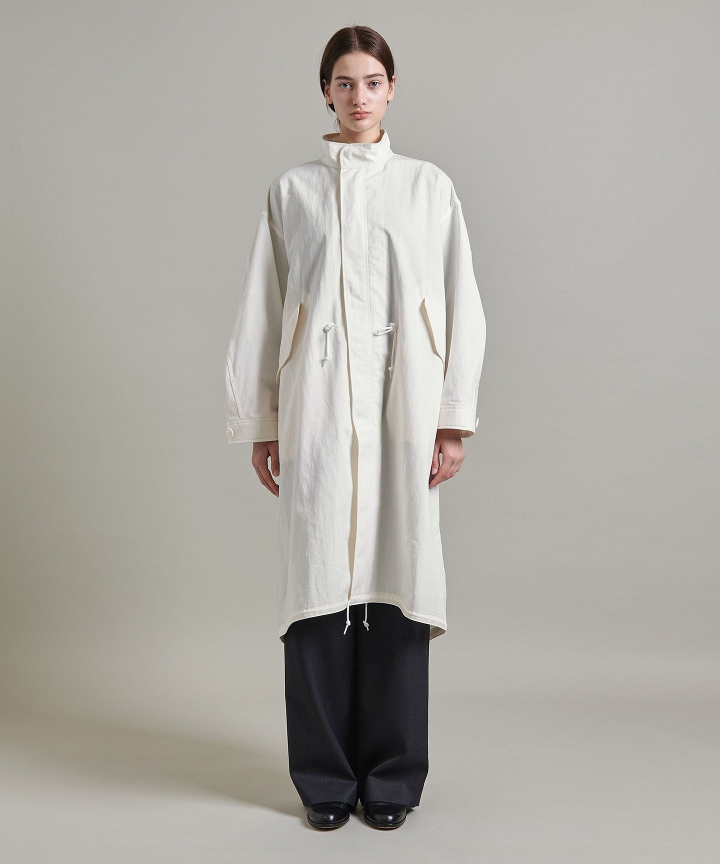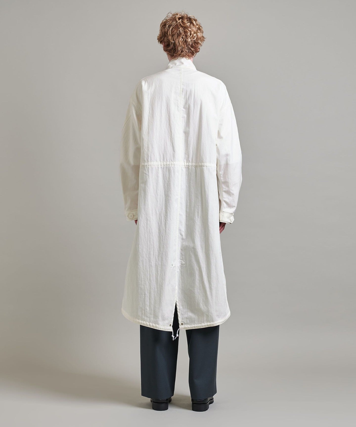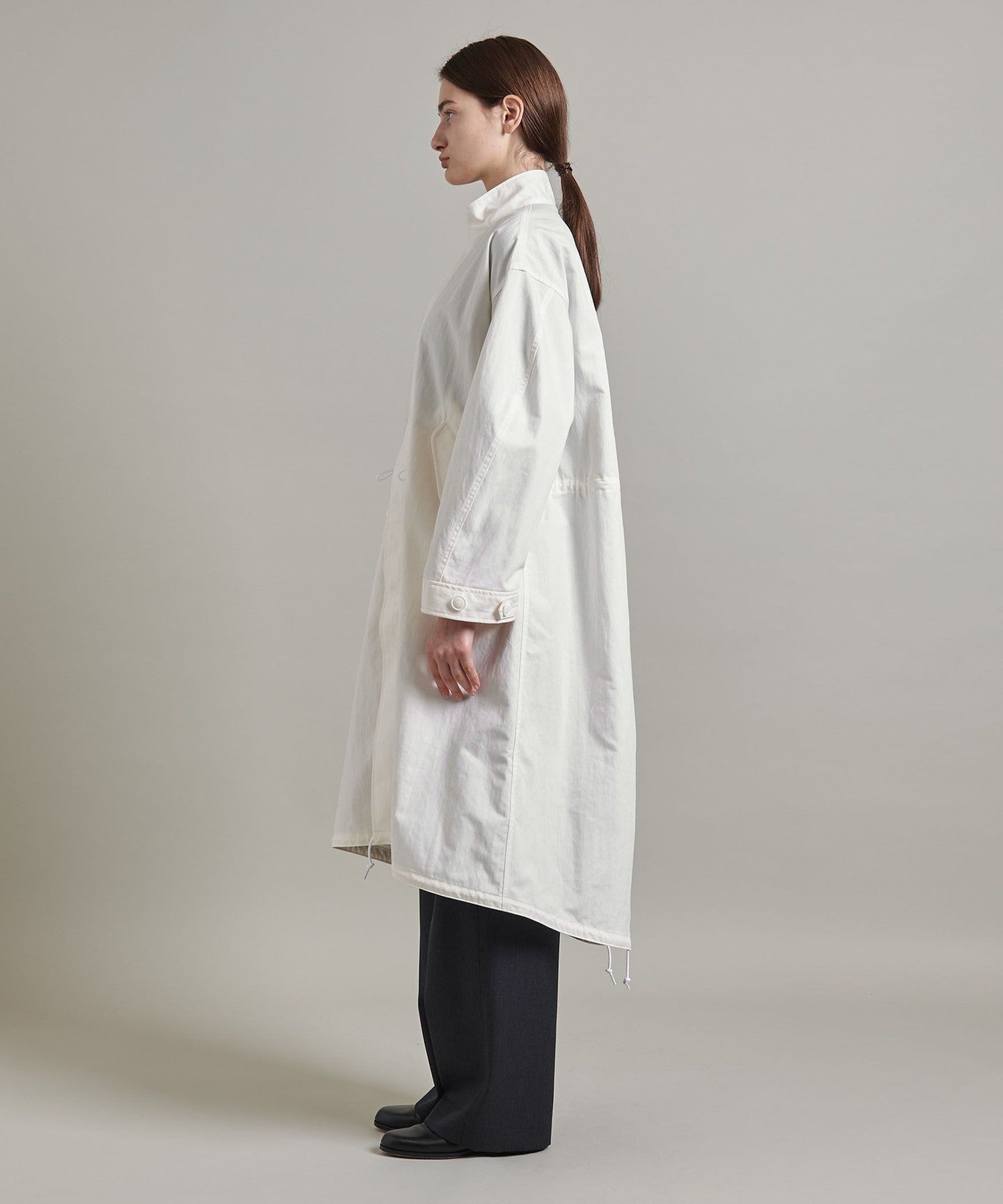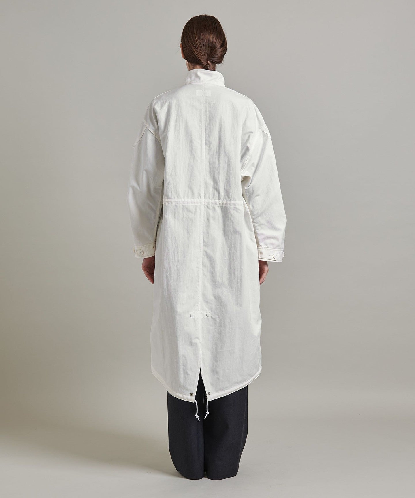 You can enjoy changing the silhouette by tightening the cords at the waist and hem, or adjusting the buttons on the cuffs.