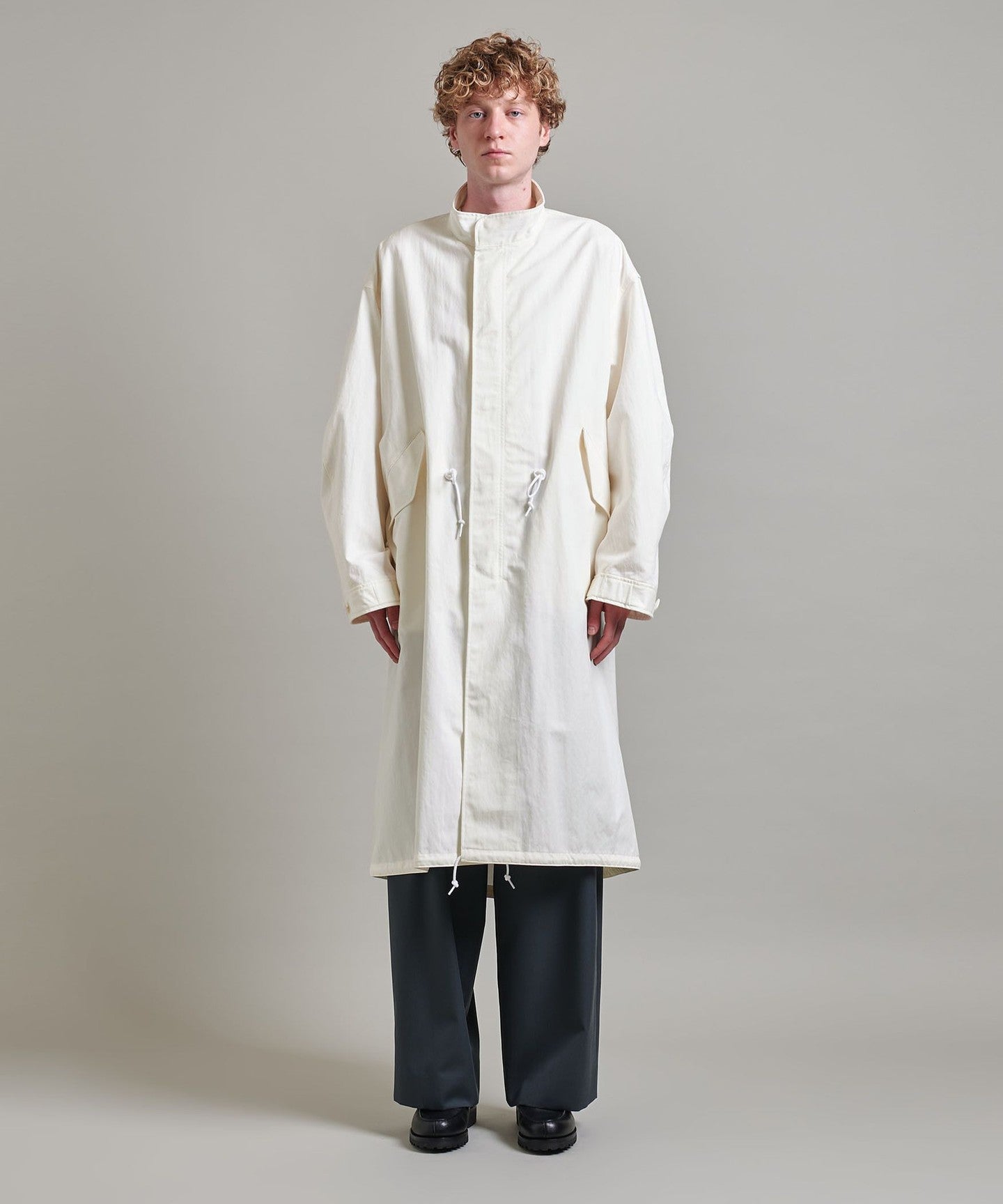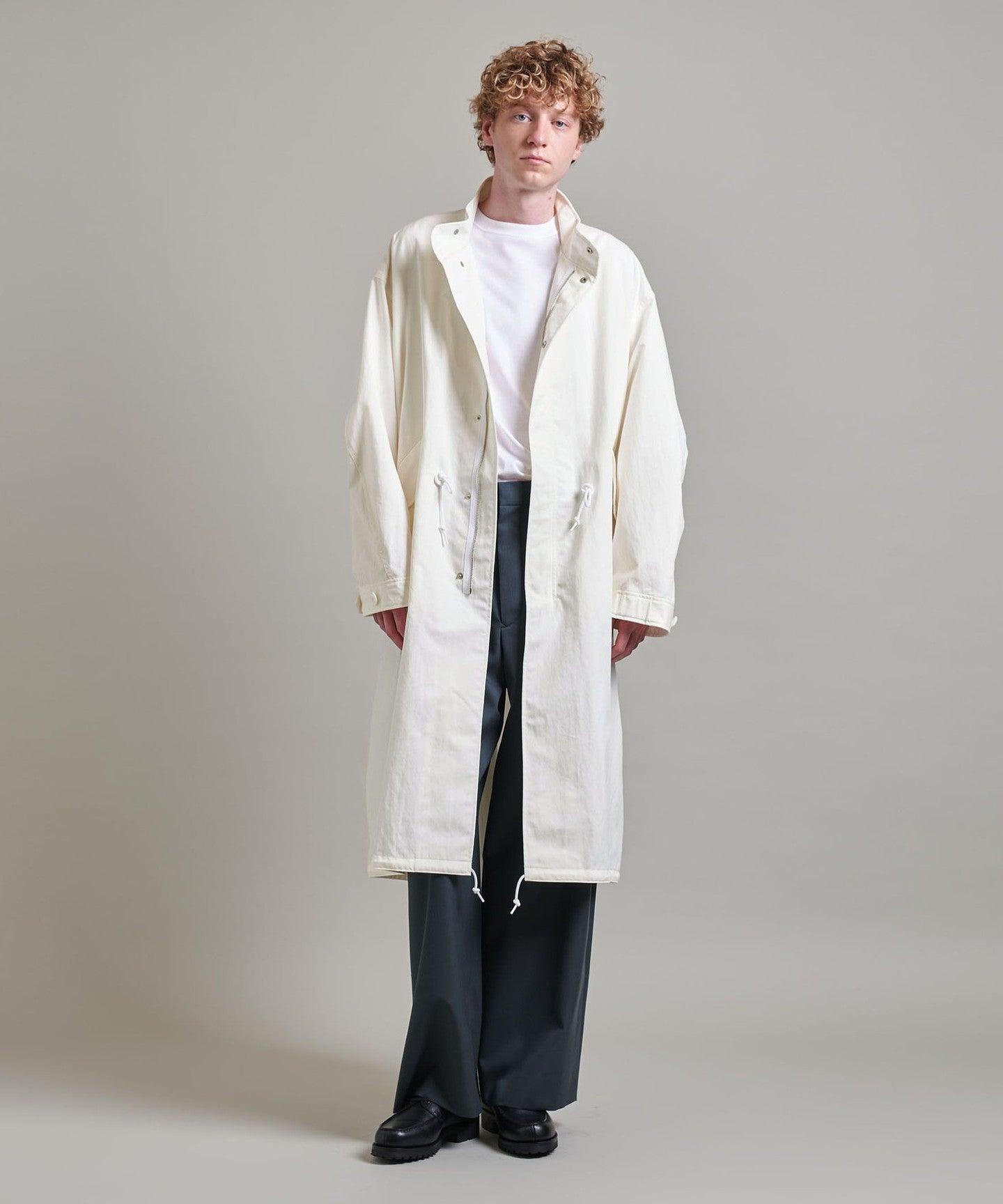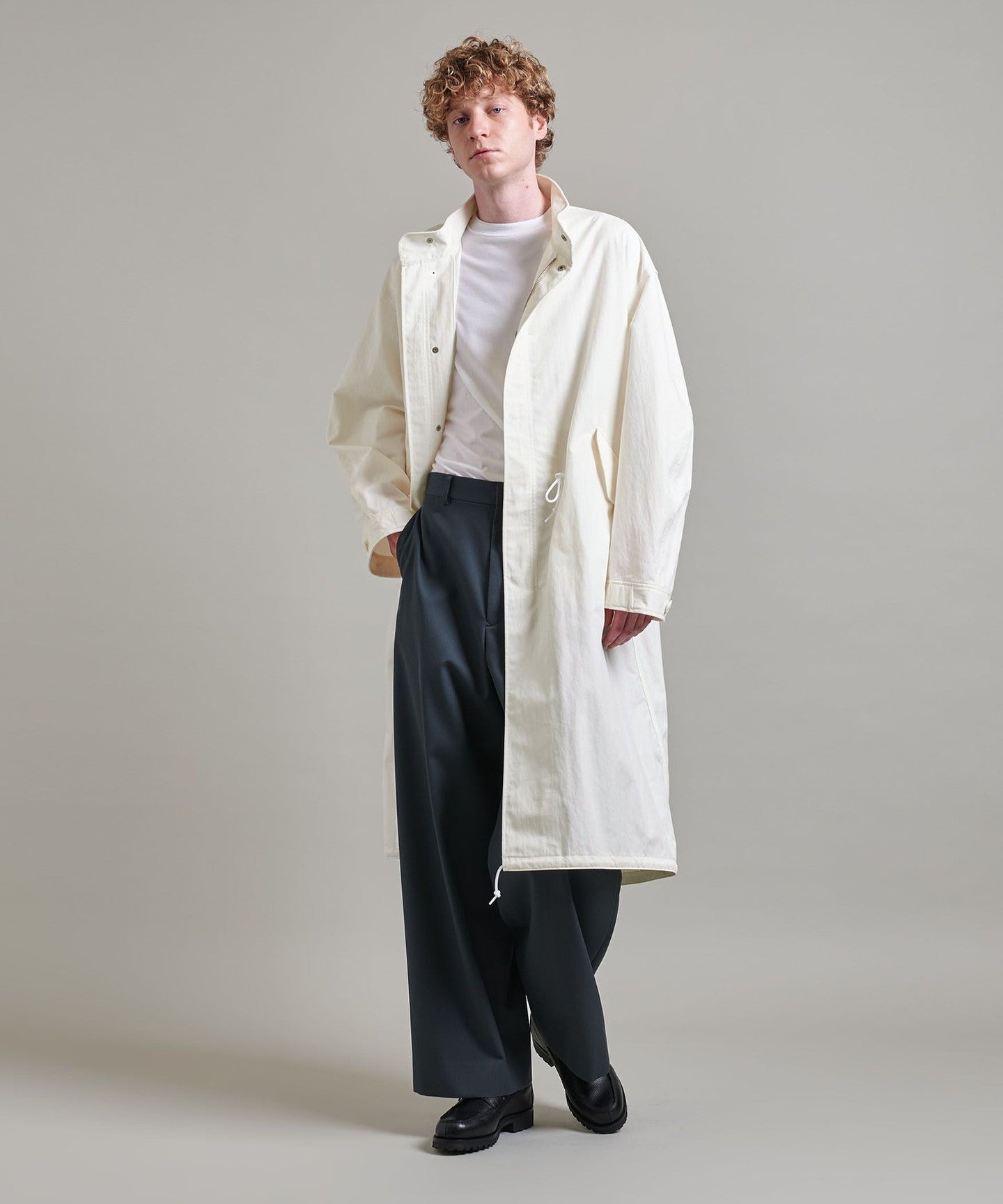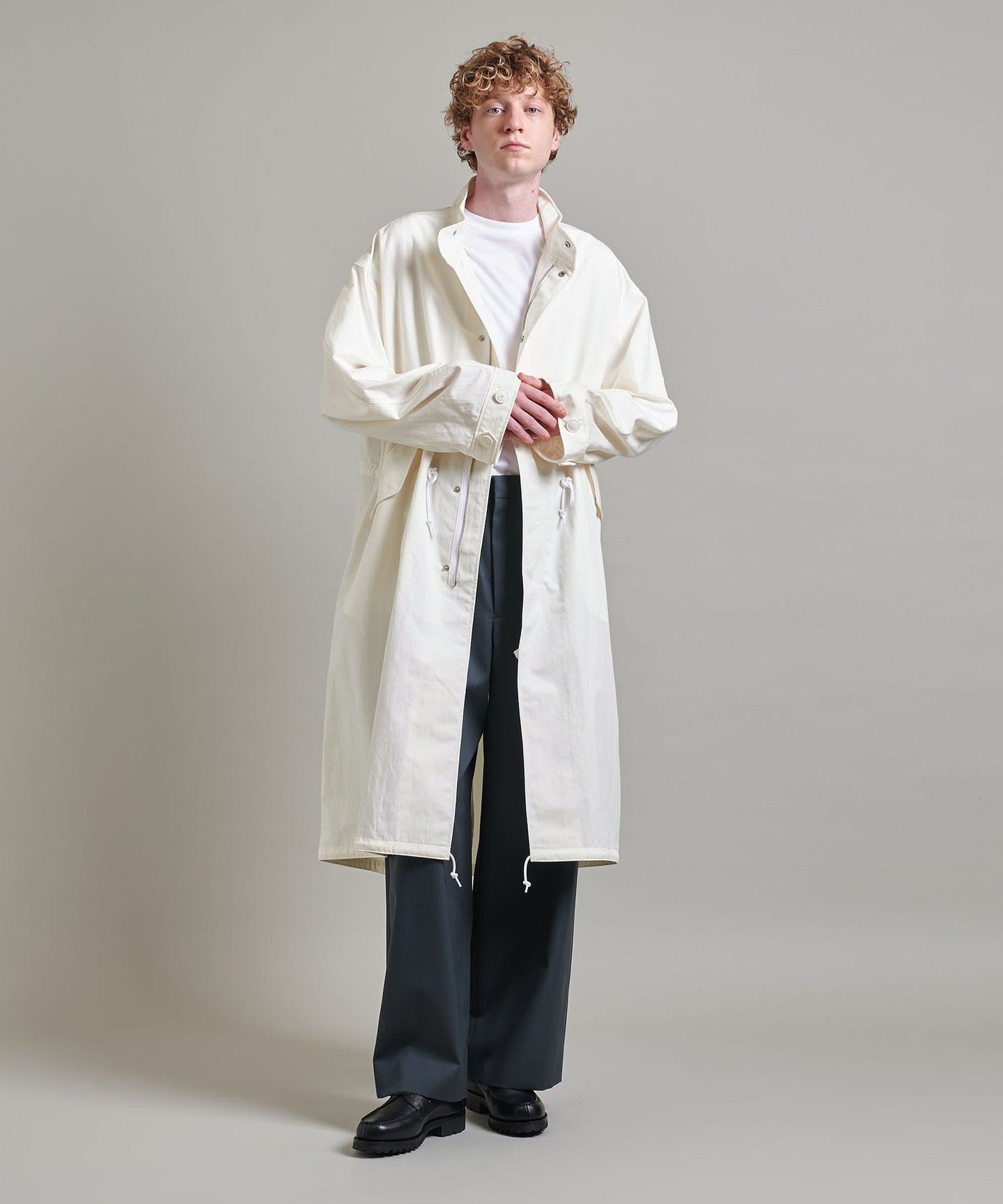 You can enjoy changing the silhouette by tightening the cords at the waist and hem, or adjusting the buttons on the cuffs.