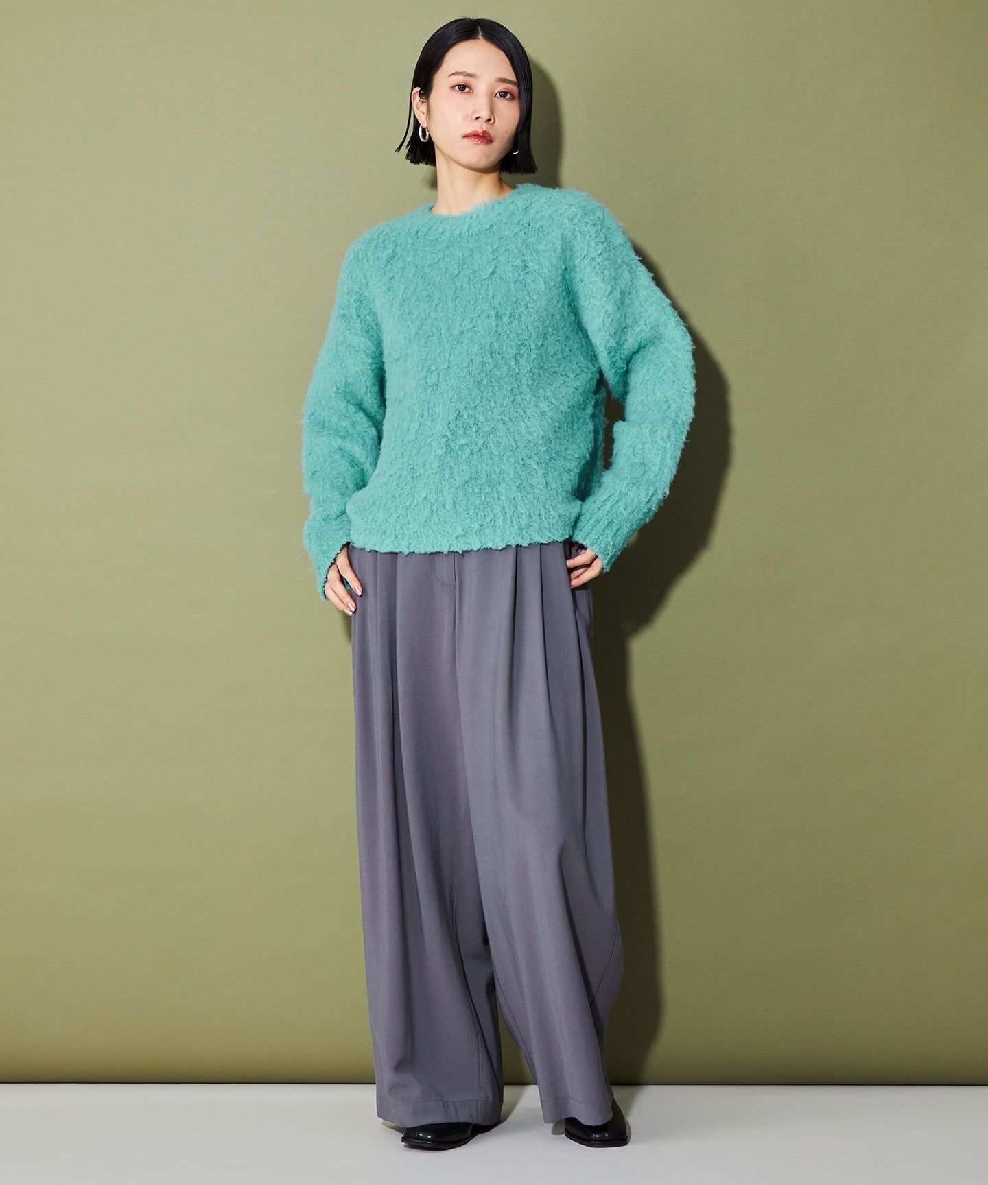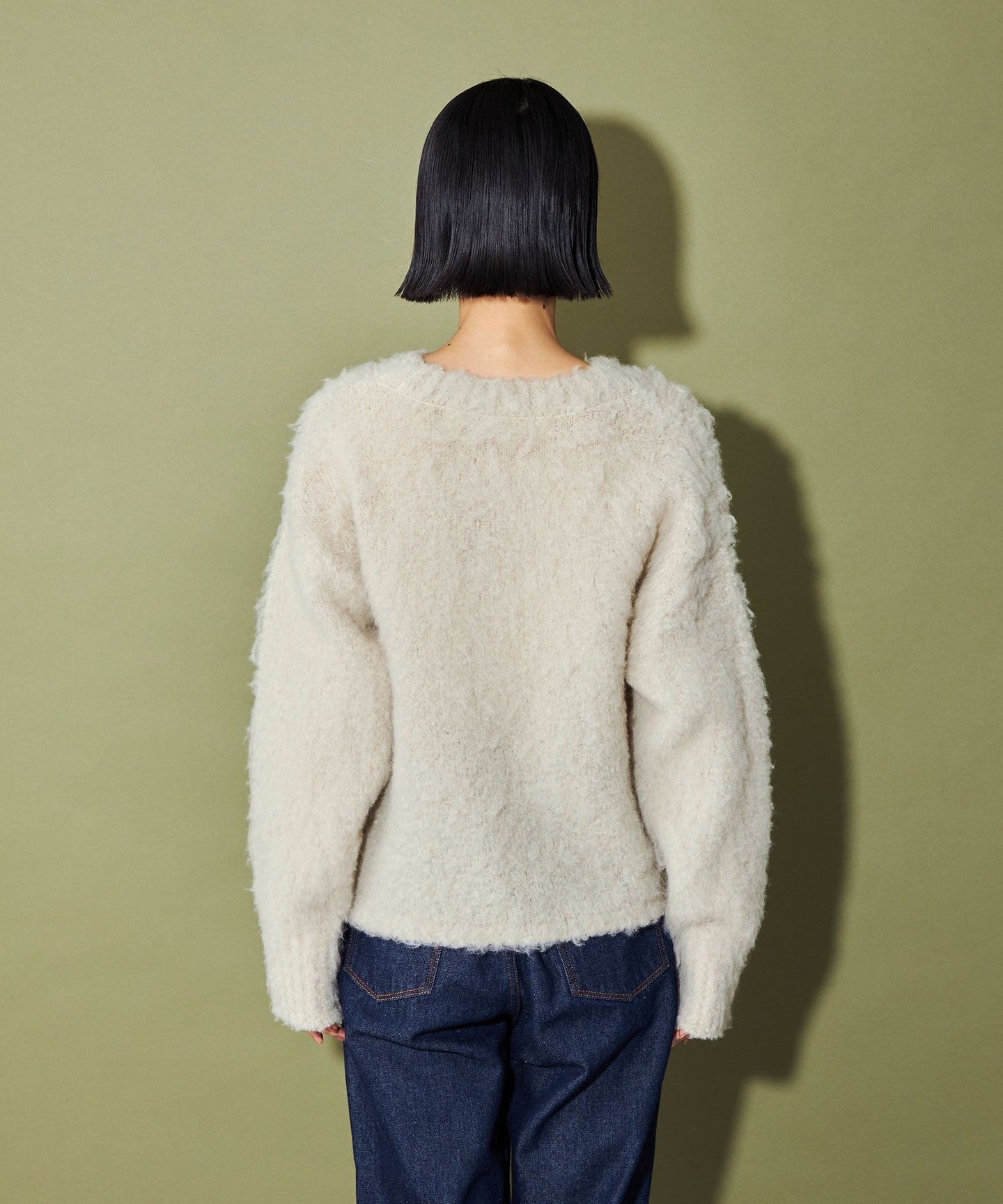The voluminous and soft texture accentuates warmth and three-dimensionality, adding an accent to your winter style.