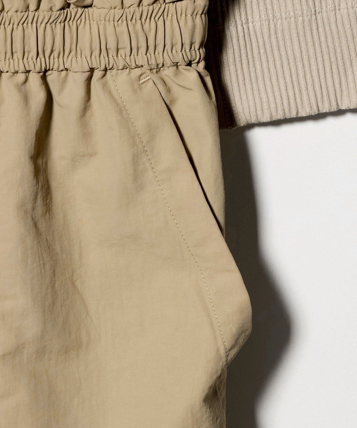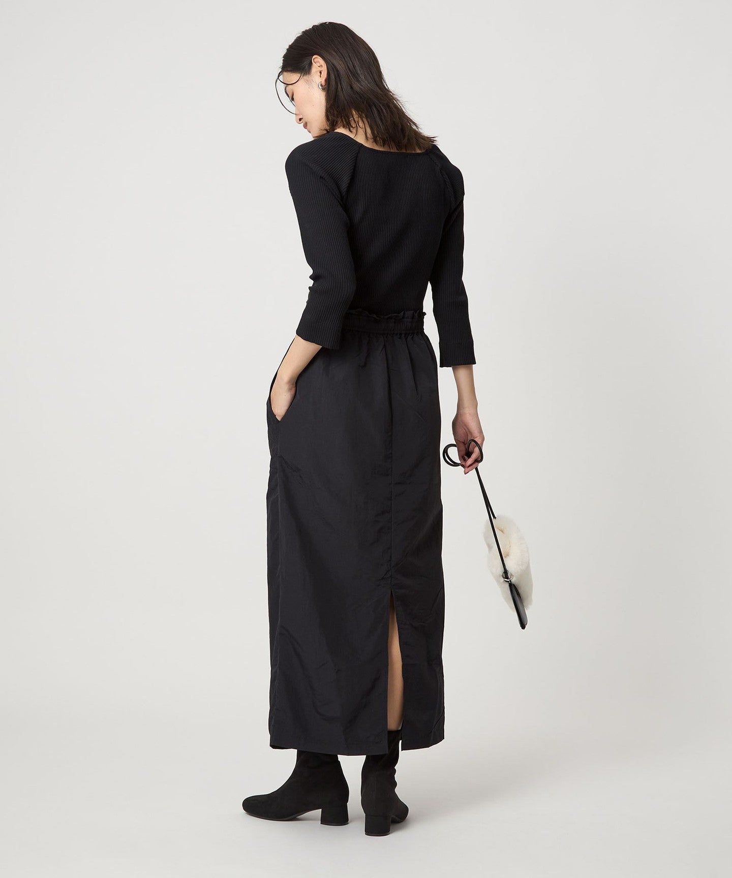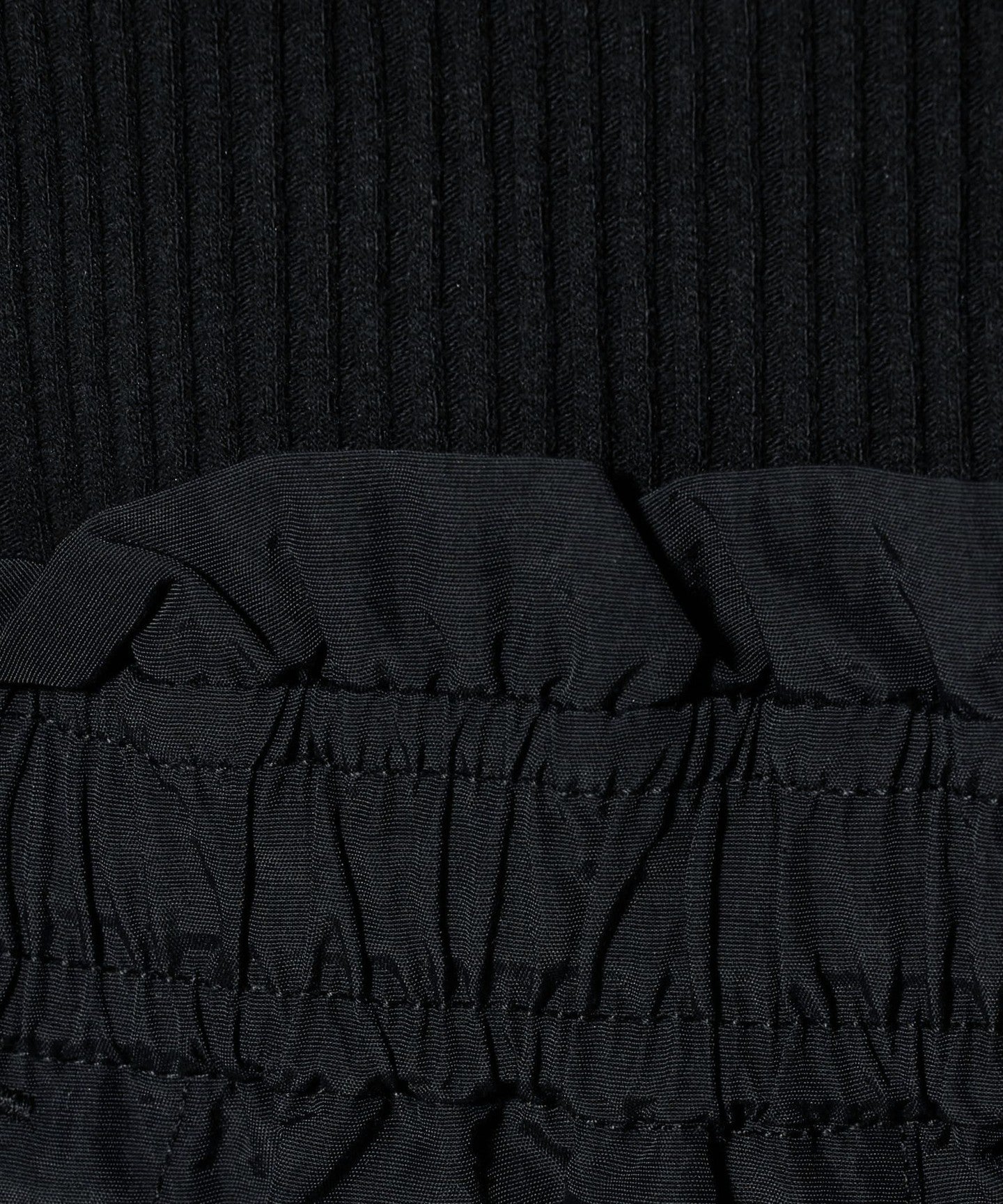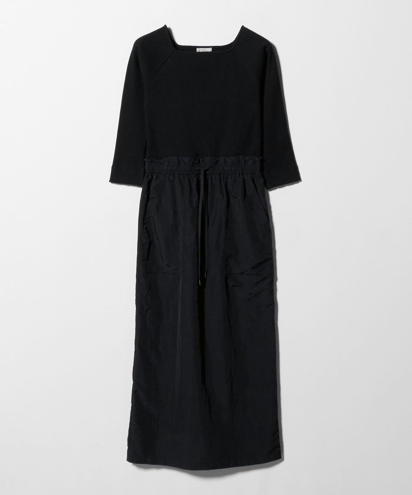 This piece has a fresh look with its combination of different materials and gathered waist design.