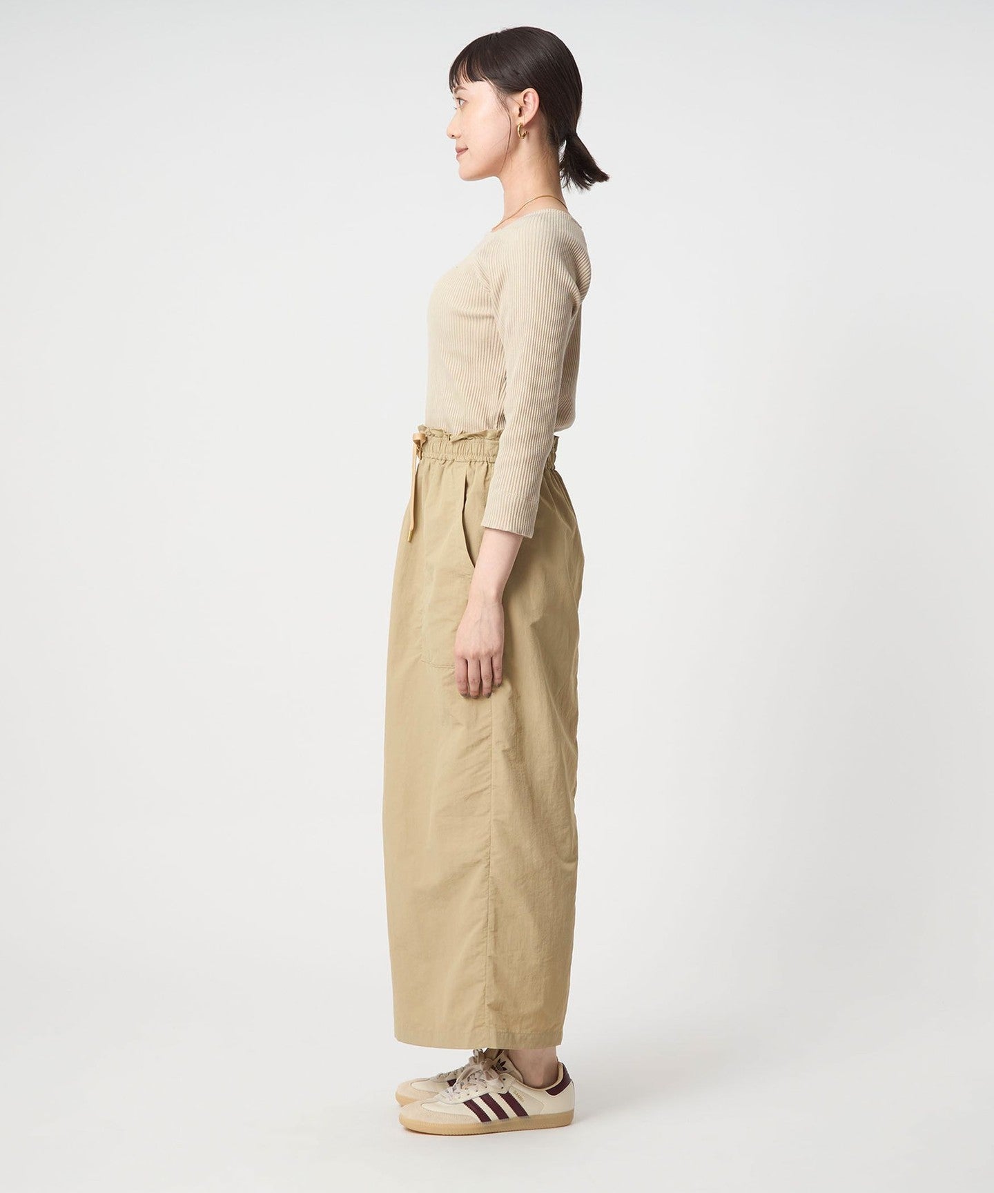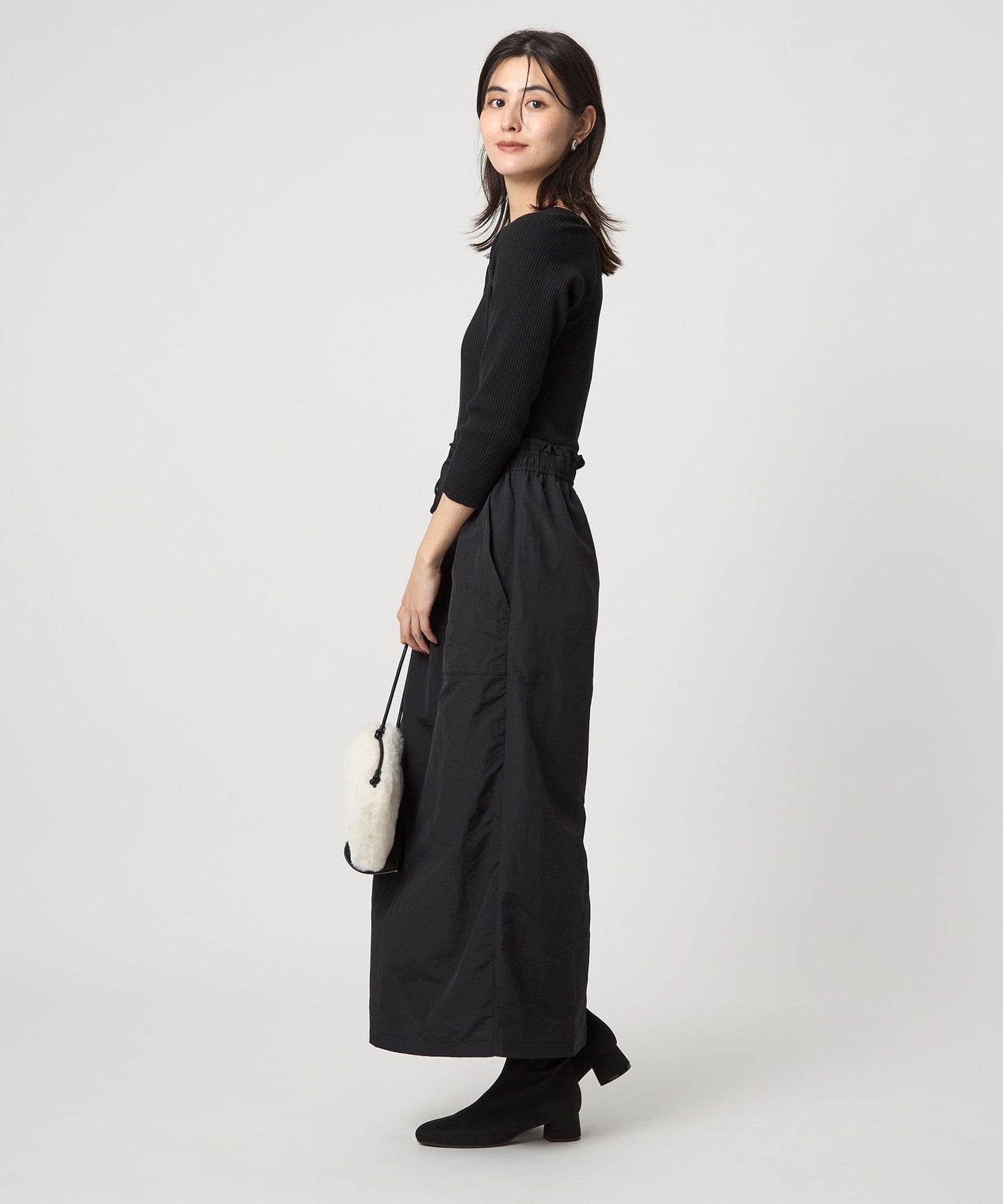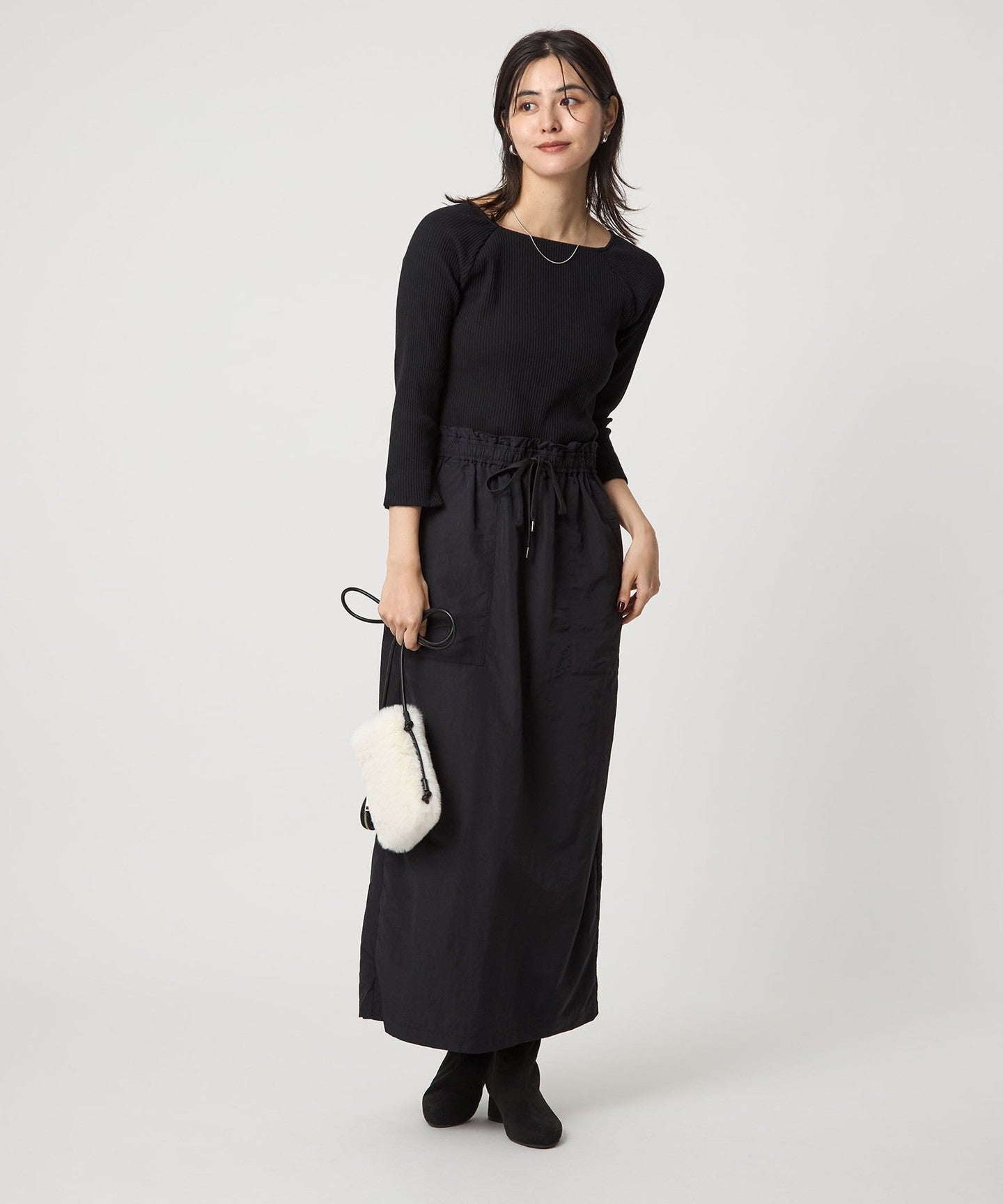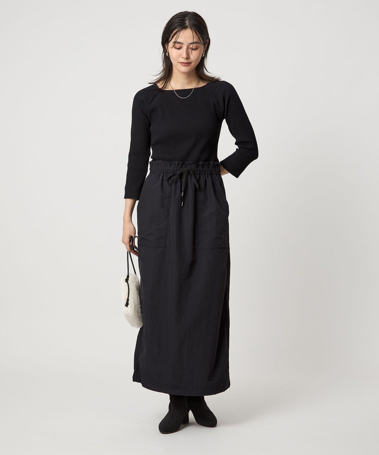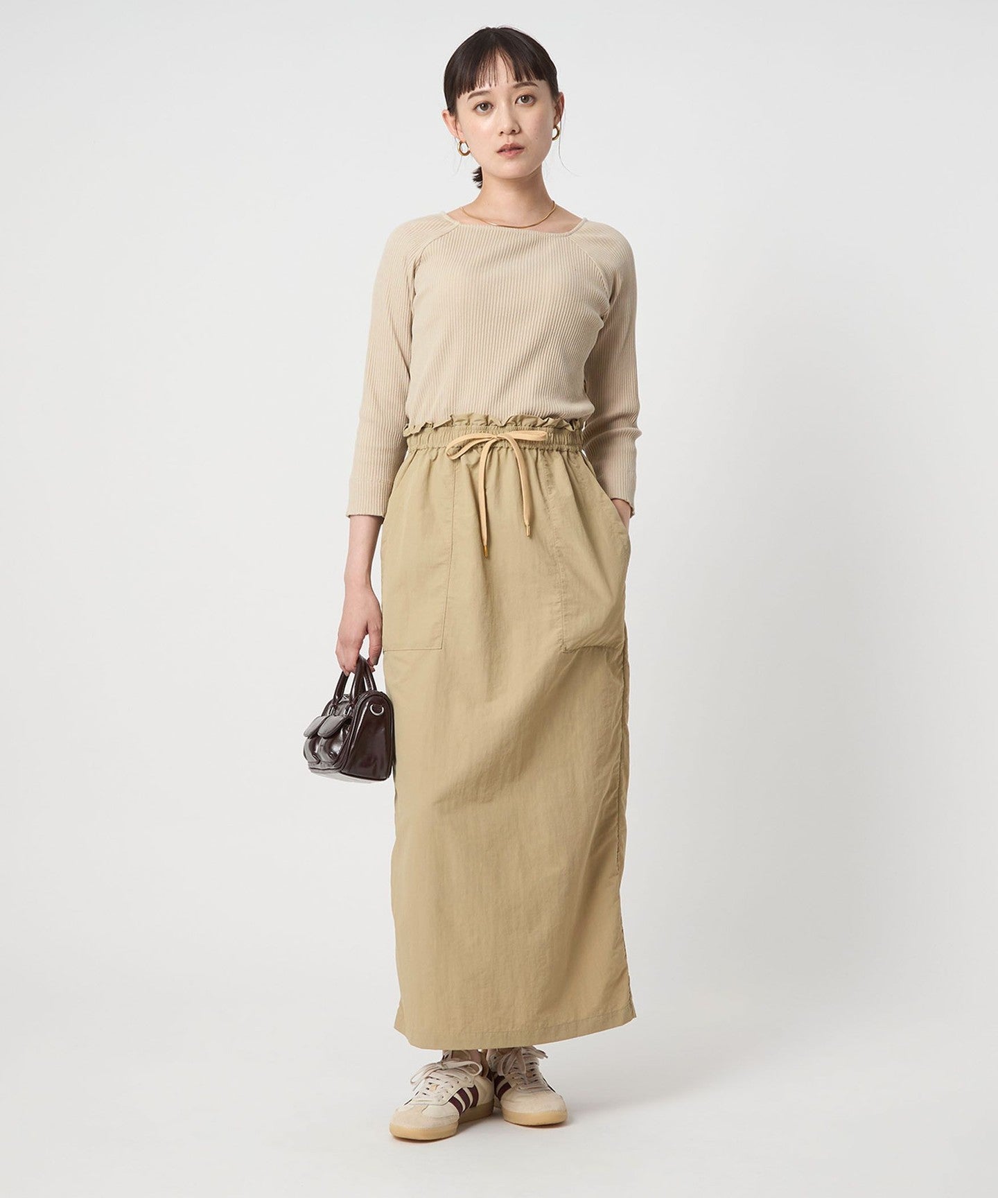 This piece has a fresh look with its combination of different materials and gathered waist design.