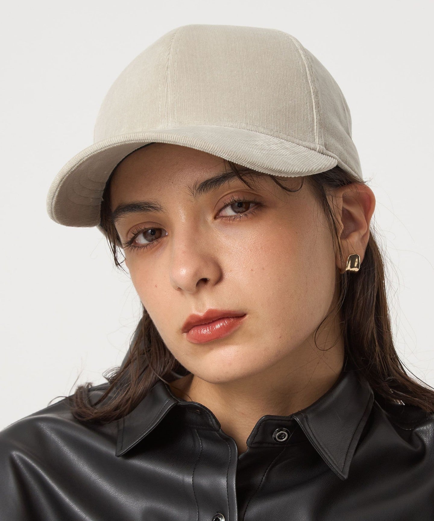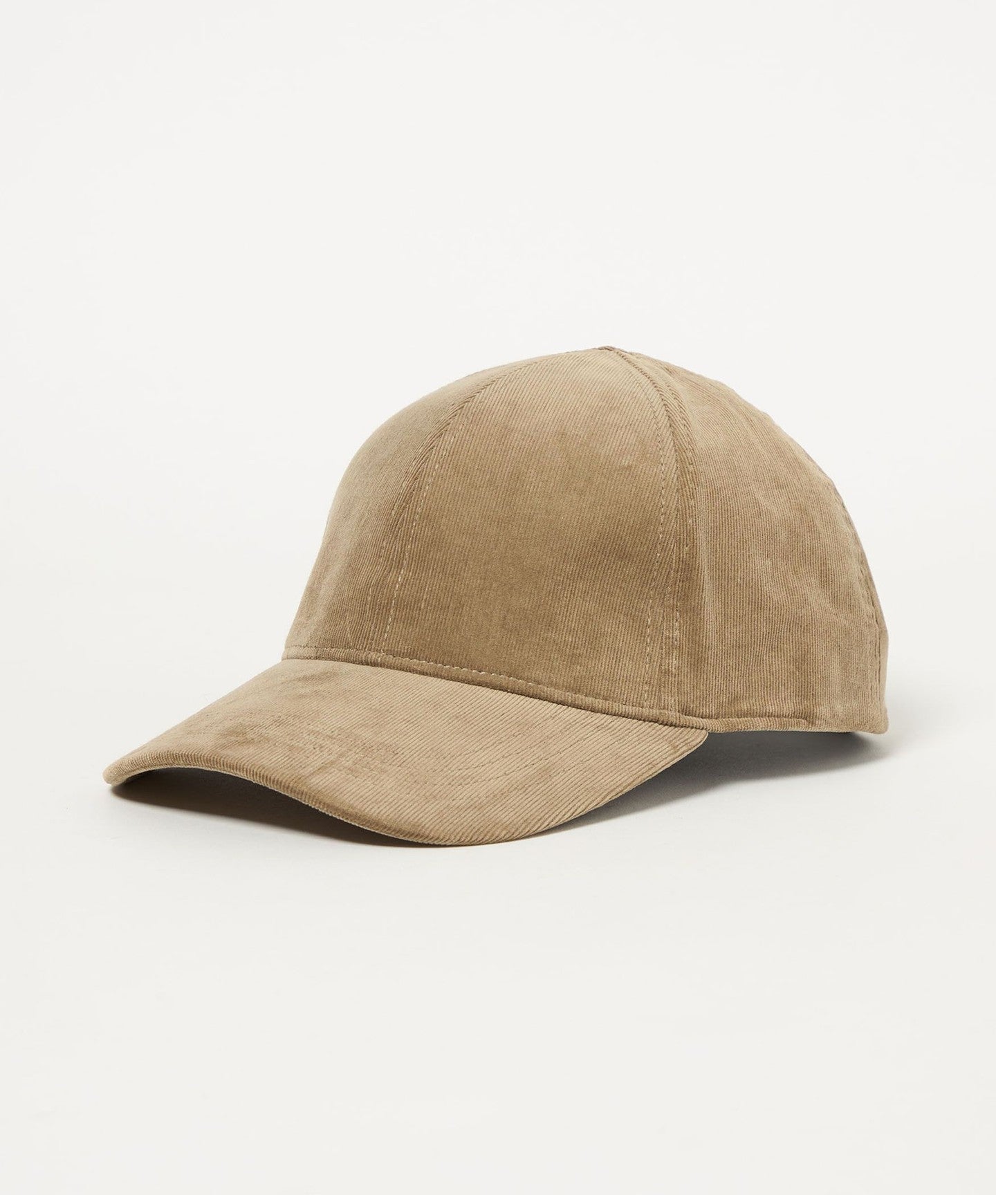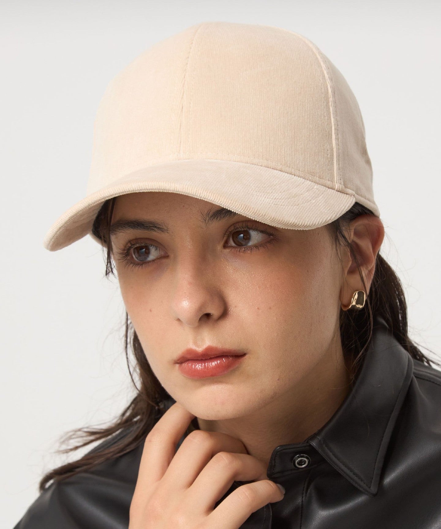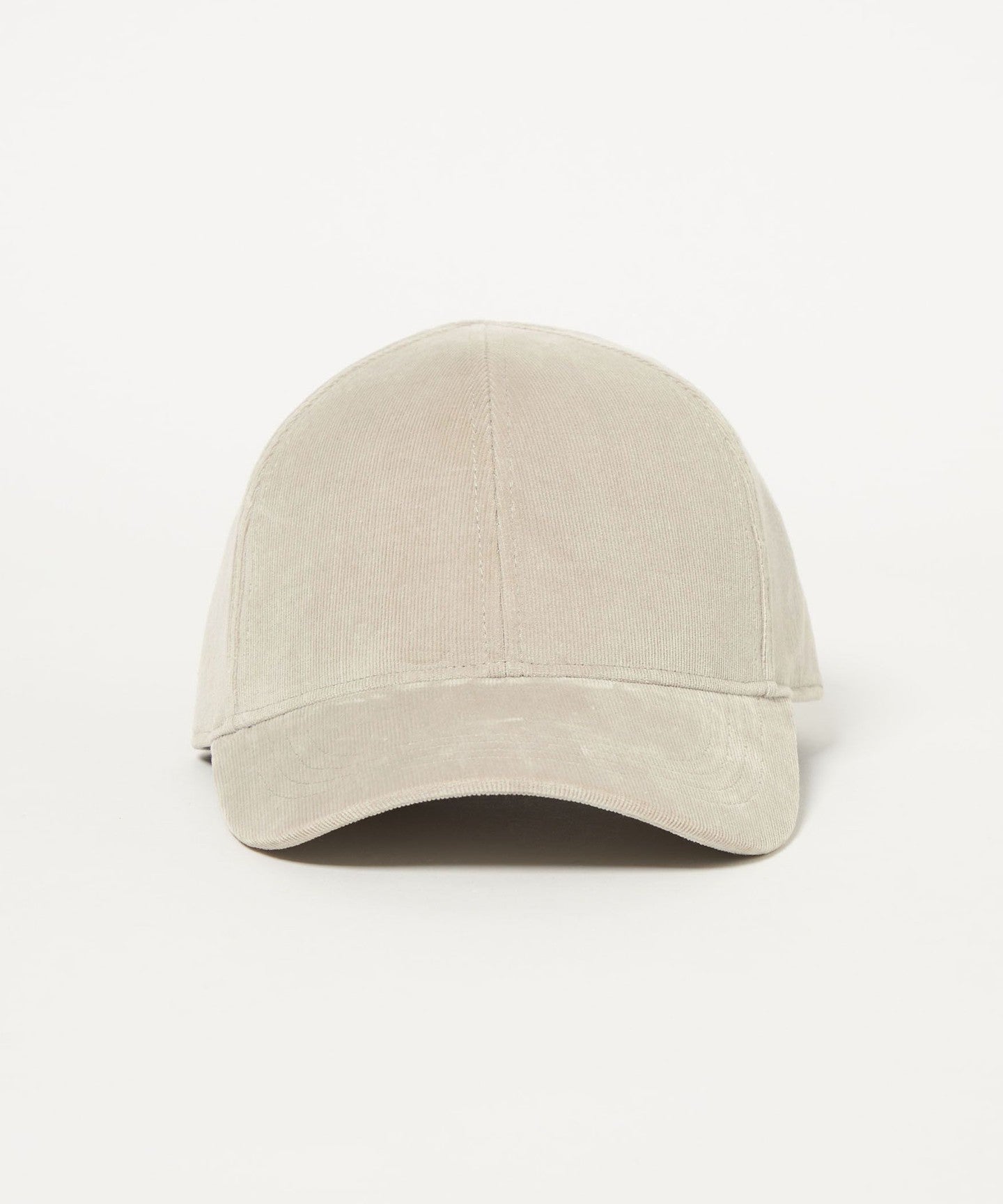 A cap made from finely ribbed corduroy fabric with a moderate sheen.