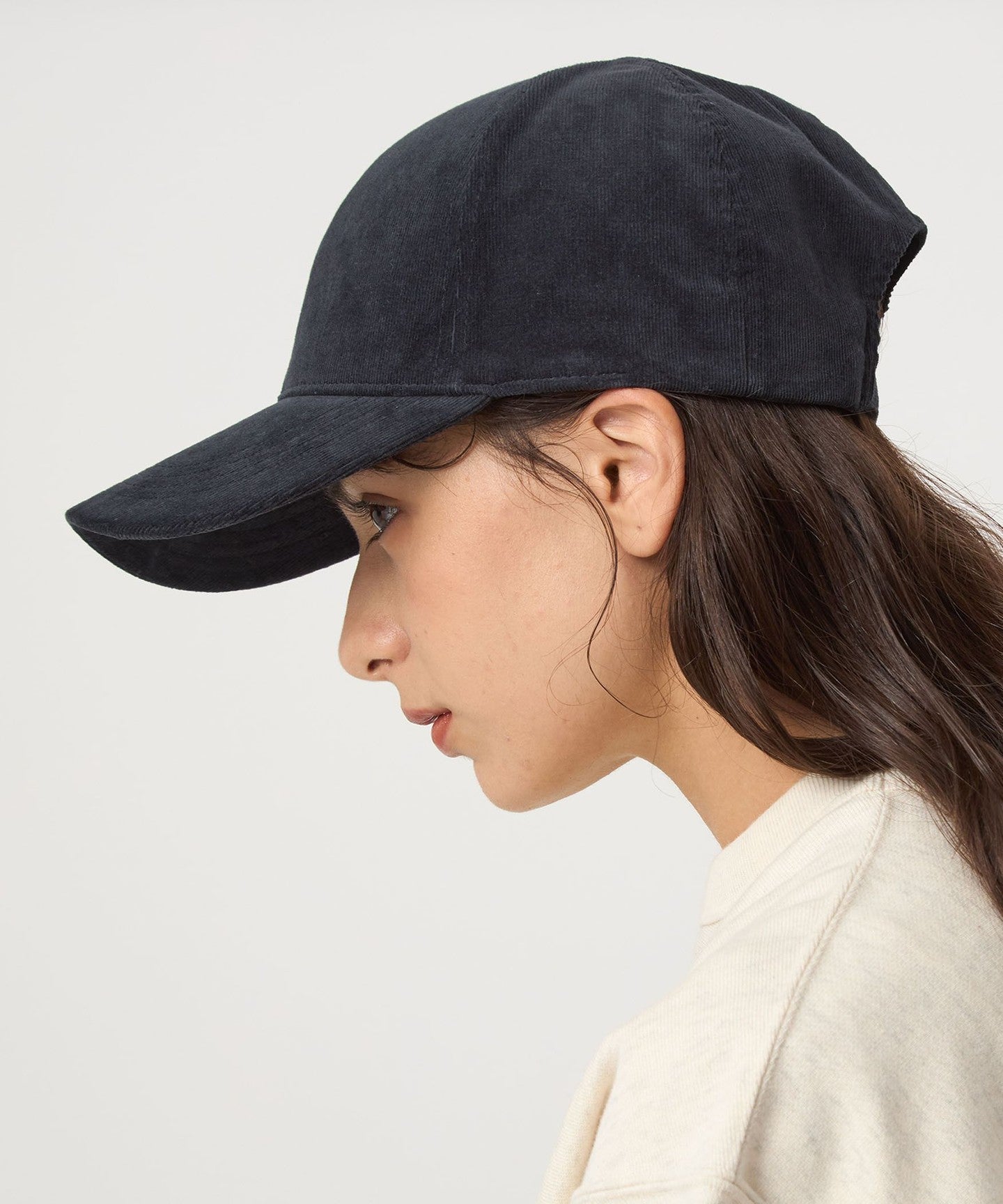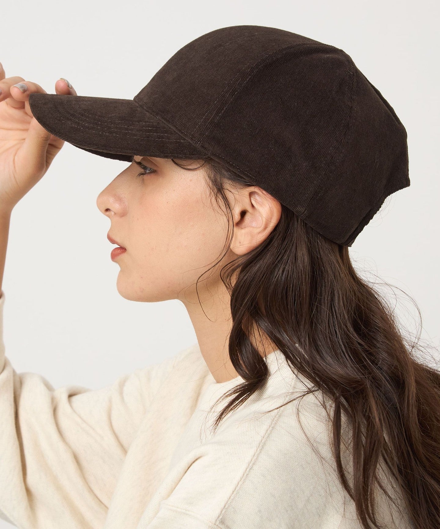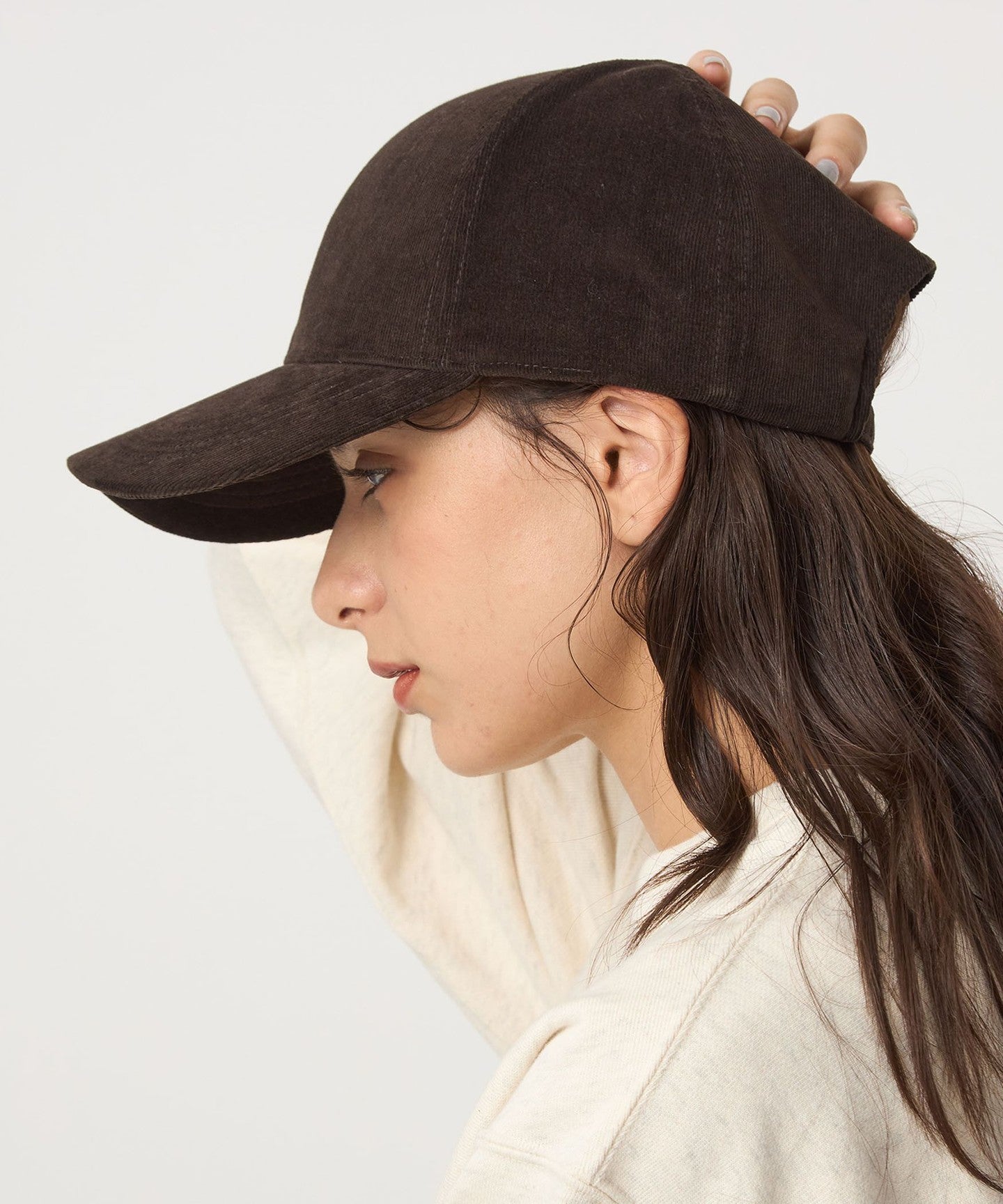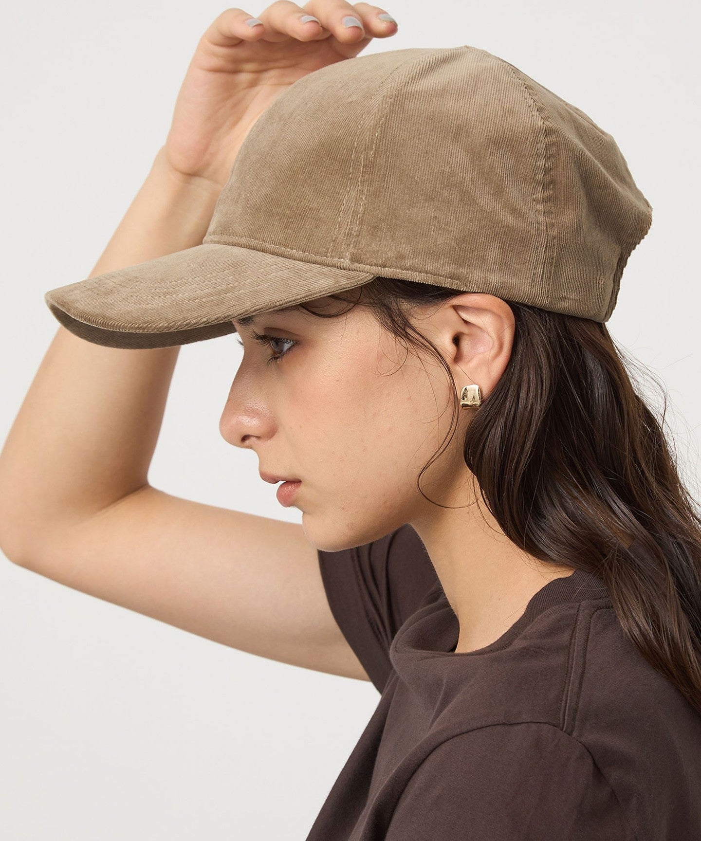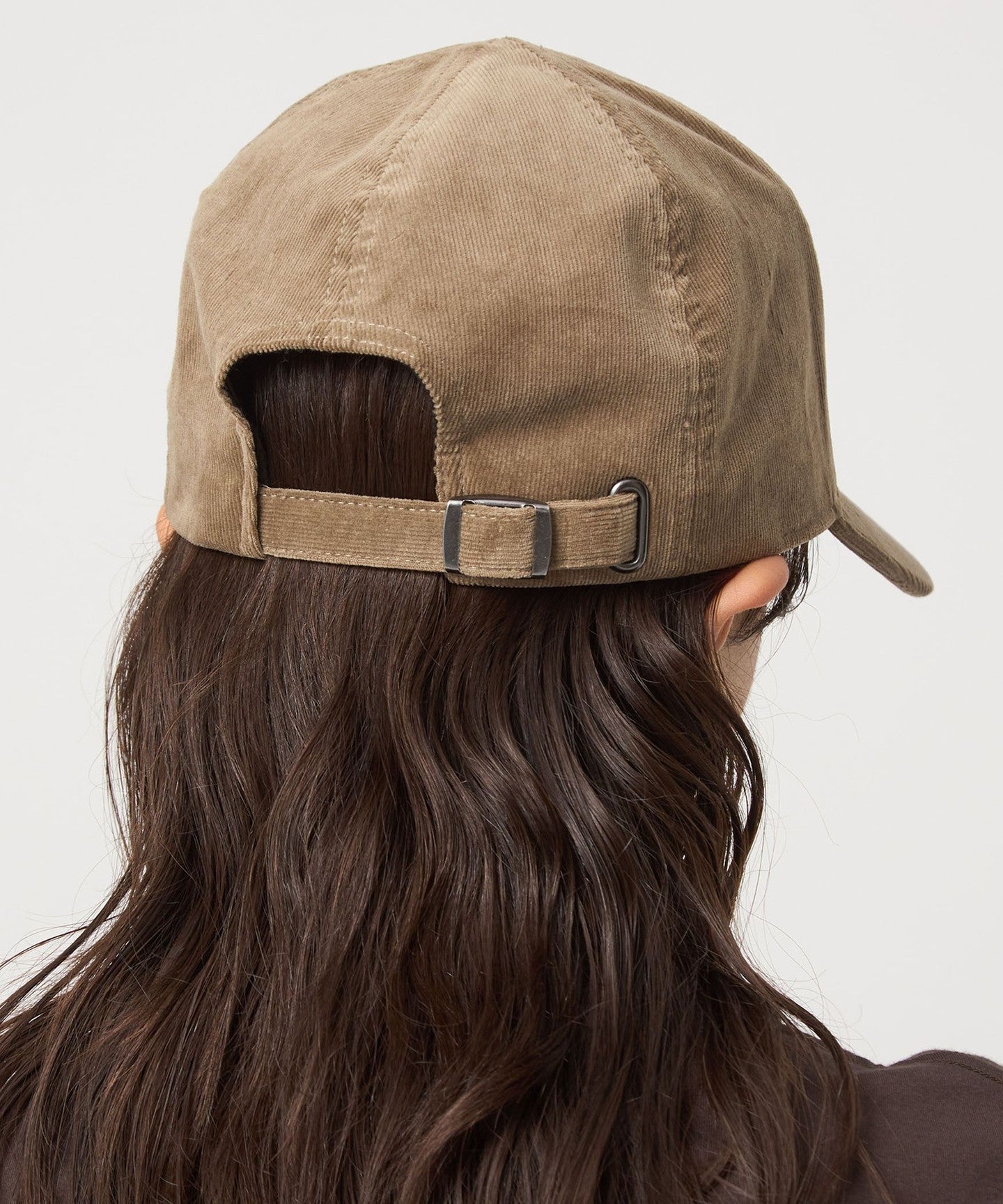 A cap made from finely ribbed corduroy fabric with a moderate sheen.