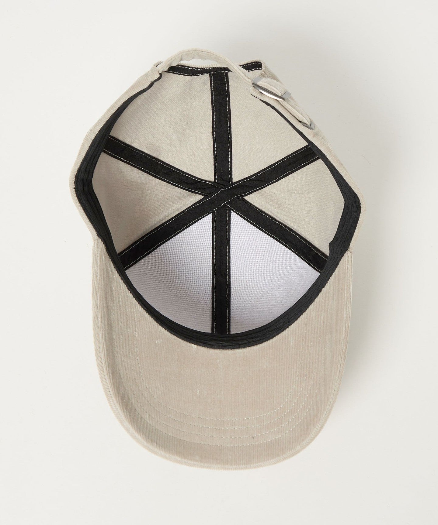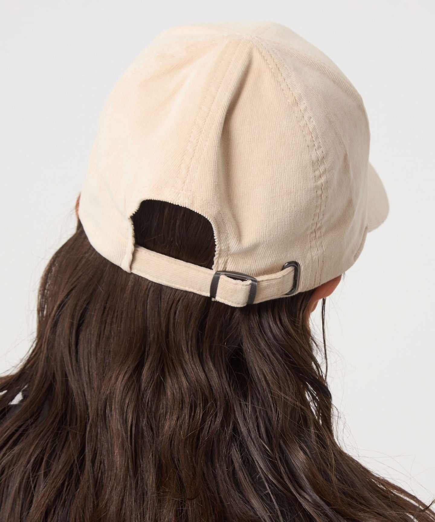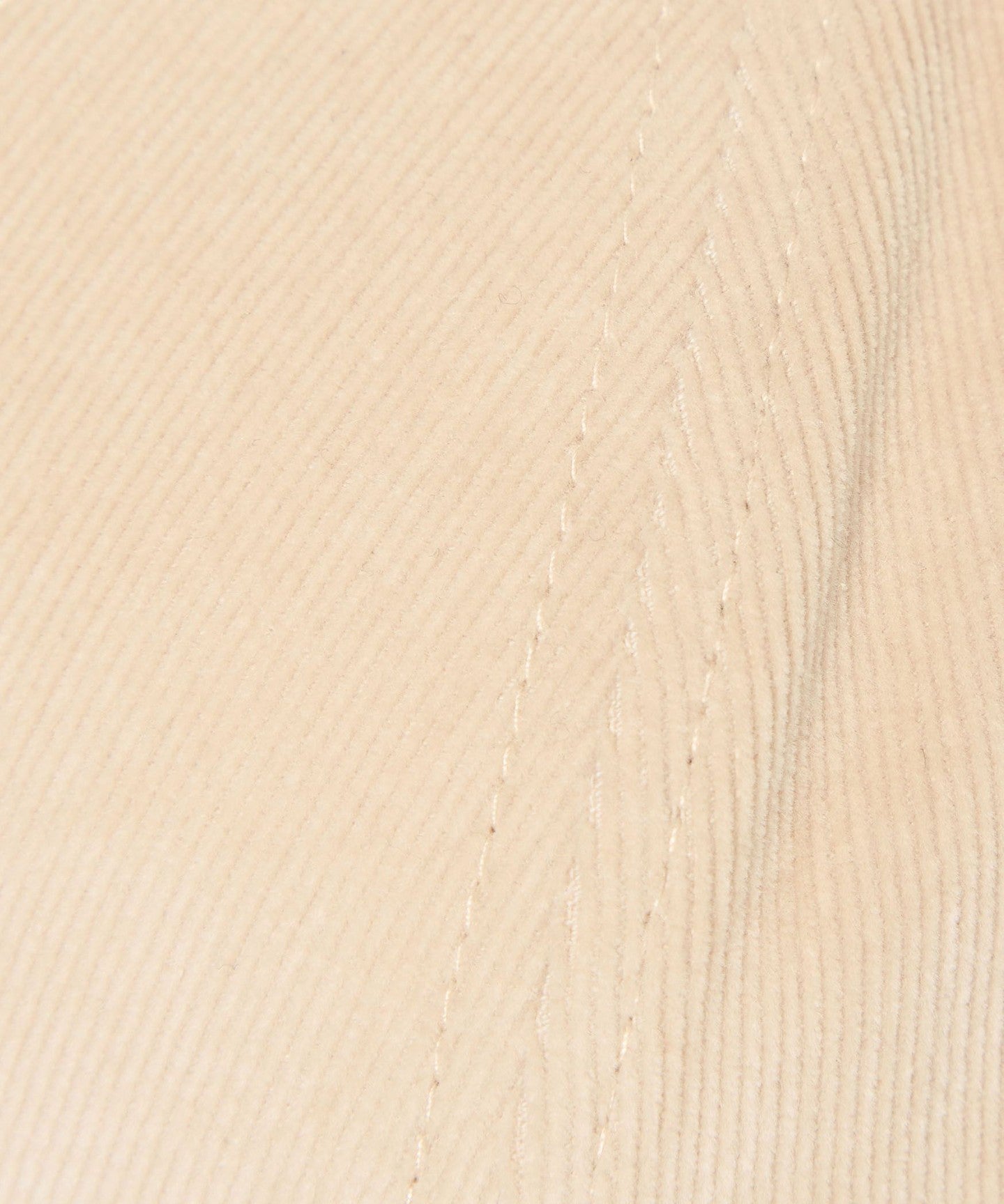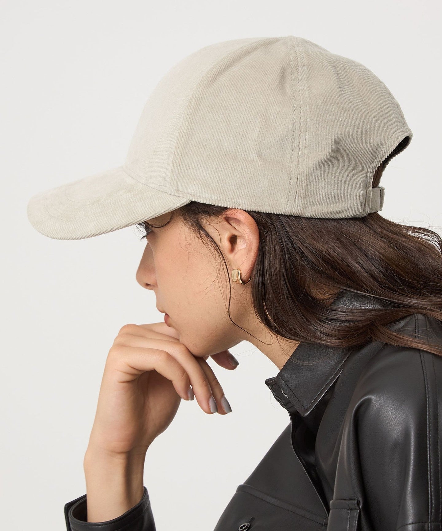 A cap made from finely ribbed corduroy fabric with a moderate sheen.