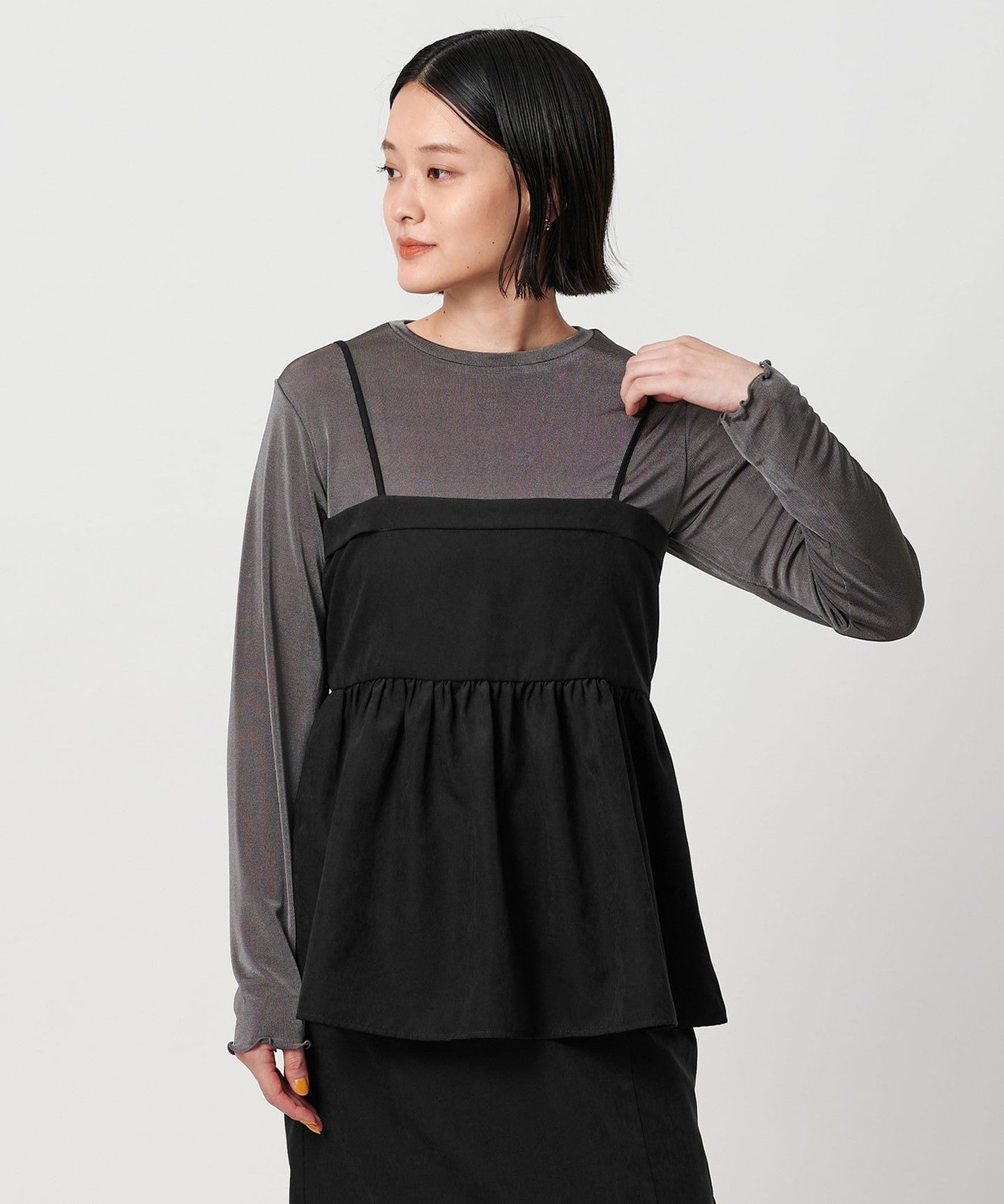 BLACK:キャミソール; 表生地;ポリエステル92% ナイロン8% 裏生地;ポリエステル100% スカート; ポリエステル92% ナイロン8%