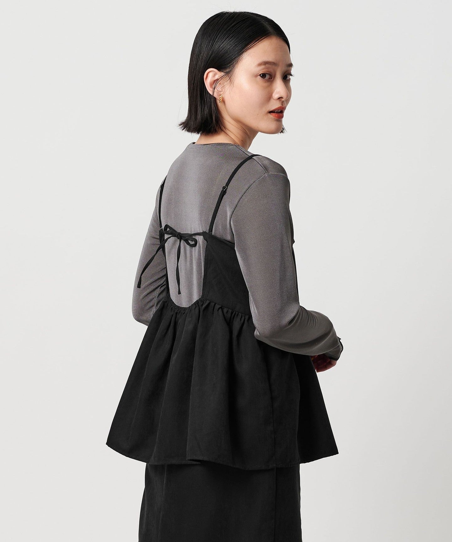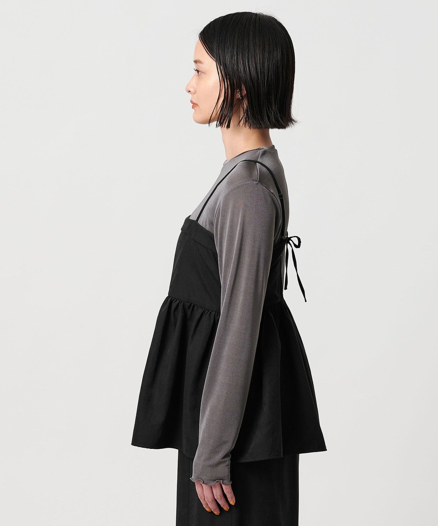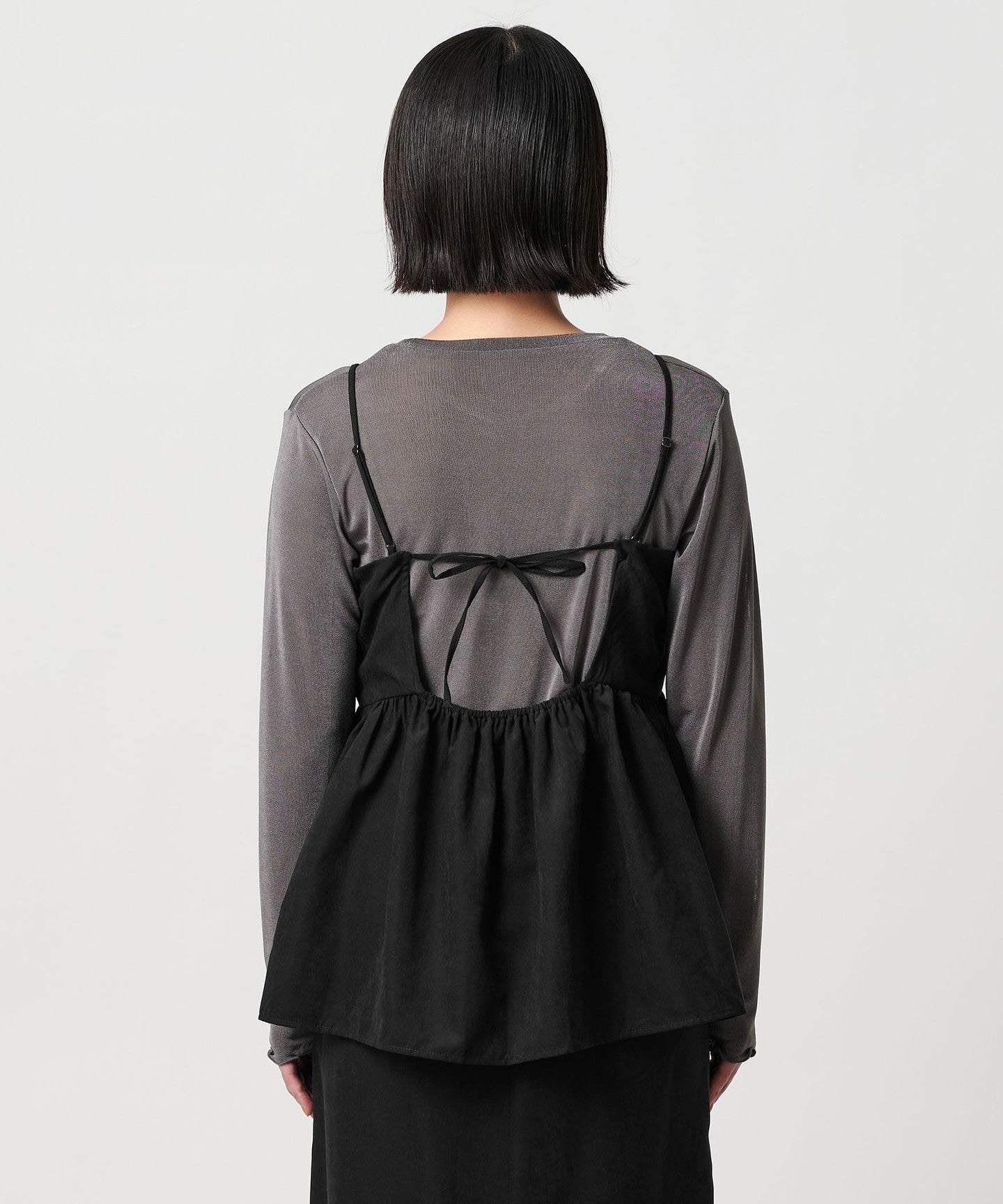 The camisole has a flared silhouette that gently spreads out from under the chest, and is accented with a delicate ribbon at the back.