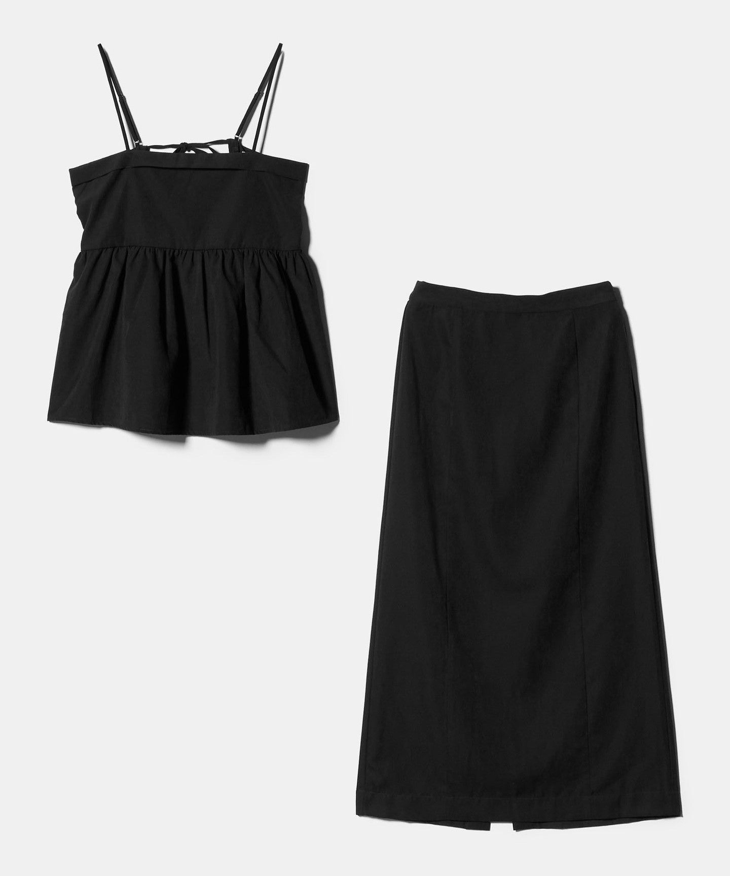 A set item consisting of a bustier-style camisole and a narrow skirt.