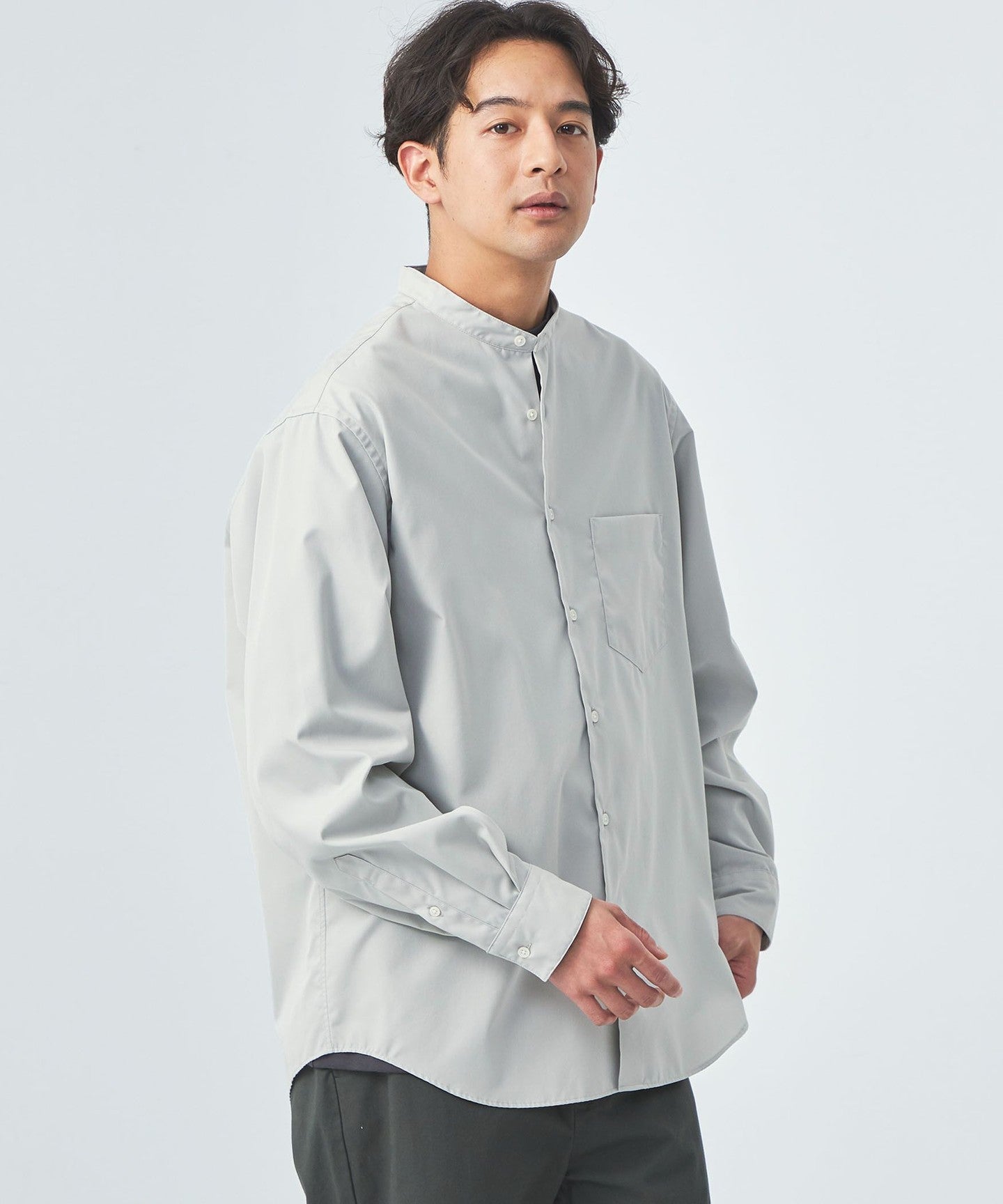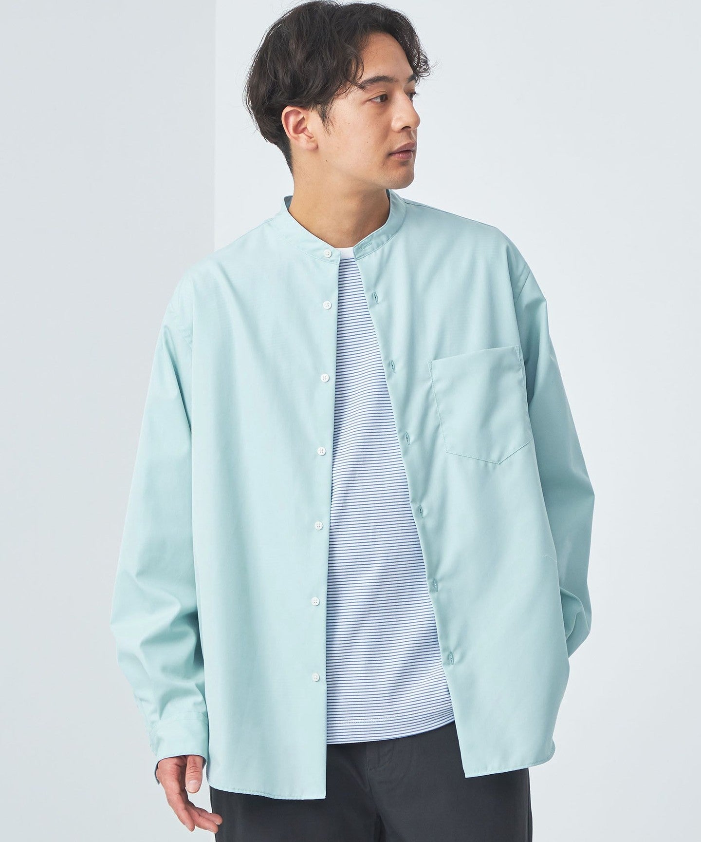 green label relaxingBroad Just Loose Band Collar SHIRT -Wrinkle-