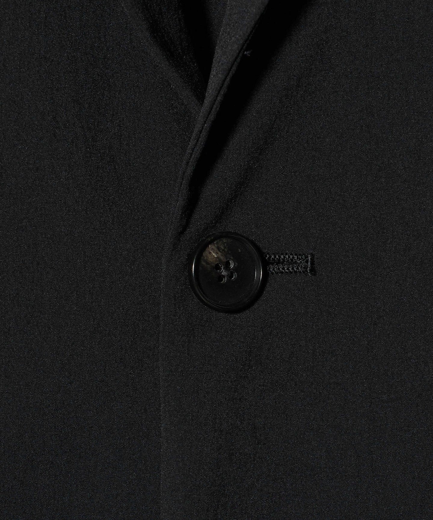 This two-button jacket has a boxy silhouette with almost no waistband, giving it a relaxed feel.