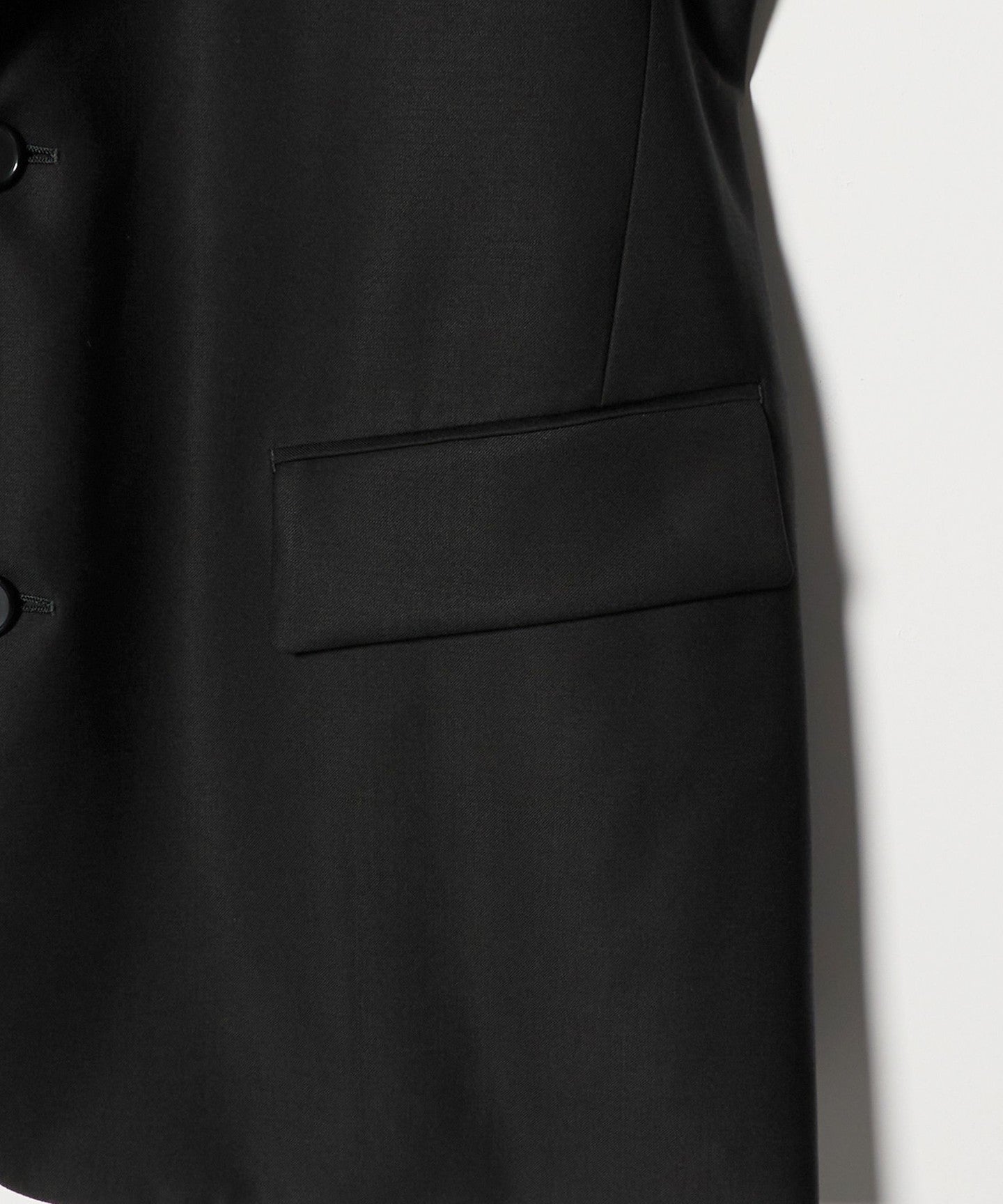 This tailored jacket features an oversized, boxy silhouette. It's made from a thin yet firm twill with a beautiful surface. It has double-breasted buttons, allowing you to change the silhouette by fastening it in different ways. We also recommend wearing it with the inner straps showing. This piece looks great as a set with a bustier and pants from the same series, or simply with a pair of mini-length bottoms. The refined look highlights the distinctive details, creating a modern presence that blends seamlessly into everyday wear.